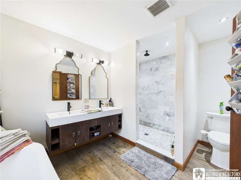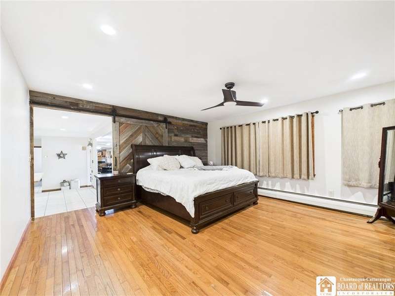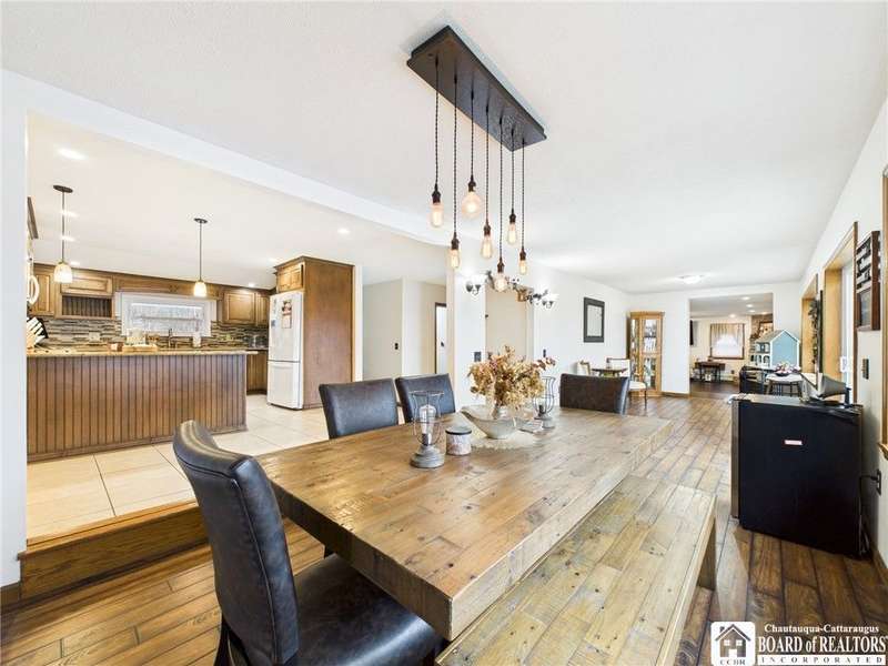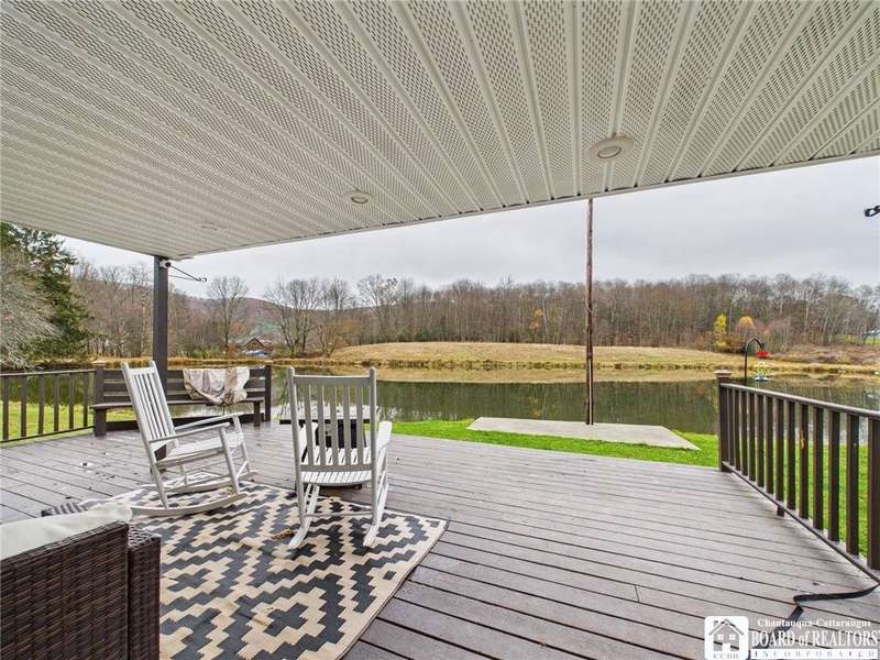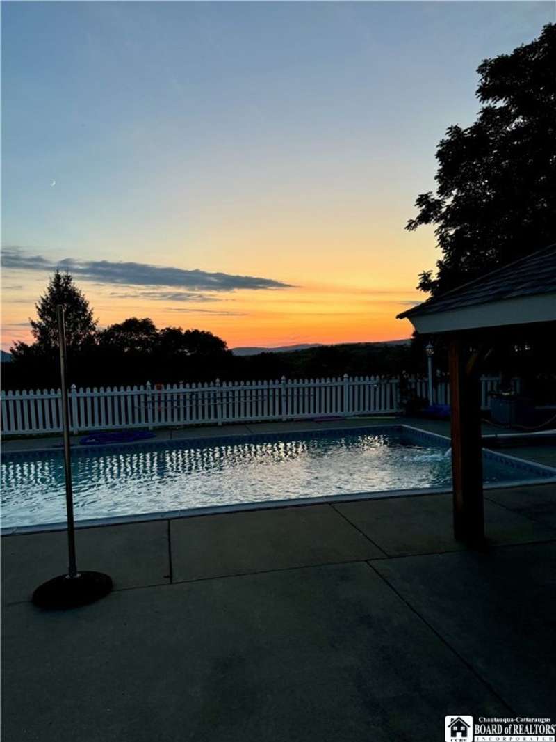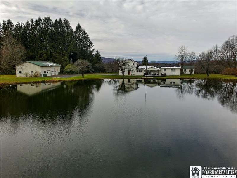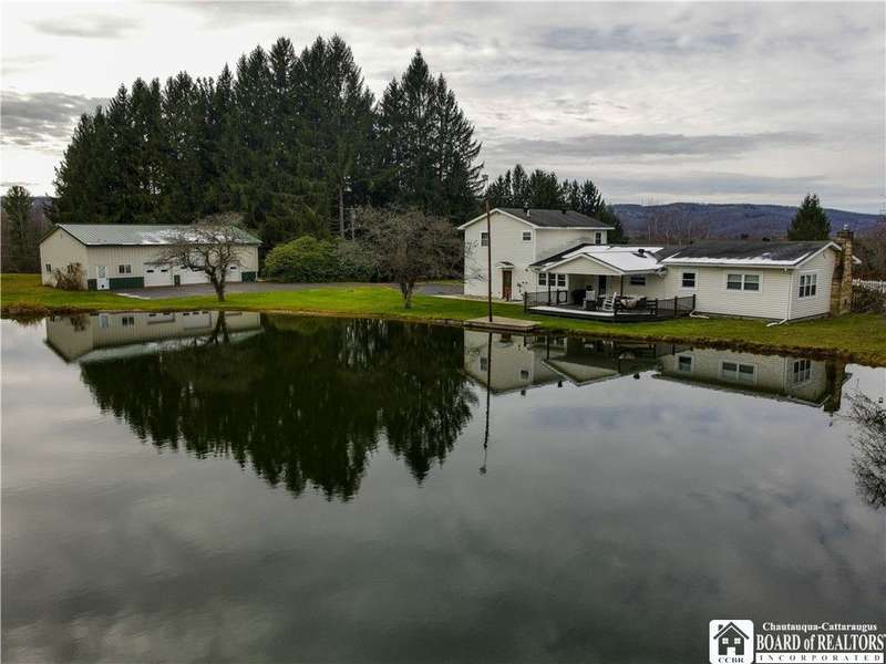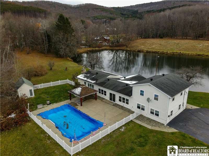 A rare opportunity in the Portville School District?privacy, acreage, luxury finishes, and unforgettable views all in one property.Welcome to 1414 Witherell Heights, a truly one-of-a-kind home perfectly situated between Olean and Portville, offering the ideal blend of convenience and seclusion.Inside, the main floor delivers exceptional comfort and function. The spacious living room features a natural gas fireplace and large windows that frame serene views of the property. The chef-friendly kitchen features beautiful quartz counters and has excellent dining areas, making everyday living and entertaining effortless.With two first-floor bedrooms, the layout is ideal for single-level living. The primary suite is a retreat of its own?complete with a huge walk-in closet, sitting area, and a spa-like bathroom featuring a tiled walk-in shower, heated floors, and a soaking tub. Another full bath on the first floor serves both guests and the additional main-level bedroom or potential first-level office.Upstairs, you'll find three more bedrooms and a third full bathroom, creating a perfect setup for family, guests, or hobby spaces.The property's outdoor amenities elevate this home to a new level. Enjoy spectacular views over the pond from the large covered deck, or take in breathtaking sunsets over the valley from the concrete patio surrounding the inground pool. Whether you love to entertain or unwind in nature, these outdoor spaces are unmatched.Car enthusiasts, hobbyists, or anyone needing extra space will appreciate the massive three-car garage, which is large enough to store a boat, along with an additional finished area ideal for a home office, gym, or creative workspace.With its acreage, privacy, modern upgrades, luxurious primary suite, and incredible indoor-outdoor living, 1414 Witherell Heights stands out as a premier property in the region. This home rarely becomes available and truly offers it all.