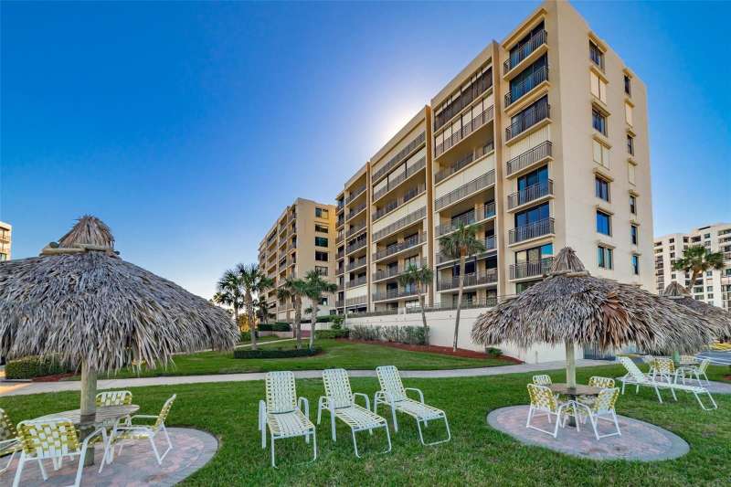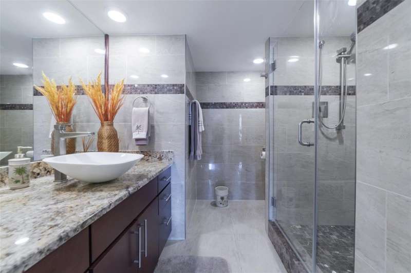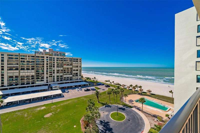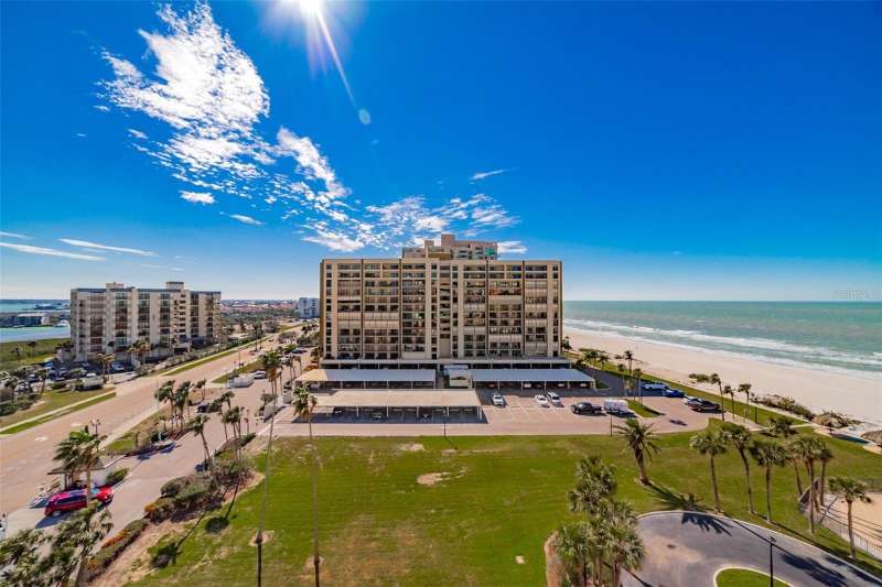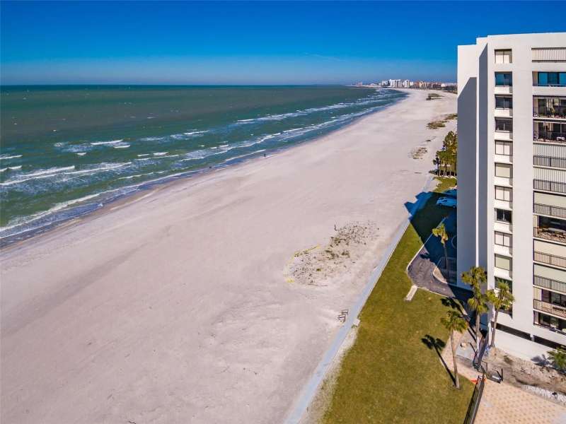 Clearwater Beach / Sand Key Beach. Extremely rare completely updated unit! Amazing beach views of Sand Key Beach and Intercoastal view.Sunsets and sunrises as you wish. Beautifully updated custom Thomasville Kitchen with quartz countertops, stainless appliances, and wine fridge. Open floor plan Living room/Kitchen/Dinning room . Large Master Bedroom suite overlooks the beach and it leads to a large oversized balcony with beach and intercoastal views. Beautiful oversized marble looking tile throughout all main areas. Wood looking tile in all bedrooms. Huge Guest Bedroom fits 2 Queen size beds and has a nice custom closet.No popcorn ceiling!.Hurricane impact sliding doors throughout.Very desirable indoor Washer and Dryer. This building is gated with a guarded entry. Building is secure with a keypad entry.Beautiful community Pool with beautiful beach views. Tiki area for sitting and relaxing by the beach or for an outdoor grill cookout. This unit comes with an assigned parking space and storage locker. Plenty of Guest parking as well. Great dining and shopping in a small walking distance. This beautifully updated unit is truly unique and will not last. If you snooze you will lose!