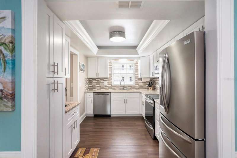 Completely Updated 2BR/2BA Condo in a Highly Desirable 55+ Community! This move-in ready residence has been beautifully renovated with modern finishes throughout. Step into the inviting Florida room featuring new 9-ft hurricane impact sliders that fill the home with natural light. The gorgeous new kitchen showcases quartz countertops, stainless steel appliances, and well built cabinetry. Both bedrooms include fully updated ensuites with walk-in showers and stylish vanities. Additional highlights: in-unit washer & dryer, freshly painted interior, and new front doors. Peace of mind comes with major updates already completed—HVAC (2022), hot water tank & water filtration system (2022), and new roof (2021). The well-managed condo association maintains fully funded reserves. Low monthly fees of just $532 cover cable, high-speed internet, water, sewer, trash, ground maintenance, pool maintenance, property management, community surveillance, building insurance, and reserves. Community amenities include a resurfaced pool, clubhouse, personal and bike storage, assigned under-building parking plus guest spaces. All this just minutes from the Gulf beaches, Pinellas Trail, shopping, and dining!