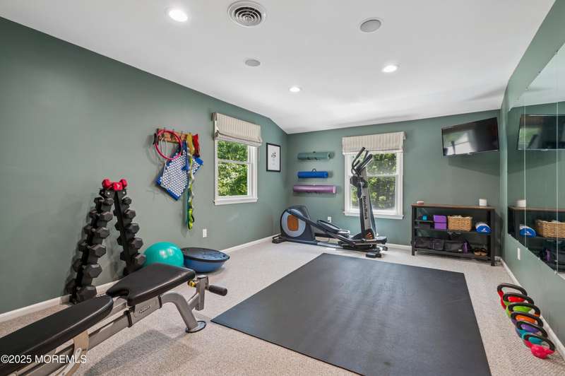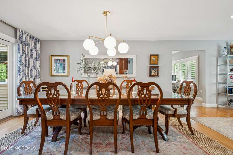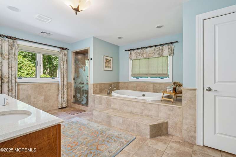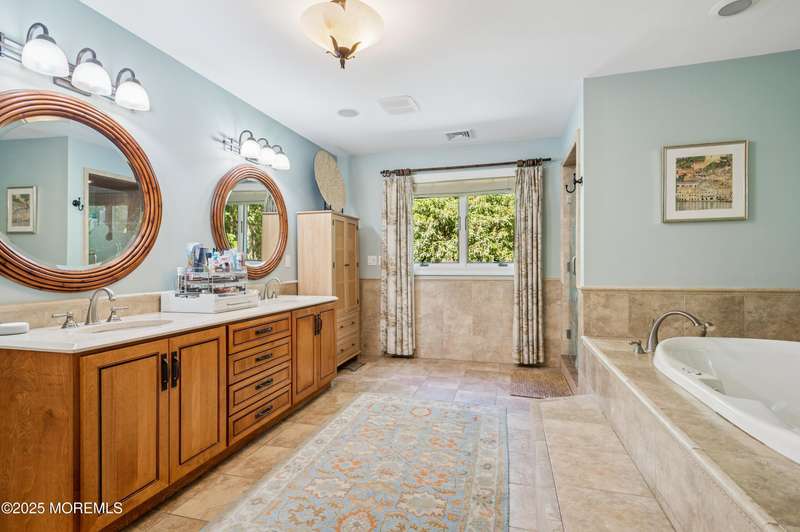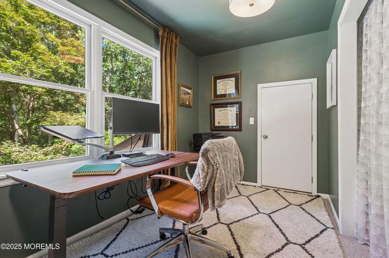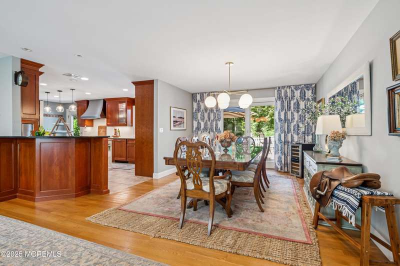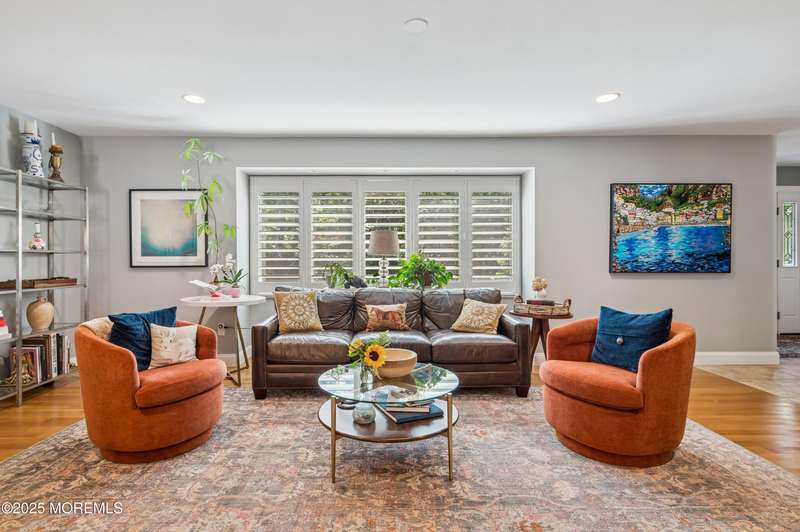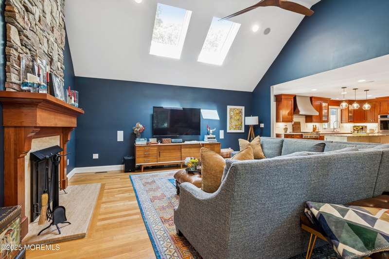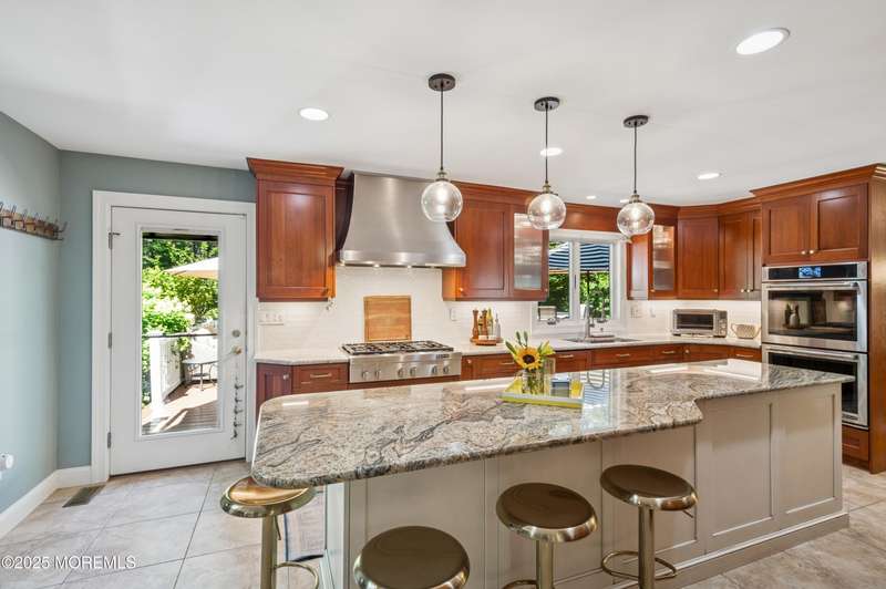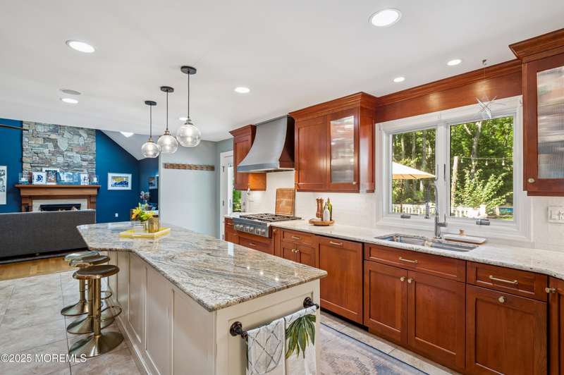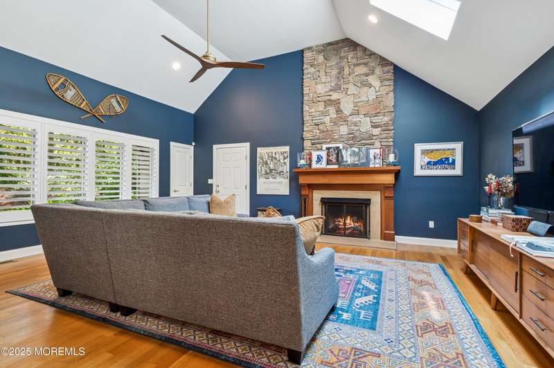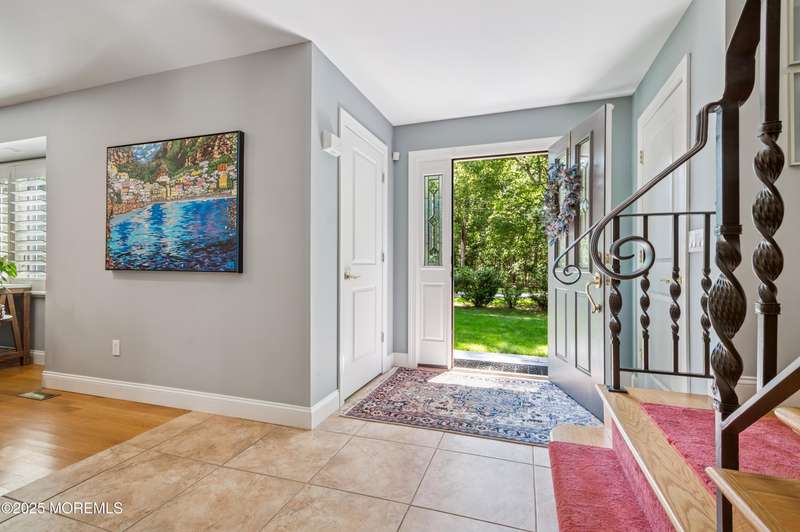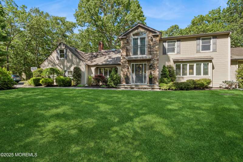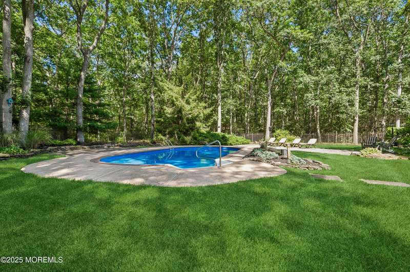 Elegant and Spacious Home in Sought-After Wall Township. Welcome to this exceptional property that effortlessly blends elegance, comfort, and functionality ideally located in the desirable Wall Township community. From the moment you enter, you're greeted by a grand foyer that flows seamlessly into an open-concept dining and living area perfect for entertaining. The chef's kitchen is a culinary dream, featuring high-end stainless steel appliances, abundant counter space, and exquisite granite countertops. The main level also offers a cozy yet spacious family room adorned with skylights and a stunning stone fireplace, creating an inviting atmosphere for relaxation. Adjacent to the family room, the impressive primary suite boasts French doors leading to an expansive patio, a luxurious en-suite bath, and ample closet space. One of two dedicated home offices is also located on the first floor ideal for today's remote lifestyle. Upstairs, a custom-crafted stair rail leads to three generously sized bedrooms, a full shared bath, and a second home office or creative workspace. The finished basement is a true highlight, thoughtfully designed as a private pub and entertainment haven perfect for hosting friends and family. Step outside into your private backyard oasis, featuring a large Trex deck, beautifully manicured landscaping, and a substantial saltwater pool for summer enjoyment. Ideally situated just minutes from iconic Jersey Shore beaches and major highways, this home offers the best of coastal living with the privacy and tranquility of a resort-like retreat.