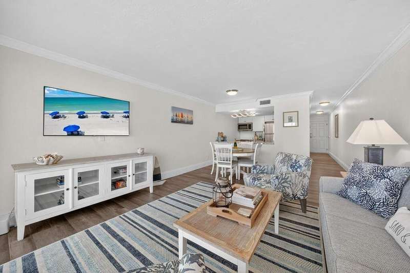 Welcome to your island retreat in the heart of South Seas Resort. This fully renovated one-bedroom getaway sits on the second floor and is offered turnkey furnished-ready to enjoy or share as a proven rental performer. The light-filled open layout showcases coastal-inspired finishes, including luxury vinyl flooring, updated countertops, stainless steel appliances, a spacious double-wide sink, and modern LED lighting. Thoughtful upgrades create a balance of comfort and style, perfect for both relaxing escapes and effortless entertaining. Hurricane-rated sliding doors frame sparkling Gulf views and lead to your private screened lanai-your front-row seat for sunsets and sea breezes. Ideally positioned on the coveted South End of the resort, you're only moments from Captiva Village, where boutique shops, Starbucks, and iconic dining spots await. Beach Villas amenities include community grills, a heated pool, and tennis/pickleball courts, blending recreation with relaxation. Whether you're seeking a personal sanctuary, a smart investment, or both-2623 Beach Villas is a true Captiva treasure.
