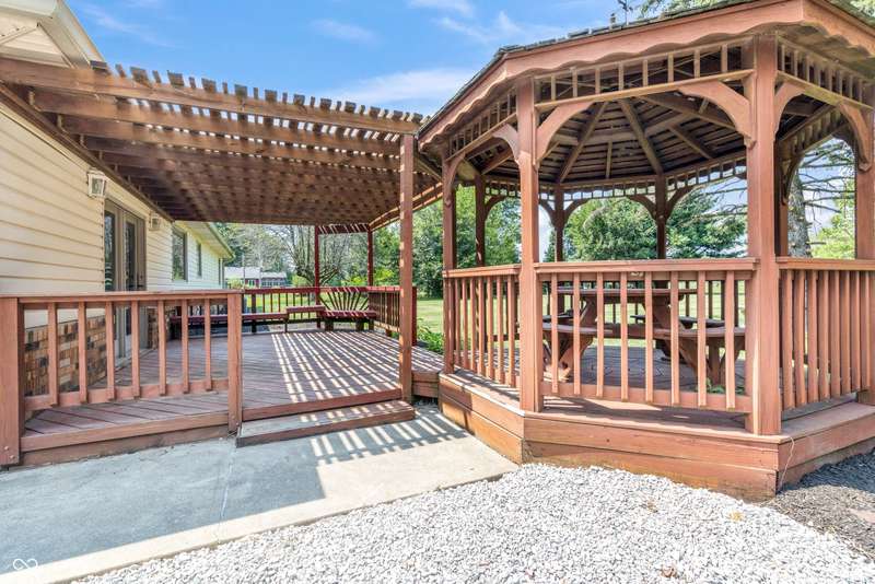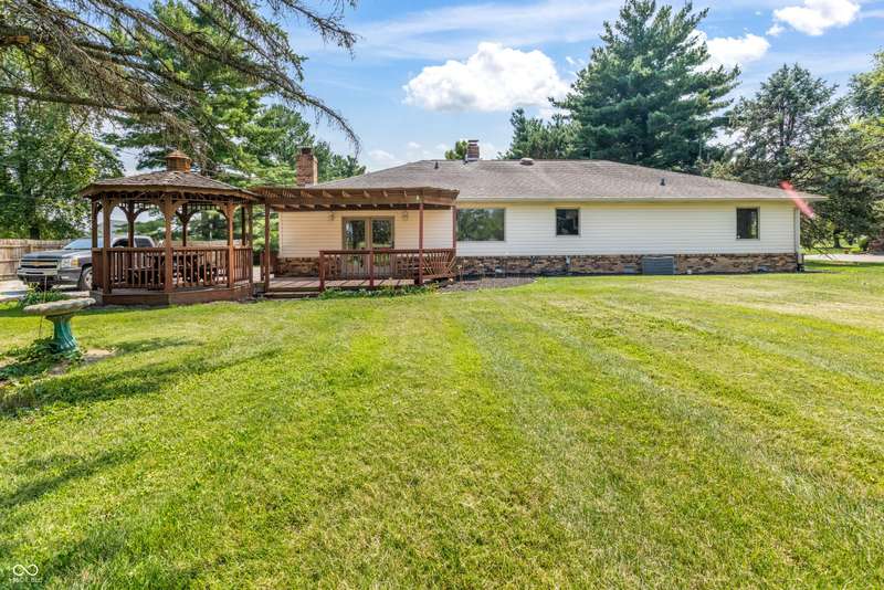 This single-family residence in Brownsburg offers a unique opportunity to embrace a lifestyle of comfortable living. Kitchen has been transformed with all new maple cabinets with soft close, granite countertops, and stainless steel appliances. All new paint throughout and hardwood floors sanded or replaced. Home remodeled from 1.5 bath This property presents an exciting canvas for creating the home of your dreams. Within this residence are three bedrooms, offering private spaces for rest and rejuvenation. With two full bathrooms, mornings become easier and evenings more relaxing, as everyone can comfortably prepare for their day or unwind after it. The 1680 square feet of living area provides ample space to gather, entertain, and create lasting memories especially sitting on the 18x12 deck or in the gazebo. This single-story home, sits on a sprawling 3.2 acres, offering a vast outdoor space to enjoy. Imagine the possibilities: gardening, recreation, or simply savoring the peace and quiet of your own personal retreat. This Brownsburg residence is waiting for you to make it your own. Close to the new Ronald Reagan exchange with quick access to airport and downtown Indianapolis