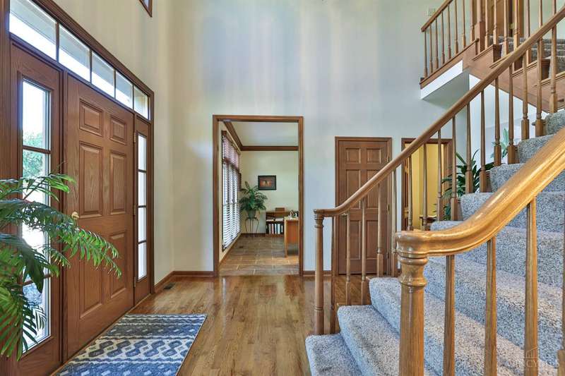 4BRM 2 Story, well maintained, open floor plan, spacious rooms, huge eat in kitchen, granite tops, hardwood floor, island and bay window. Newer wall to wall carpeting in LR, DR. Remodel bath w/ ceramic tile, double vanity. Hugh Family room with cathedral ceilings, Gas WBFP, Smooth Ceilings, crown molding, stained 6- panel doors, ceiling fans. Primary bath w/ 2 vanity, granite countertop, jetted tub and walk in closet. Full basement with sauna, bath w/ walk out basement to patio. 15X13 screened in porch, partial covered TREX decking. First floor laundry with tile floor walkout to garage. Roof 2015. Tank less water heater 2019 Refrigerator 2016 Dishwasher 2016. Generator - whole house, Andersen replaced window. TILT for wash 2022.walk out basement to private rear yard. Great value to offer in the area. Convenient location to highway schools, shopping, restaurants, and churches. 2838 square feet home.