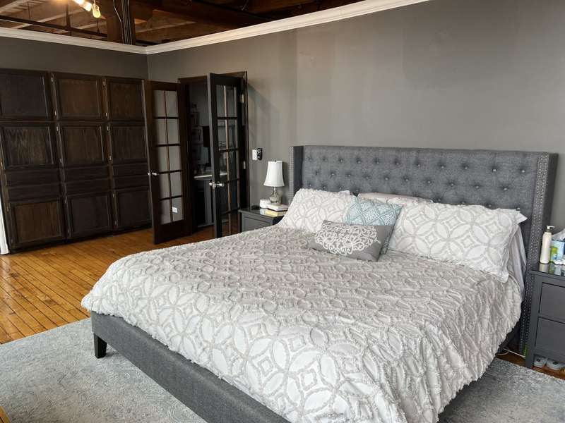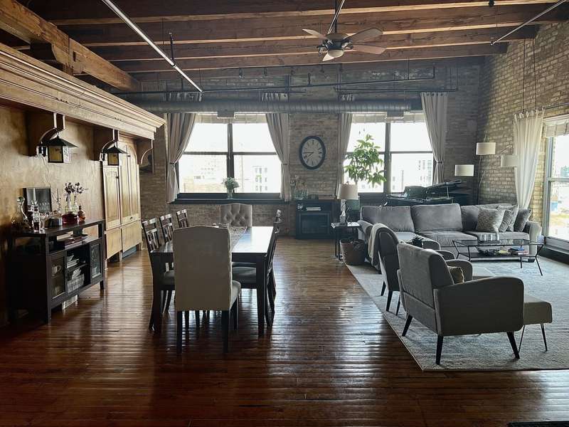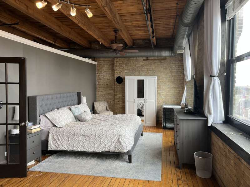Experience the perfect blend of character and comfort in this stunning architect-designed brick and timber loft in the heart of River West. This expansive 2,100 sq ft live/work space features soaring 14-foot timber ceilings, exposed brick walls, natural oak floors, and striking timber columns and beams throughout. The open floor plan is ideal for modern living, just steps from the expressway, Blue Line, and downtown. Enjoy breathtaking city views from the building's spacious rooftop deck with grills, plus the convenience of an in-unit washer/dryer and includes parking. Pet-friendly and full of charm, this is true loft living at its finest.