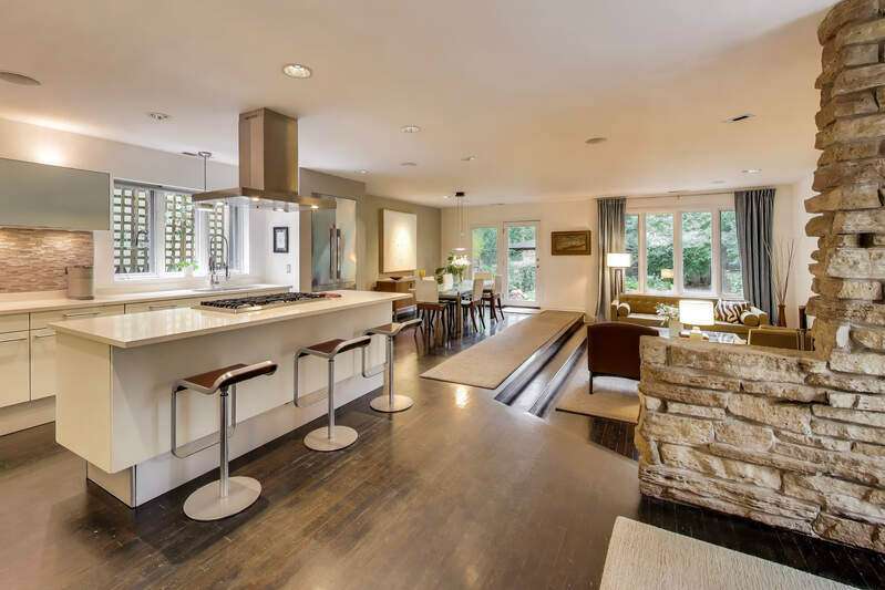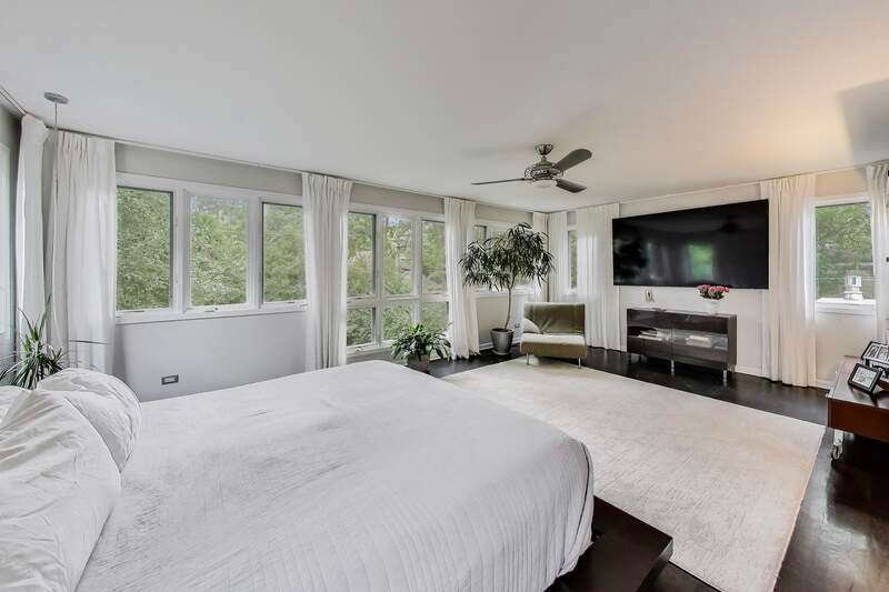 Welcome to this STRIKING Chicago residence with an open floor plan and sun-filled California vibes, offering approximately 3,000 square feet of finished living space in the heart of the desirable Wildwood neighborhood of Forest Glen. Inside, the OPEN, MODERN LAYOUT blends style with livability. Expansive windows flood the home with natural light, while a natural stone fireplace creates an inviting focal point enjoyed from the living, dining, and kitchen areas. The POGGENPOHL kitchen anchors the open-concept space, enhanced by a sleek Dorn BRACHT, FISHER & PAYKEL refrigerator, and premium MIELE appliances-a showcase of both design and performance. From this level, you also have direct access to the ATTACHED GARAGE, adding everyday convenience to the home's striking design. UPSTAIRS, the primary suite is expansive and serene, with walls of windows, a spacious sitting area, an oversized walk-in closet, and a spa-like bath featuring all KOHLER fixtures, dual vanities, a walk-in shower, and a soaking tub with a dramatic ceiling-mounted DROP FILLER. Three additional bedrooms throughout the home offer generous space for family, guests, or home office needs. On the LOWER LEVEL, you'll find a large recreation room/home theatre and a private office-perfect getaways for quiet work and recuperation. Outdoor living includes a deck overlooking a LARGE, LANDSCAPED BACKYARD. There is more than enough room for hosting large outdoor gatherings, extensive gardening, and play! Set on a tree-lined street in Chicago's WILDWOOD neighborhood of FOREST GLEN, this home enjoys the best of both city and suburban living. Wildwood is known for its low density, large lots, and stately homes. JUST STEPS from the Metra and Caldwell Woods, and only MINUTES to Costco, the Edens & Kennedy Expressways, and O'Hare, the home is also just three blocks from St. Mary of the Woods School and Wildwood Elementary-perfectly situated for everyone's needs!