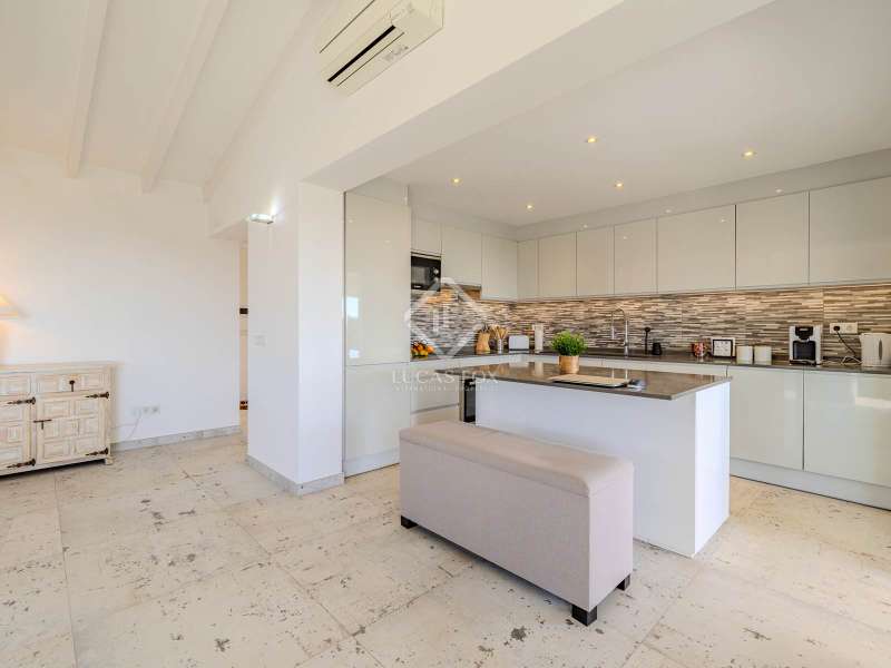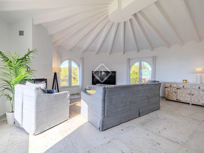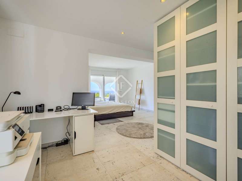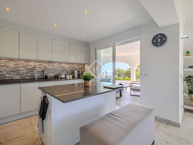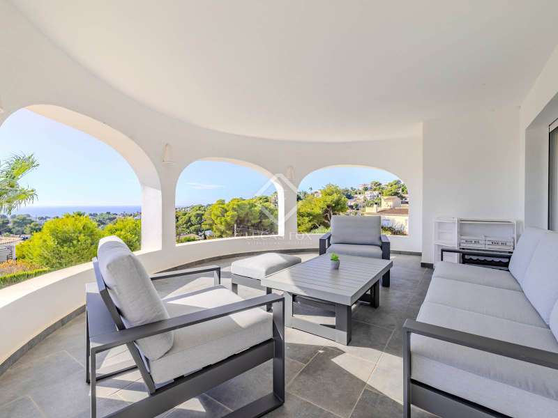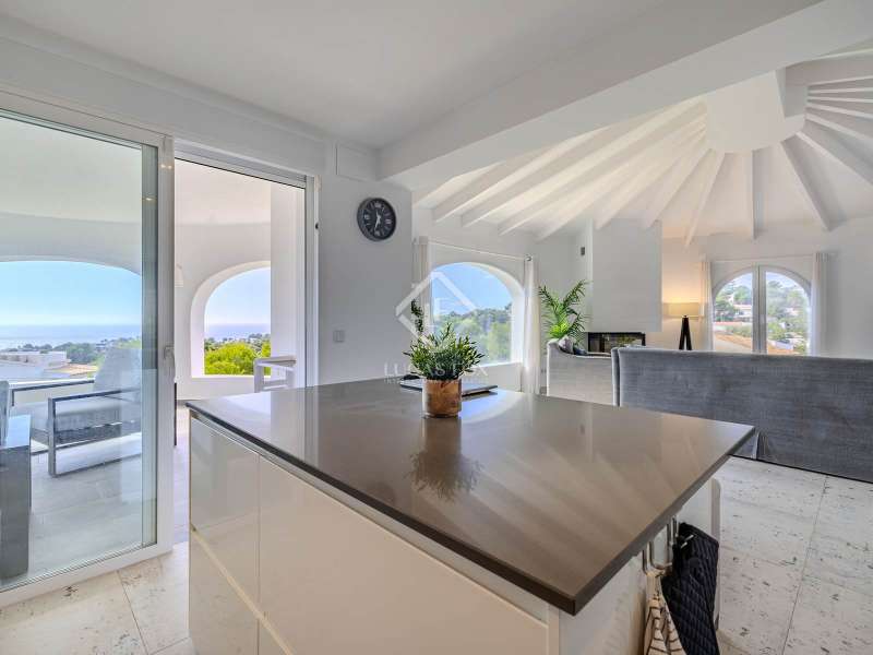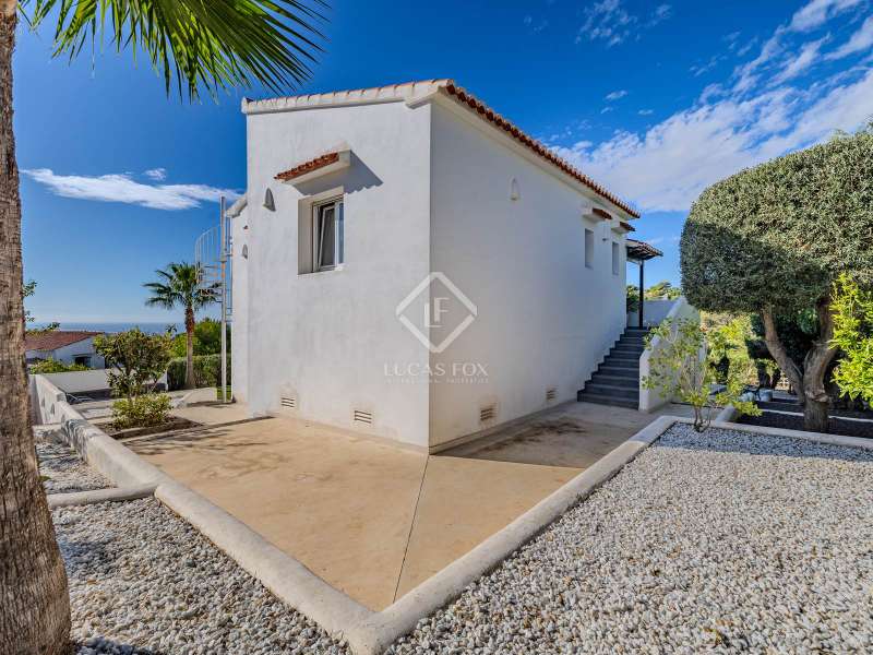 Located in the popular residential area of Balcón al Mar, this superb two-level property enjoys an elevated position, thereby ensuring wonderful sea views. Access to the property is granted via the pedestrian entrance with a beautiful large wooden door or the private garage, offering space for one large vehicle. Outdoor stairs lead to the upper level of the home. The front door opens into an entrance hall and open-plan living and dining area, as well as the fully equipped open-plan kitchen with top of the range appliances, plenty of storage and countertop space. The central island with seating allows for casual dining or socializing while preparing meals, ensuring the kitchen is a natural gathering place. Light cascades into the home thanks to the many windows, there is hot and cold air conditioning and the living area benefits from a wood burning fireplace, adding warmth and ambiance during the cooler months. The home also benefits from a solar panel for hot water, keeping bills low. From the living area we can enjoy direct access out to the covered terrace offering beautiful sea views. A perfect spot to enjoy your morning coffee or evening cocktail. A winding staircase from the main terrace leads up to the roof terrace solarium. There is a practical guest toilet next to the living area, and a hallway leads to the large main bedroom on this upper level. A true retreat, not only spacious but also benefitting from access to the covered sea view terrace, creating a tranquil, luxurious atmosphere. The en-suite bathroom features a large walk-in shower and double washbasin. The walk-in wardrobe offers ample storage space, ensuring the master suite is as practical as it is indulgent. If it were better to have two bedrooms on this level, this can be achieved as the main suite is large enough to accommodate two separate bedrooms. The lower level of this home benefits from a separate apartment, with its own entrance, ideal for extended family members and guests, with its own fully functional open-plan kitchen and living area, providing a sense of independence and privacy. There are three double bedrooms and the shared bathroom is fitted with modern amenities. From the living area, you can step straight out into the garden and terrace. The pool terrace is a standout feature of the home, offering plenty of space for relaxing and socializing. The beautiful summer kitchen, equipped with an induction hob, makes outdoor cooking easy, perfect for hosting barbecues or enjoying al fresco meals in the many warm months Javea has to offer. There is a private outdoor shower and the 12x6 metre swimming pool has recently been fully retiled and is surrounded by ample space for sun loungers. The garden, designed for low maintenance, features a mix of lawn, gravel and Mediterranean plants and shrubs that are well-suited to the climate. You can enjoy a selection of fruit trees and the mature hedges provide privacy. This home also benefits from a separate utility room and a very large storage and machines room. This wonderful, versatile property, with separate apartment and sea views, is perfect as a family or holiday home. Call us now to book your viewing.