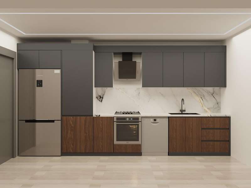 The 2+1 and 3+1 apartments feature spacious living rooms, separate kitchens, en-suite bathrooms, common bathrooms, and balconies. Comfort-enhancing features include steel doors, electric shutters, built-in kitchen appliances, air conditioning and natural gas infrastructure, spot and LED lighting, central satellite TV system, and shower cabins.