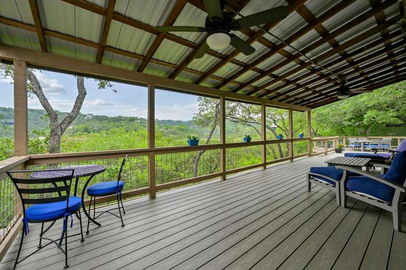 *4-car garage + Views* Timeless Westlake Hills Retreat with Stunning Canyon Views. Nestled on a serene and private .54-acre lot in the coveted Westlake Hills, this beautifully maintained residence blends classic charm with thoughtful updates throughout. Located on a quiet cul-de-sac and backing to lush Hill Country, the home offers over 900 square feet of partially covered outdoor living spaces, with sweeping canyon views - a true retreat just minutes from downtown Austin. A rare 4-car garage space provides exceptional storage and convenience. One of the garages is air conditioned to become a studio or workshop.