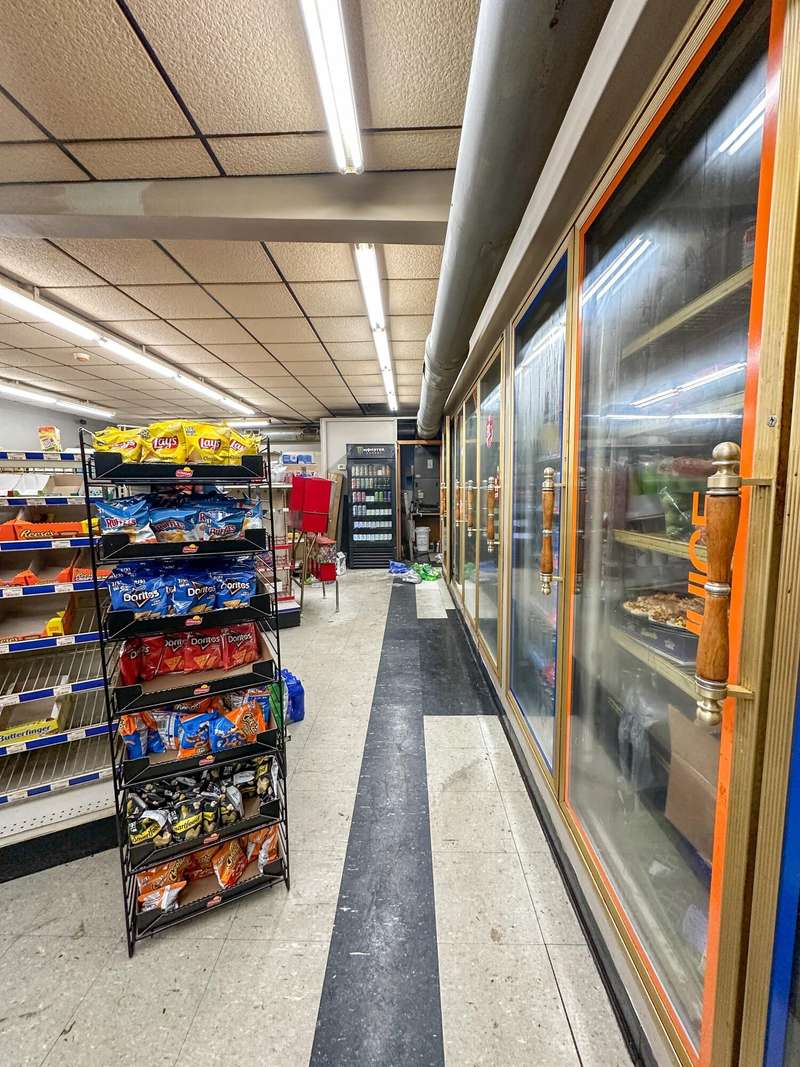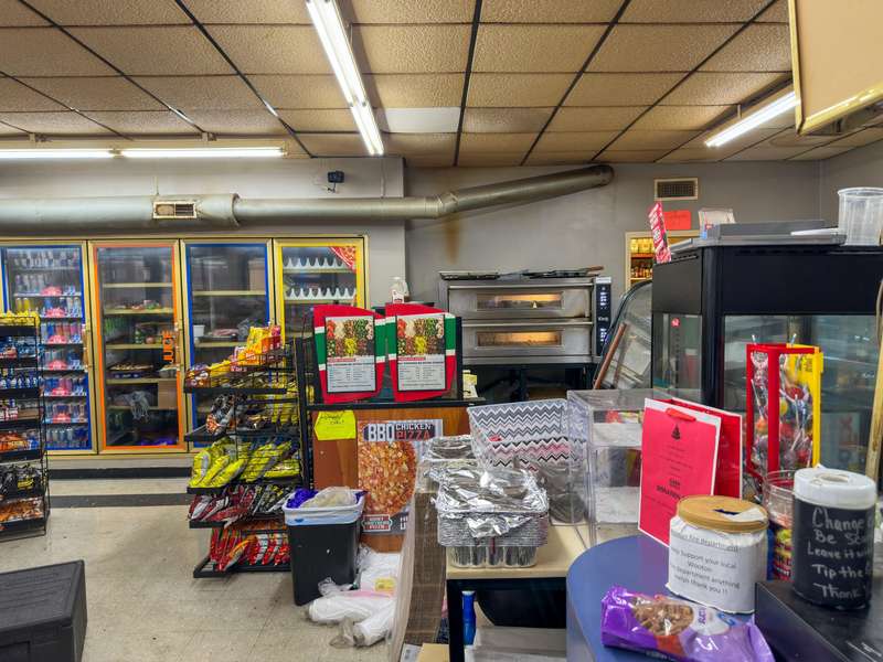 Open and operating grocery/convenience store with gas pumps, a large deli with a large pizza oven in a great location, also has a 2 bedroom apartment downstairs.
