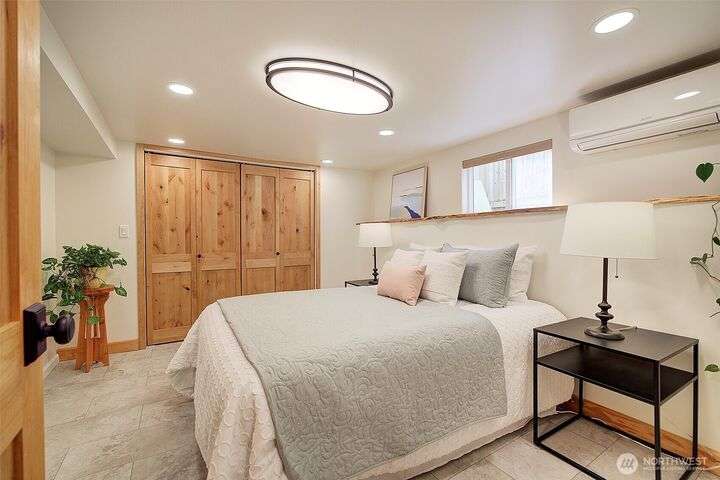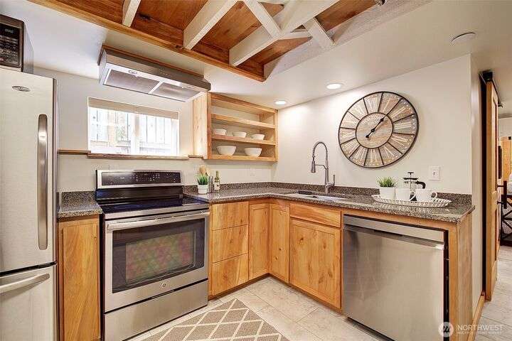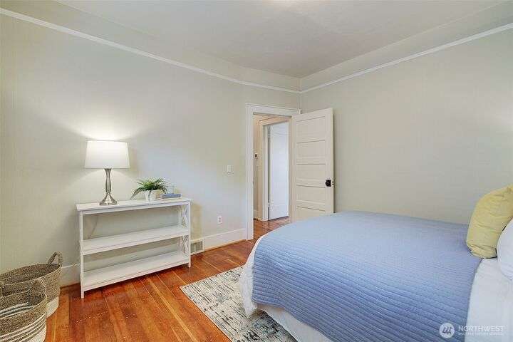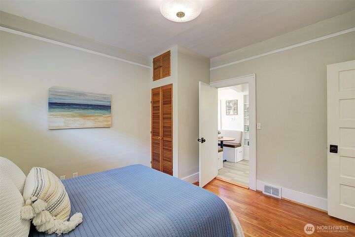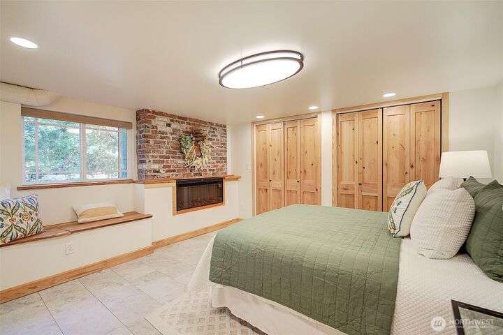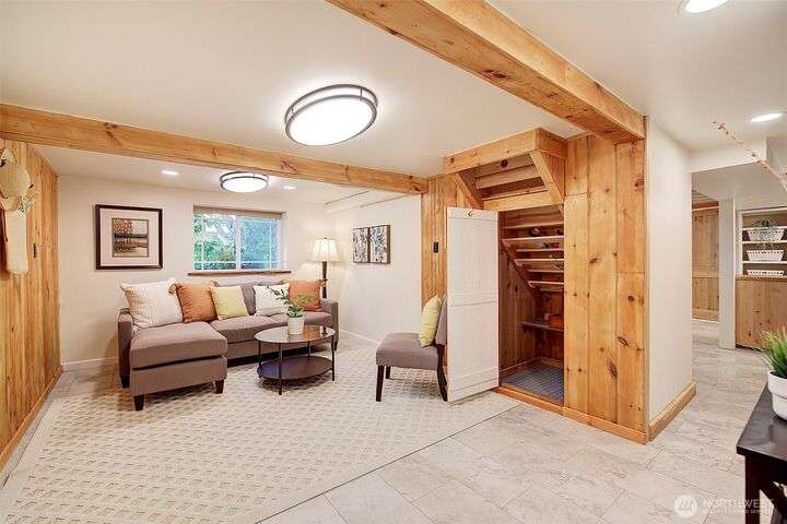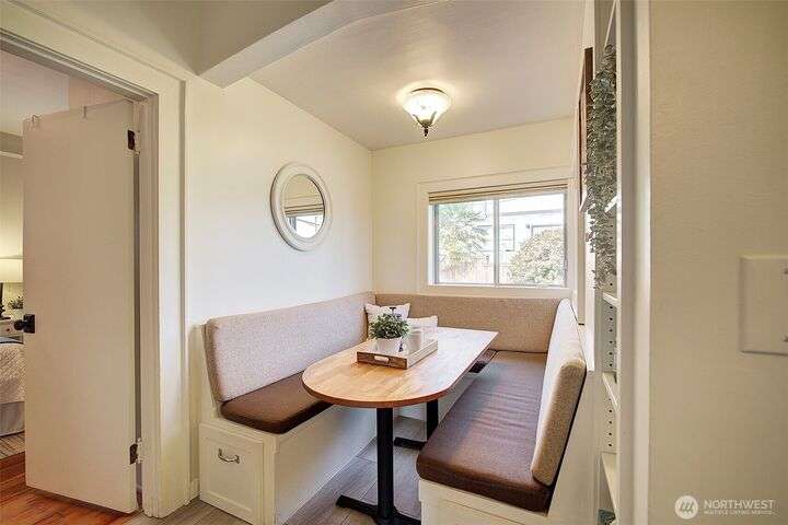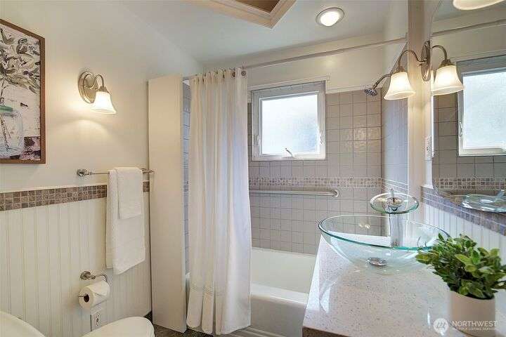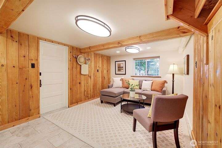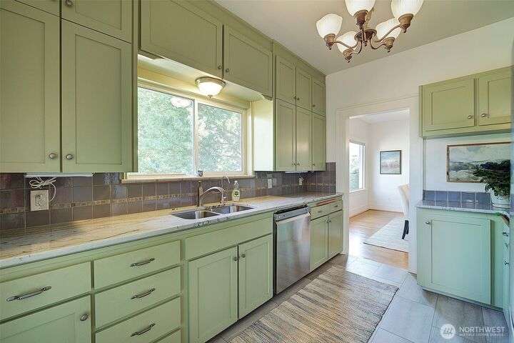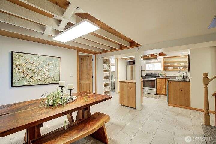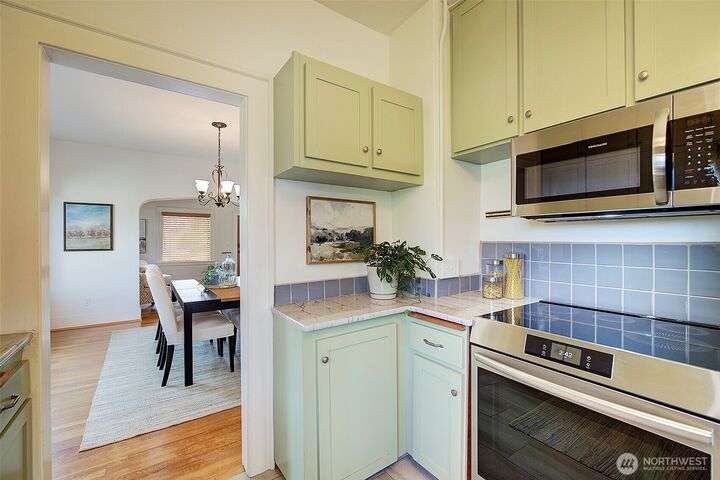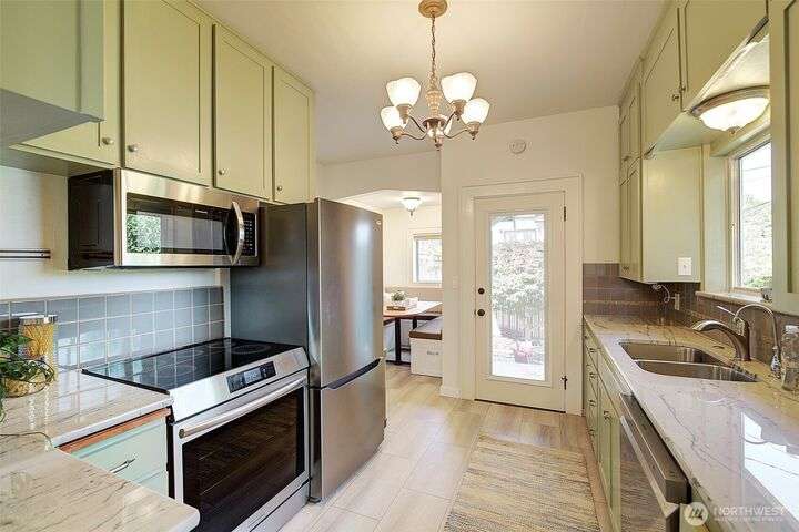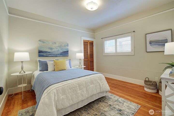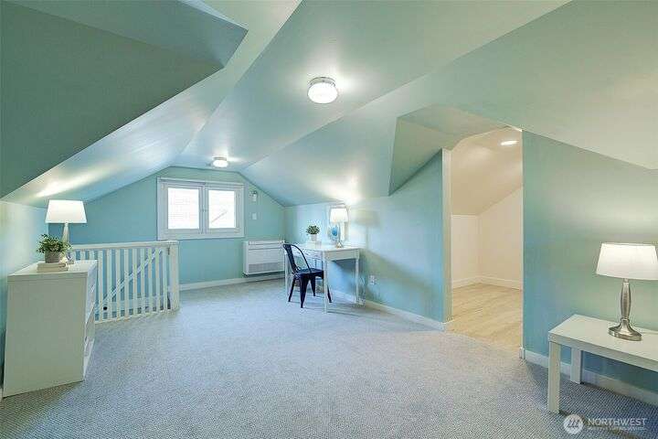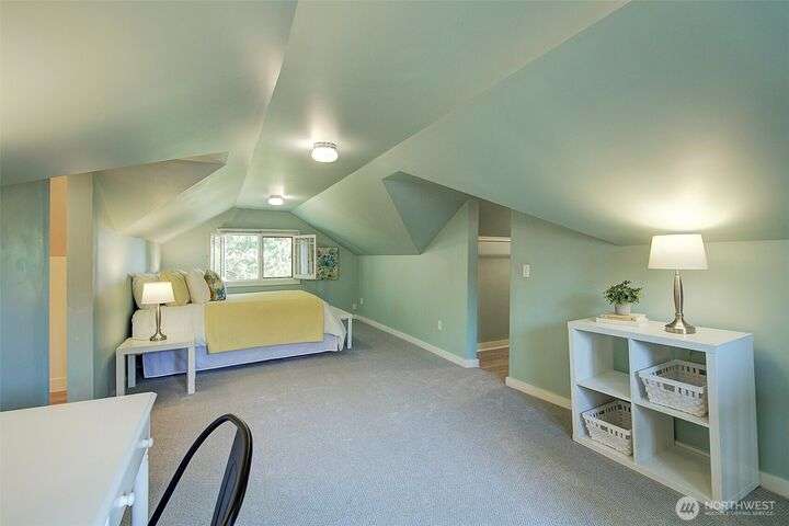 Welcome to this elevated corner-lot Craftsman, just blocks away from Green Lake & Wallingford! Charming front porch, with mountain view, welcomes you to sunlit living & dining rooms with beautiful hardwood floors & cozy fireplace. Updated kitchen with quartz countertops, new appliances & sweet breakfast nook. Private flagstone patio is perfect for summer dining! Two bedrooms & full bath complete the main floor. Upstairs, a spacious retreat w/2 walk-in closets (one is plumbed for future bath addition). Lower level offers private entry, full kitchen, living/dining, two bedrms & ¾ bath…ideal for guests, or multi-gen living. Enjoy the lush gardens, updated systems (HVAC, A/C, plumbing, electric, EV charger, new roof) just blocks from Zoo+ more!