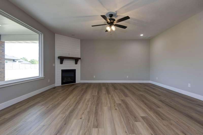 Bussell Building's Ethan model is a spacious, open-concept home designed for modern living. This 4-bedroom (or 3 + study), 2-bath plan features a bright kitchen with large island, a generous living room with a fireplace, and a private primary suite with a walk-in shower, soaking tub, and oversized closet. A 3-car garage, mudroom with built-ins, and covered back porch round out this functional and stylish layout.