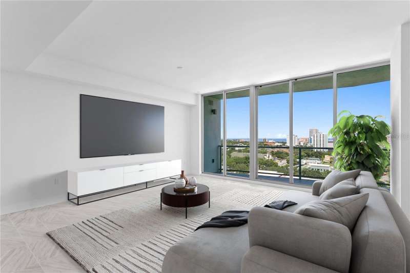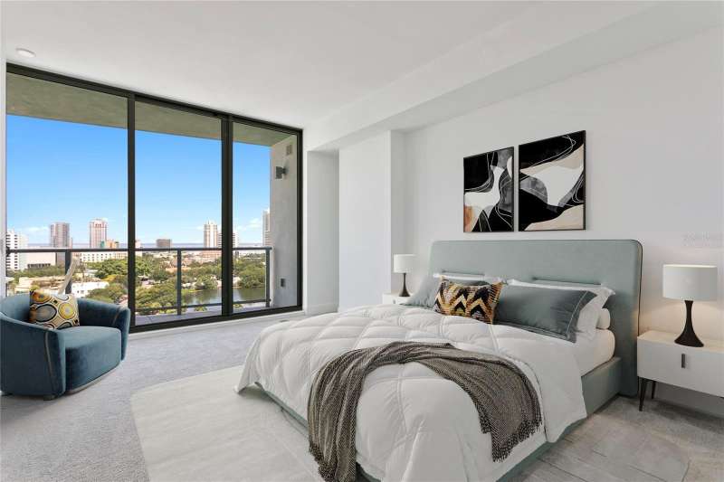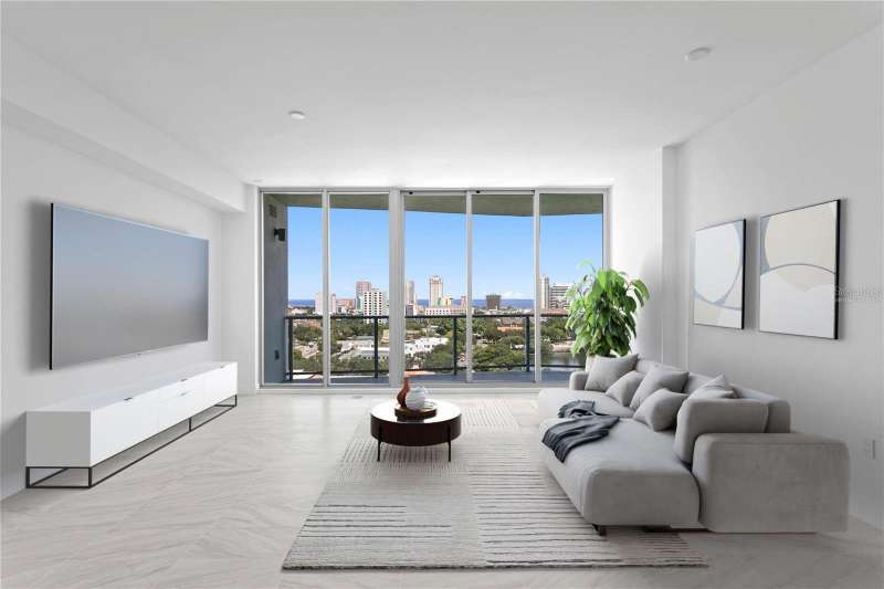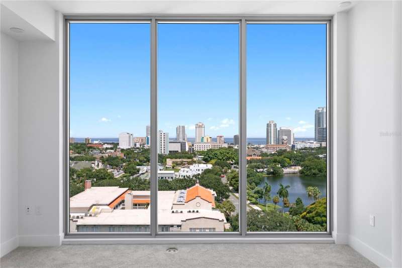 One or more photo(s) has been virtually staged. Discover your next extraordinary chapter at REFLECTION St. Pete. Be the first to embrace the pinnacle of urban luxury living in this exclusive offering with unparalleled views from its prime 12th-floor vantage point. Gaze eastward over Mirror Lake, where the St. Petersburg skyline meets the shimmering waters of Tampa Bay. Spanning over 1700 square feet, the Jade floor plan epitomizes sophistication with its spacious split layout. Entertain effortlessly in the expansive great room, adorned with floor-to-ceiling windows and sliding glass doors that invite the stunning vistas into every corner. Step out onto the expansive glass balconies to savor panoramic views that stretch across the vibrant heart of St. Petersburg. Indulge in a culinary journey with gourmet stainless steel appliances and sleek quartz countertops. Luxuriate in the elegance of porcelain flooring throughout the main living areas, while the European-inspired wet room bathrooms feature upgraded fixtures and refined finishes. Retreat to the master bedroom with its own terrace access, perfectly complementing the residence’s elevated lifestyle. Residents of REFLECTION enjoy exclusive access to a 12,000 square foot rooftop oasis, featuring an air-conditioned fitness center and social club, a serene tropical pool and spa terrace, and an outdoor kitchen and wet bar. Each amenity is designed to offer both relaxation and inspiration, framed by sweeping views of Mirror Lake, Downtown St. Petersburg, and Tampa Bay. Ideally situated at the intersection of Downtown St. Petersburg, the Edge District, and the Warehouse Art District, REFLECTION embodies the essence of urban vitality and cultural richness. Here, every detail is meticulously crafted to enhance your lifestyle, ensuring both comfort and convenience. Your safety is paramount at REFLECTION, with state-of-the-art electronic air filtration systems, MERV13 filters, and touchless amenities throughout the building. Experience a new standard of luxury living, where every aspect is designed to elevate your experience and exceed your expectations. Renter’s insurance required by landlord.