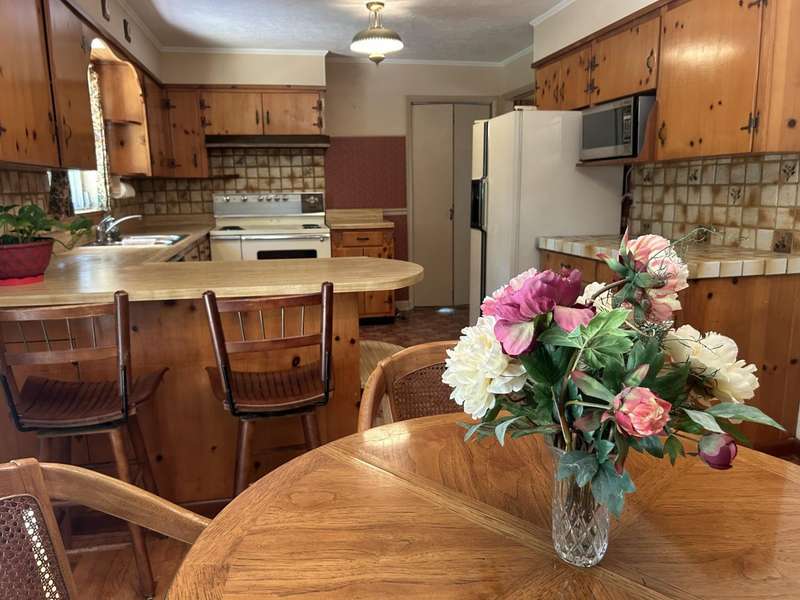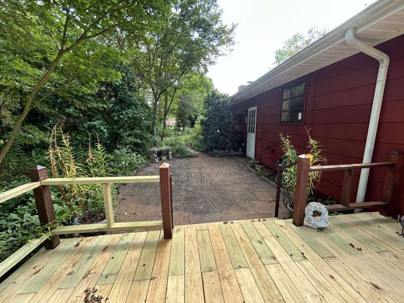 This beautiful, wooded corner lot with a lovely brick 3 bedroom, 1.5 bath is move-in ready and clean as a whistle! Most furnishings can convey and you can go straight to ''housekeeping'' and feel as if time has been turned back to the glory days of 1959. Cooking dinner on the retro Philco, backlit oven will be a conversation piece to guests! Newly floored back deck steps down to patio area and nice private-ish back yard. (May want to add small privacy fence on one side.) The large formal living room on front of the house is where courting can take place and a more informal den can be for Andy Griffith in the evenings. Both boast gas log fireplaces. A large storage room/laundry room adjoins den. Two car carport finishes off the charming, truly mid-century home! But, if vintage isn't you, move right in and DIY as you go!