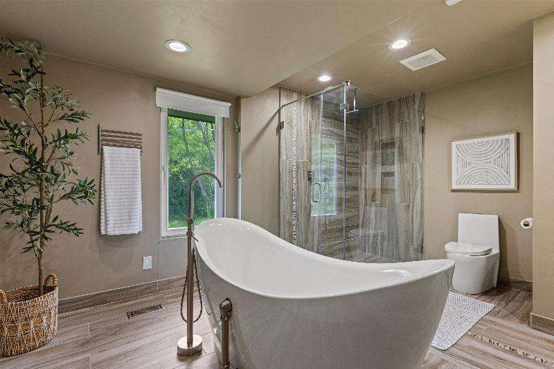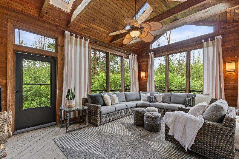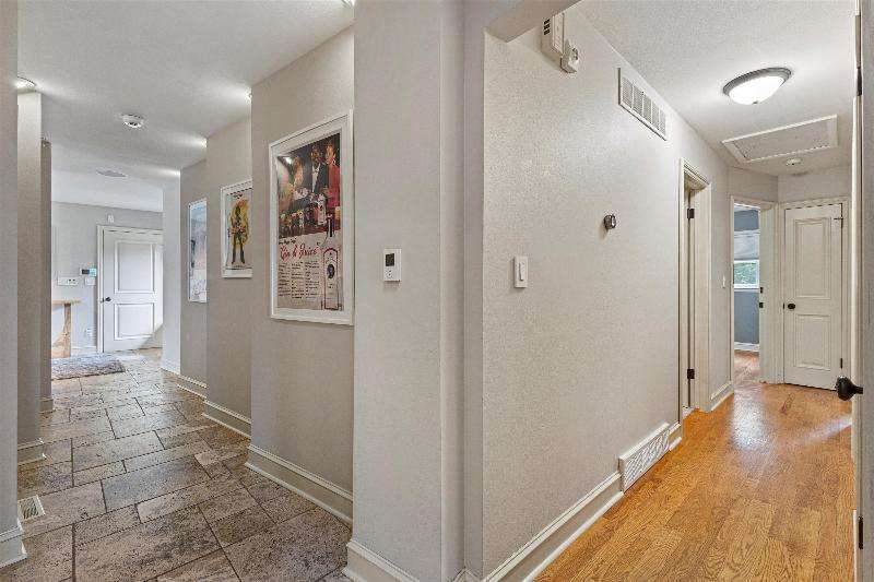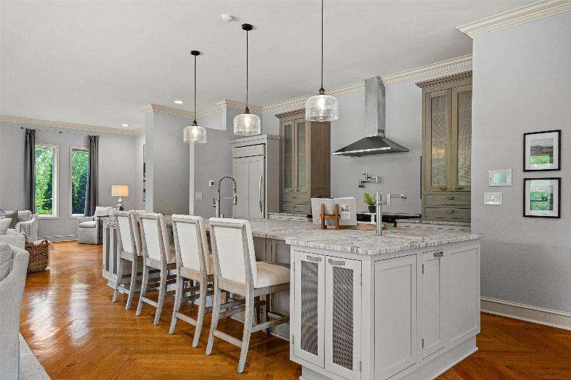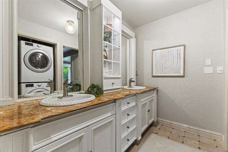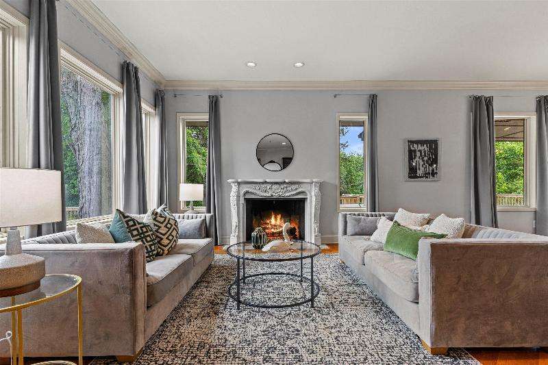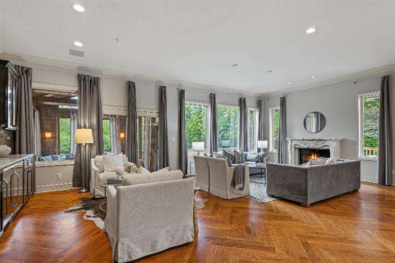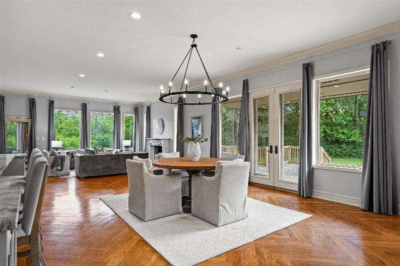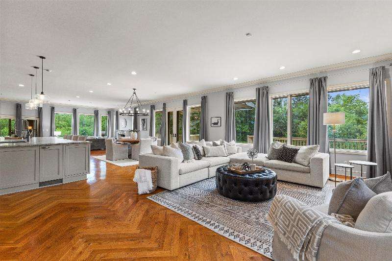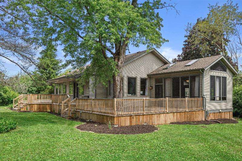 This peaceful River Hills oasis combines unique architecture and thoughtful updates on 2.5 private acres. Upon entering the spacious foyer, a gallery hallway leads to an expansive Great Room. Take in the floor to ceiling windows, two seating areas including an Italian marble fireplace, dry bar, and a chef's kitchen with 10 burner range, double ovens, honed granite counters, oversized island and a tucked away pantry. You'll find this space to be an entertainer's dream with new 75 foot deck and three seasons room with vaulted ceiling and skylights. Retreat to your primary suite including fireplace, walk in closet, laundry, and updated bath with heated floors and soaking tub. Finished basement includes screening room and designated workout space. Whole house generator offers peace of mind.