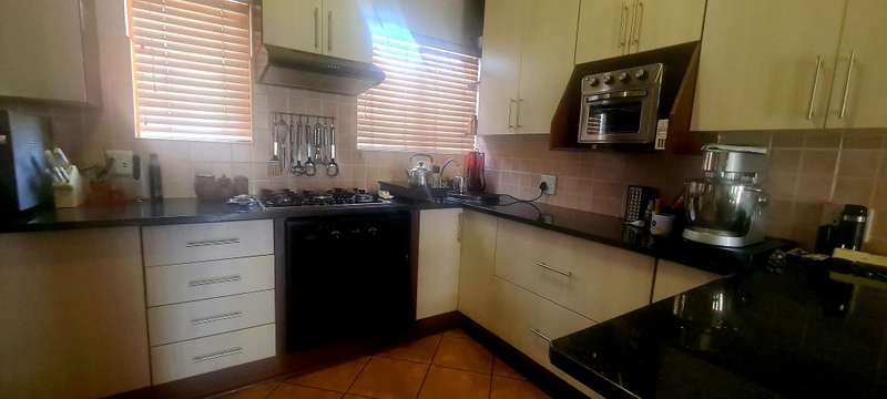 Immaculate home in secure complex, situated close to all amenities. Offering 3 sunny bedrooms, all fitted with built in cupboards. Two bathrooms, one with shower, other en-suite: full bathroom Large living room, well equipped kitchen and separate laundry Super-sized veranda, double garage and enclosed garden. Extras: Jojo tank with pump, inverter and generator Don't miss out on this opportunity, call me now