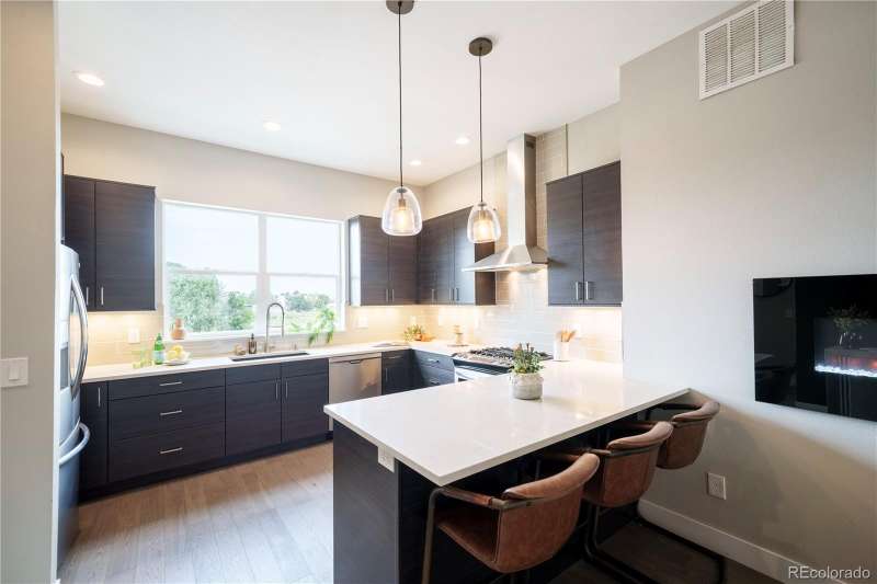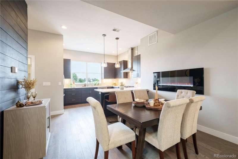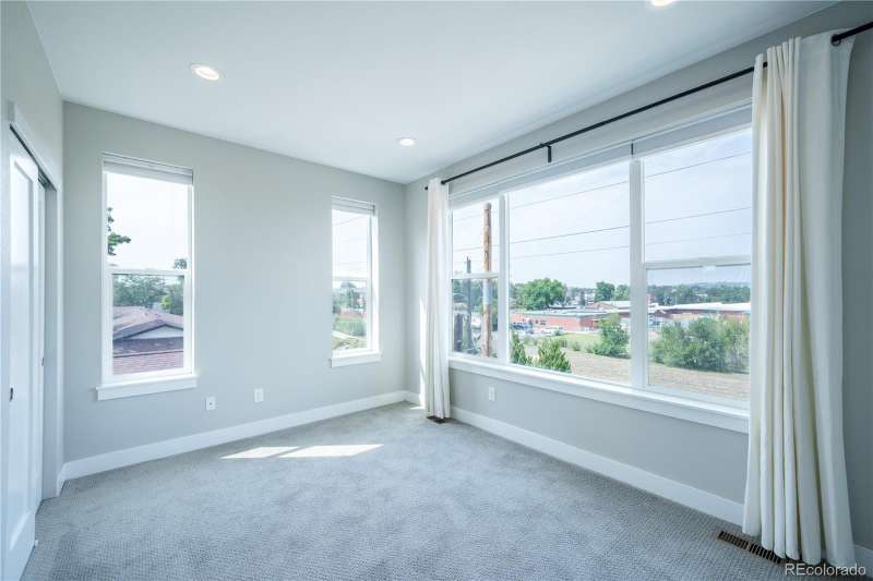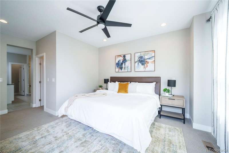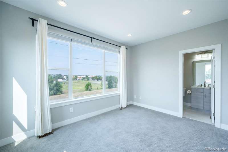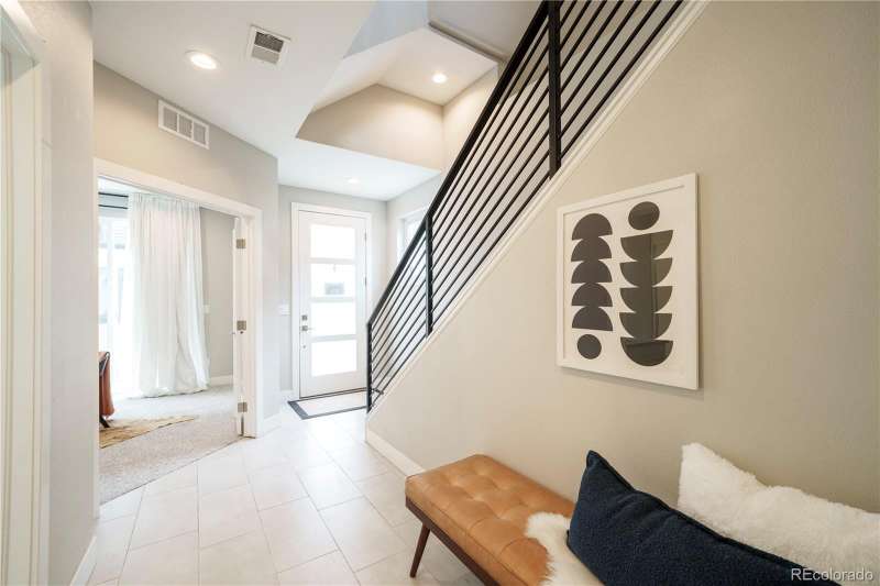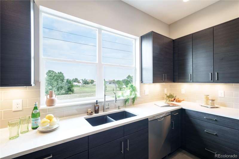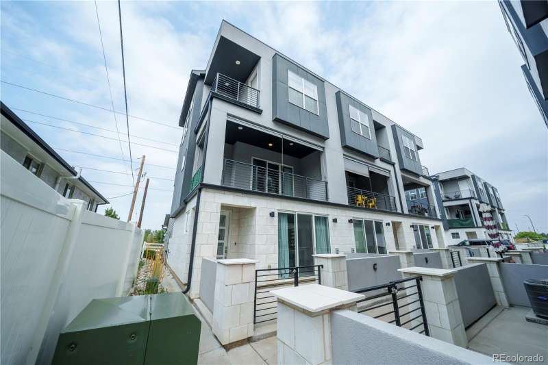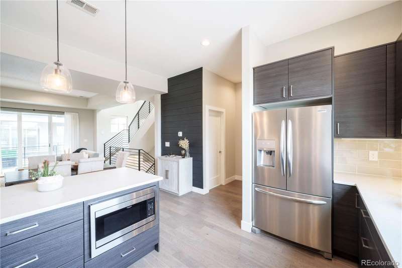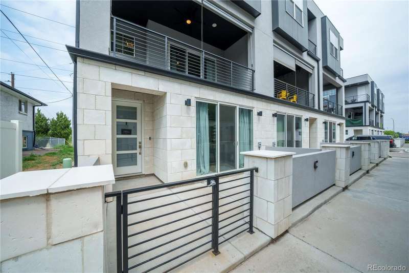 Tucked away literally next to the InterUrban Parkway Trail system connecting you to the Greater Denver Metropolitan area, this wide end unit townhome has expansive views of the mountains to the west, as well as to the north overlooking the park, community garden and the iconic Olde Town Arvada Water Tower. Welcome home to your perfectly situated 3 bed 4 bath home which sits a short bike ride to the best restaurants and entertainment as well as a quick commute to Denver, Lakewood or Golden. Or if you want to stay home and host, this place has it all, from a stone clad sunny patio off of the guest bedroom/office/gym, the covered deck off of the living room kitchen, or hang out and play games out of the oversized garage next to the park. All providing lots of space to entertain. If a chill day is what you are looking for, this place provides. The well appointed primary suite has all the space you would want for a relaxing experience with private balcony, walk in closet, en-suite bathroom and a laundry room. This modern and energy efficient property comes with elevated finishes with appliances from Frigidaire Gallery, bathroom fixtures from Kohler, Carrier HVAC and a Navien tankless water heater. If you travel a lot and want to make use of your property investment, this place allows short term and long term rentals giving you all the options as a homeowner and investor.