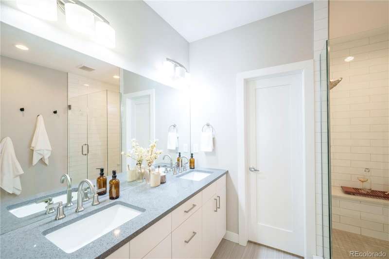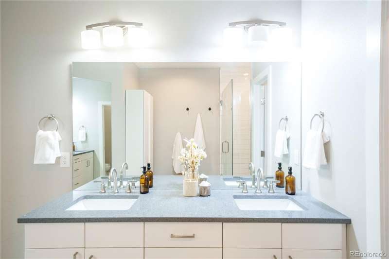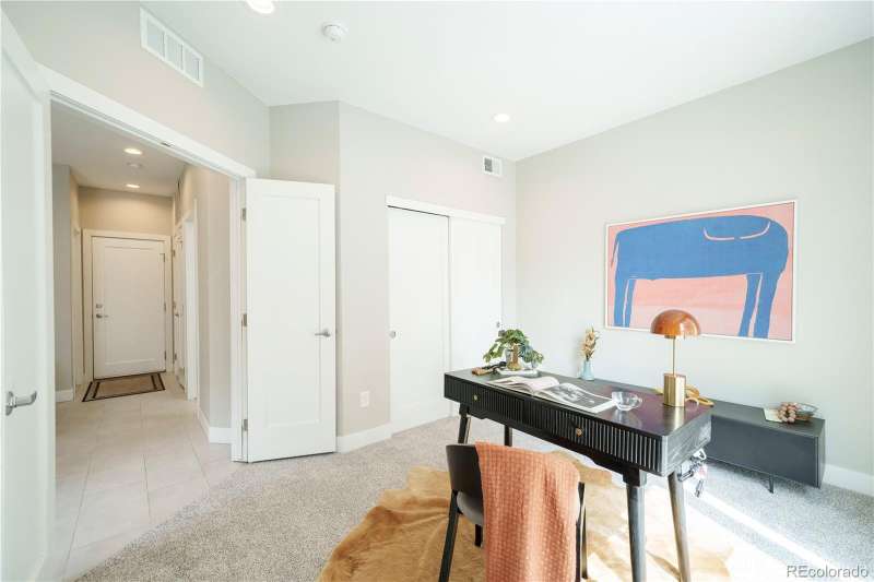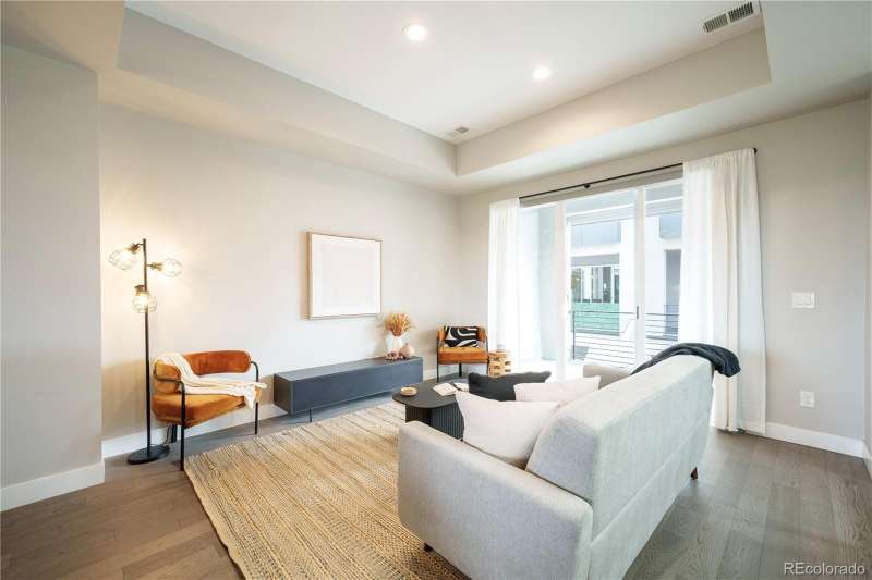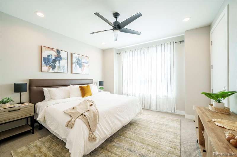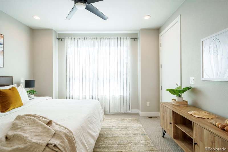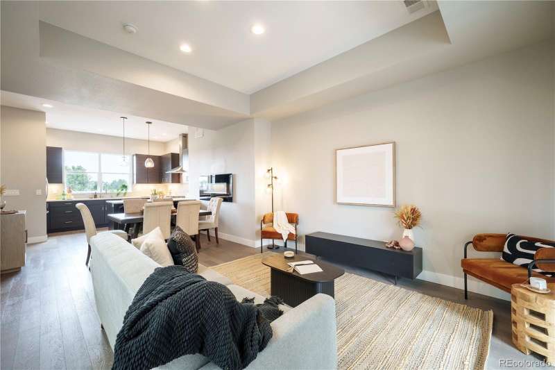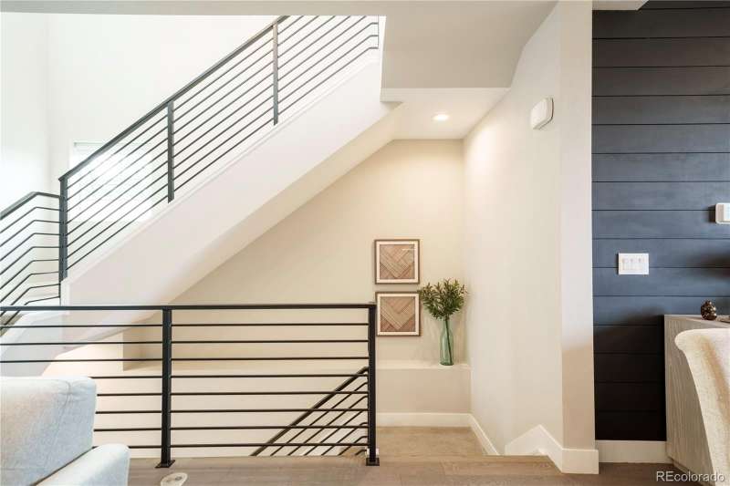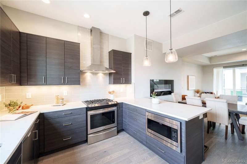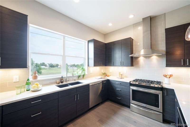 Tucked away literally next to the InterUrban Parkway Trail system connecting you to the Greater Denver Metropolitan area, this wide end unit townhome has expansive views of the mountains to the west, as well as to the north overlooking the park, community garden and the iconic Olde Town Arvada Water Tower. Welcome home to your perfectly situated 3 bed 4 bath home which sits a short bike ride to the best restaurants and entertainment as well as a quick commute to Denver, Lakewood or Golden. Or if you want to stay home and host, this place has it all, from a stone clad sunny patio off of the guest bedroom/office/gym, the covered deck off of the living room kitchen, or hang out and play games out of the oversized garage next to the park. All providing lots of space to entertain. If a chill day is what you are looking for, this place provides. The well appointed primary suite has all the space you would want for a relaxing experience with private balcony, walk in closet, en-suite bathroom and a laundry room. This modern and energy efficient property comes with elevated finishes with appliances from Frigidaire Gallery, bathroom fixtures from Kohler, Carrier HVAC and a Navien tankless water heater. If you travel a lot and want to make use of your property investment, this place allows short term and long term rentals giving you all the options as a homeowner and investor.