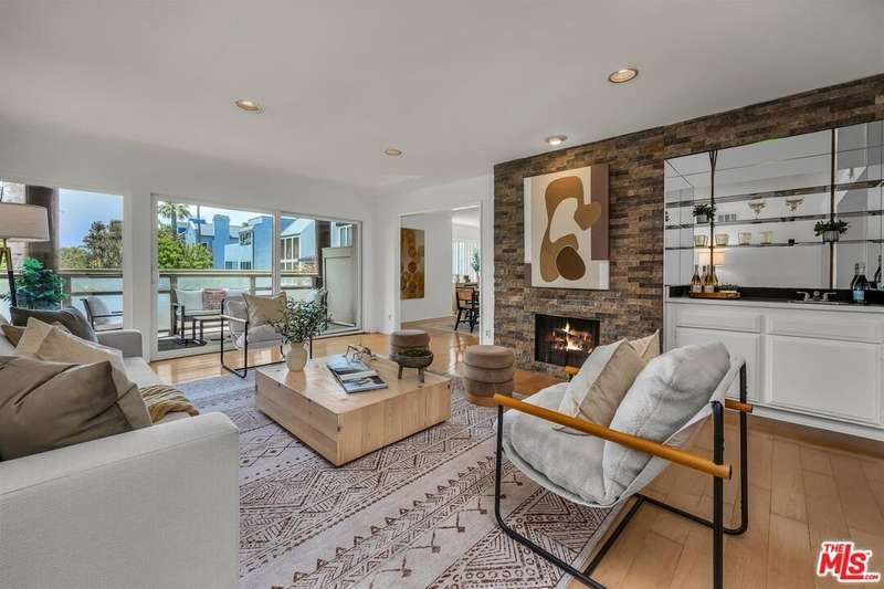 Extremely well priced 2-bedroom, 2 bath south facing corner condo just minutes from the beach! The spacious living room features a cozy fireplace and flows into a lovely dining area and a bright kitchen with charming breakfast nook. The primary suite offers a serene retreat with a lovely appointed bath and excellent storage. Enjoy outdoor living on the expansive 150 sq. ft. patio perfect for entertaining. This home overlooks a beautiful tree-lined mall. Offering both privacy and peaceful views. Accessibility to the beach is only 1 and I/2 block away.