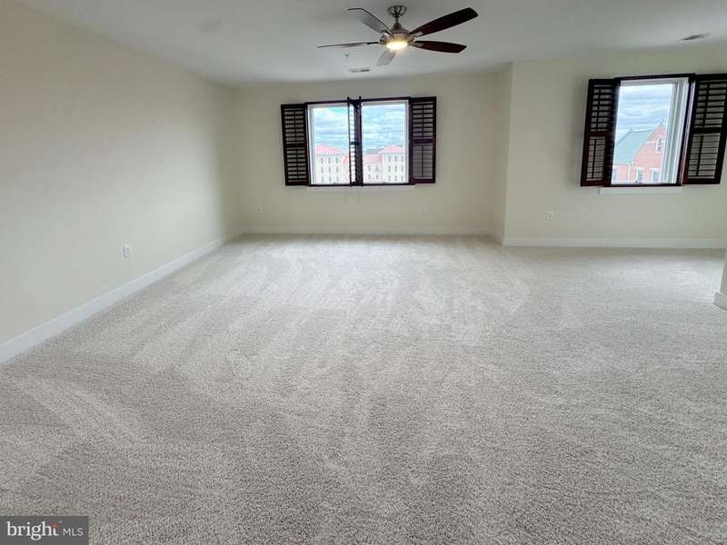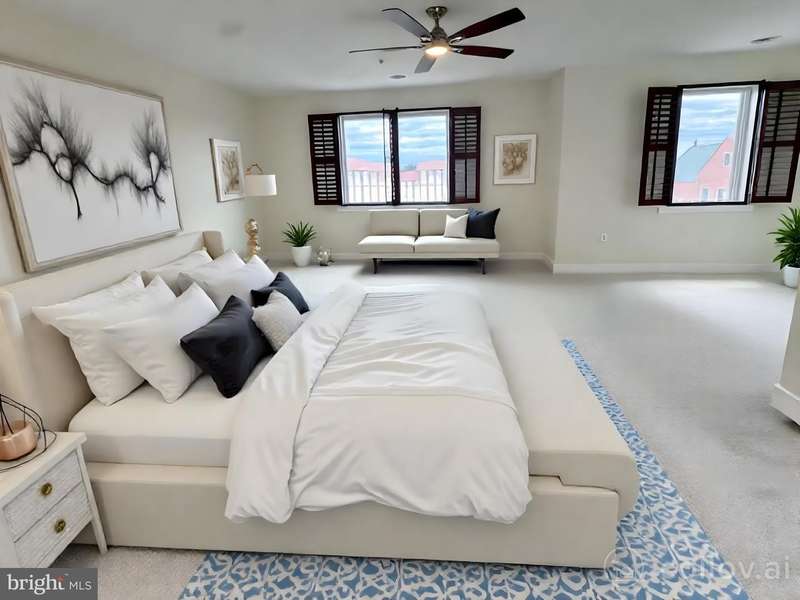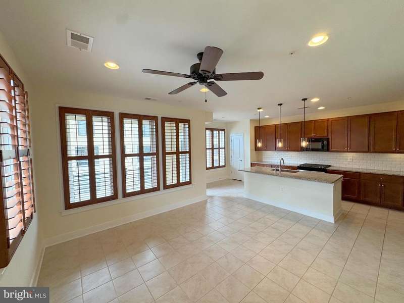 Welcome to this spacious three-story end-unit townhome offering comfort, convenience, and thoughtful design throughout. Enter through the front door onto 12x12 beige tile flooring. To your left, the one-car garage includes a LiftMaster door opener and built-in shelving for easy storage. The entry hallway features a coat closet with shelving before leading upstairs, where a window fills the stairway with natural light. The main level is an open-concept living, dining, and kitchen space designed for both comfort and connection. Plush beige carpet defines the living and dining area, where three large windows, blinds, and a ceiling fan create a bright and welcoming atmosphere. A rustic black chandelier adds charm to the dining area, and a convenient half bath with Sterling fixtures is tucked nearby. The adjoining kitchen features matching 12x12 beige tile flooring, two light-filled windows with wooden shutters, rich dark wood cabinetry with under-cabinet lighting, Whirlpool appliances, bar seating at the island with pendant lights, and a cozy gas fireplace with a TV mount above. The kitchen also offers a pantry, breakfast area, and access to a private balcony - perfect for morning coffee or evening relaxation. A storage closet is located near the stairs for added convenience. Upstairs, dark hardwood steps accented by sconce lighting lead to two comfortable bedrooms, each with a ceiling fan, closet, and blinds. The full hall bath includes a dark wood vanity and a tub-shower combination. The utility closet houses a Whirlpool washer and dryer, Lennox HVAC system, and Bradford White water heater. The primary suite offers a peaceful retreat with soft carpet, wood shutters, and a spacious walk-in closet featuring a full closet system. The en suite bath includes a double vanity with wood cabinetry and a step-in shower with a built-in bench. This end-unit townhome beautifully balances style and functionality - with a bright open-concept main floor, timeless finishes, and modern comfort from top to bottom.