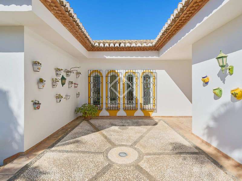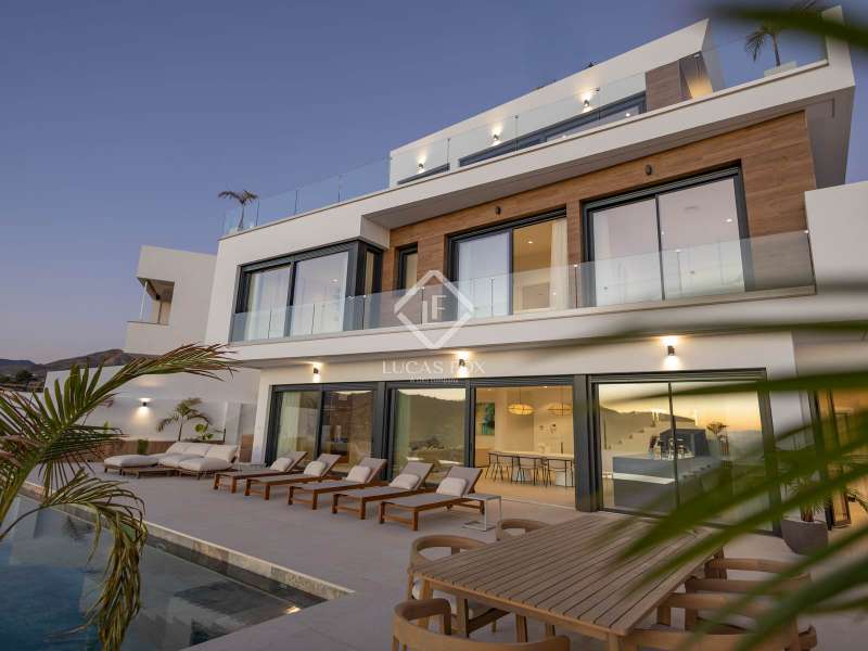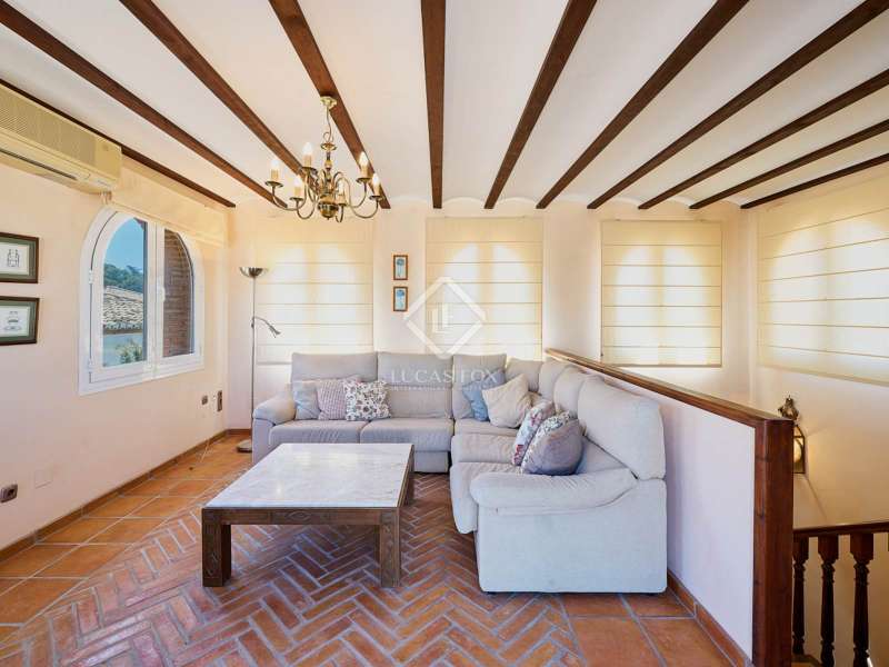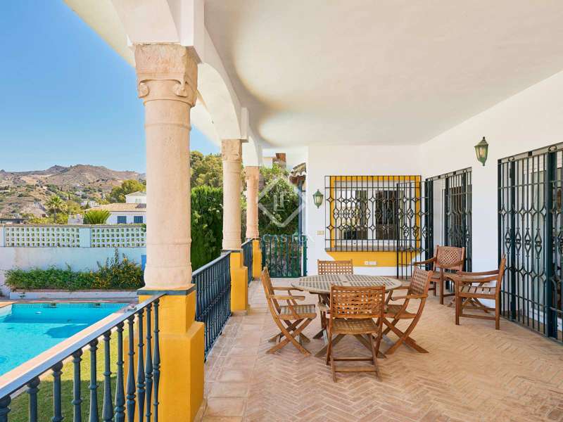 Lucas Fox presents this beautiful traditional Andalusian style villa located in the gated and secure residential El Gallo. It is located in the Punta de la Mona development , in the coastal town of La Herradura, the most exclusive place on the Costa Tropical of Granada. This 650 m² property sits on a 800 m² plot . It is surrounded by a beautiful garden and enjoys panoramic views of the sea and the bay of La Herradura. The property is distributed over three floors, although most of the rooms in the day and night areas are located on the main floor . We enter through a large entrance hall, which gives us access to the separate kitchen and the living-dining room, which offers access to the large exterior terrace with pool and garden area. On the same floor we have three large bedrooms with built-in wardrobes and their own bathrooms. On the upper floor , there is a multipurpose room, which can be used as a television and rest room with an exterior terrace. That part has great potential, you could even configure a large bedroom with wonderful views. On the lower ground floor, the property enjoys a large garage of more than 400 m², with a lot of potential. Right now it has two bedrooms with two bathrooms. Get in touch for more information.