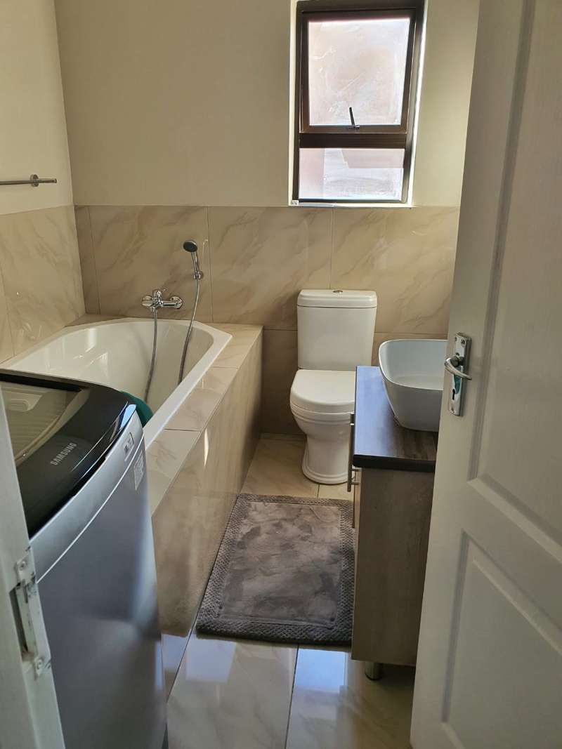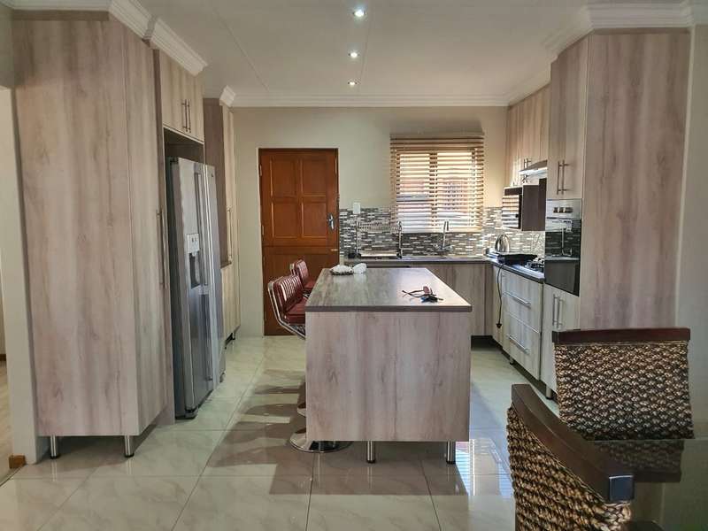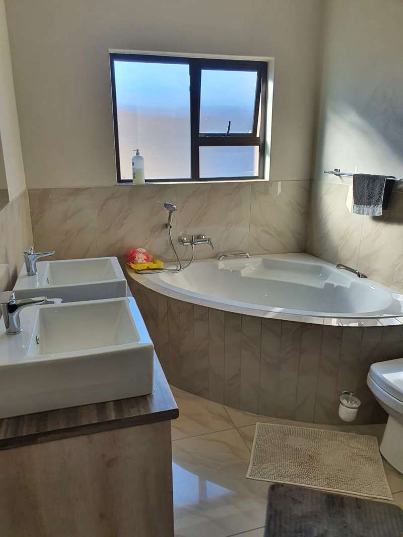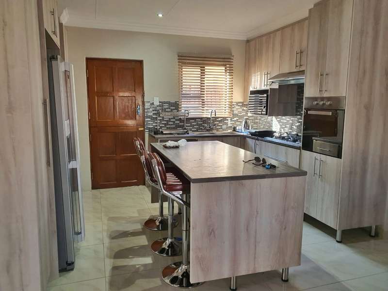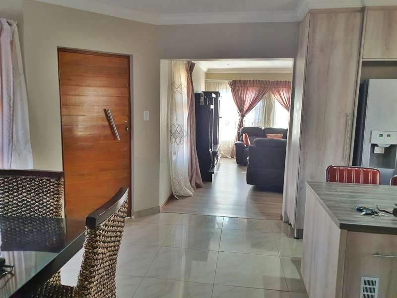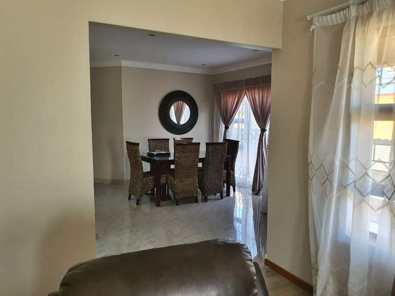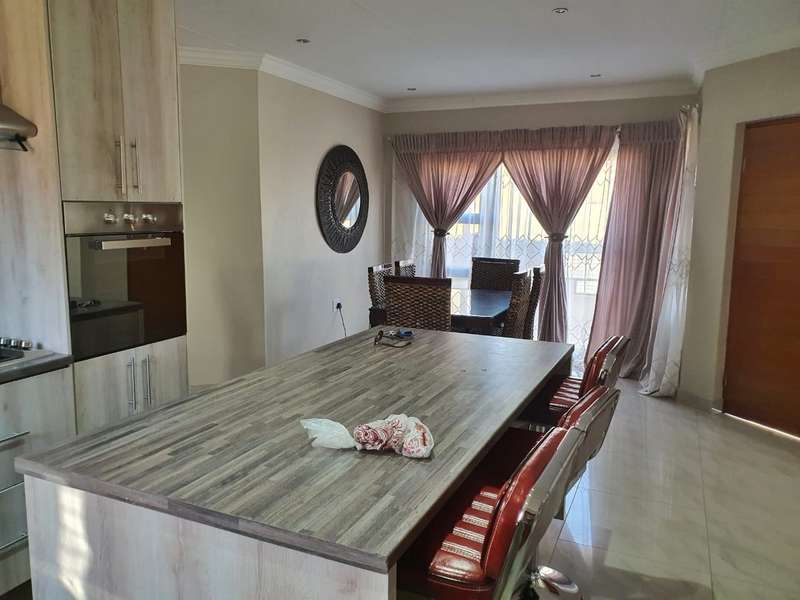 Welcome to this stunning modern house in Vista Park, perfectly situated in close proximity to the Vista Park Supermarket. With its sleek design and contemporary features, this residence offers a luxurious living experience. Upon entering, you'll be greeted by an open plan lounge area seamlessly connected to a spacious dining room, creating an inviting and versatile space for entertaining guests or spending quality time with family. The abundance of natural light flowing in through large windows enhances the warm and welcoming atmosphere. The modern kitchen is a focal point of the house, featuring a center island that serves as a convenient workspace and a gathering spot for casual meals. Equipped with state-of-the-art appliances and ample storage, this kitchen caters to the needs of even the most discerning home chef. This house boasts three well-appointed bedrooms, each offering a tranquil retreat. Built-in cupboards provide plenty of storage space, helping to keep the rooms organized and clutter-free. Two elegantly designed bathrooms ensure convenience and privacy for both residents and guests.