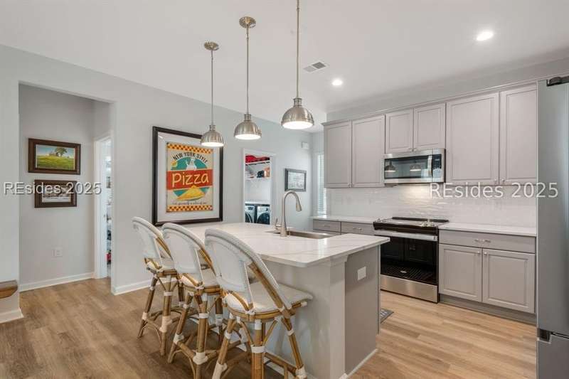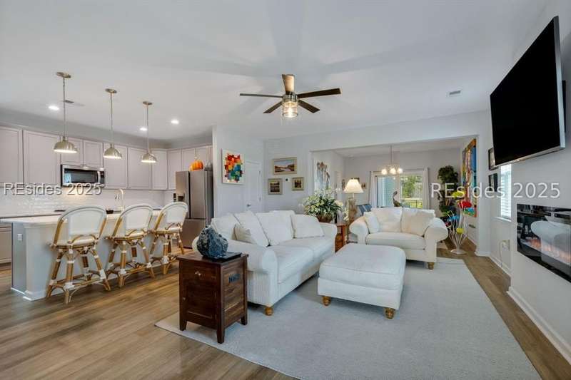 Move right in to this lovely owner-refined 2023 Jasper model in Magnolia Walk showcasing nearly $76,000 in builder upgrades plus an additional $23,000 in thoughtful owner improvements. Notable enhancements include a custom private fence, upgraded landscaping with a lush lawn, motorized patio screen, 240V garage outlet, full gutter system, and customized closet and pantry storage solutions. Offering just the right size at 2,300 sq ft, the home features a first-floor primary suite with ensuite bath, a cozy family room fireplace, and a spacious quartz kitchen island with farmhouse sink and soft-close cabinetry-perfect for gatherings. Upstairs, three additional bedrooms and a loft provide extra room and privacy. A newer model front-load washer/dryer and Hisense refrigerator convey with the home. Set in a charming park-front location with ample guest parking, this property is truly a sweet gem nestled in a popular social community with a multitude of events and activities to enjoy!