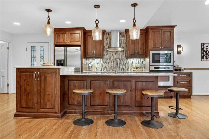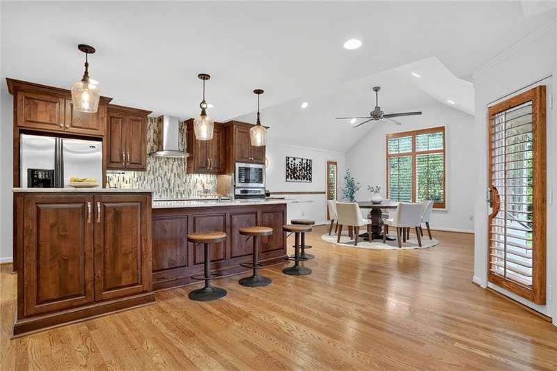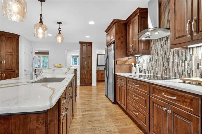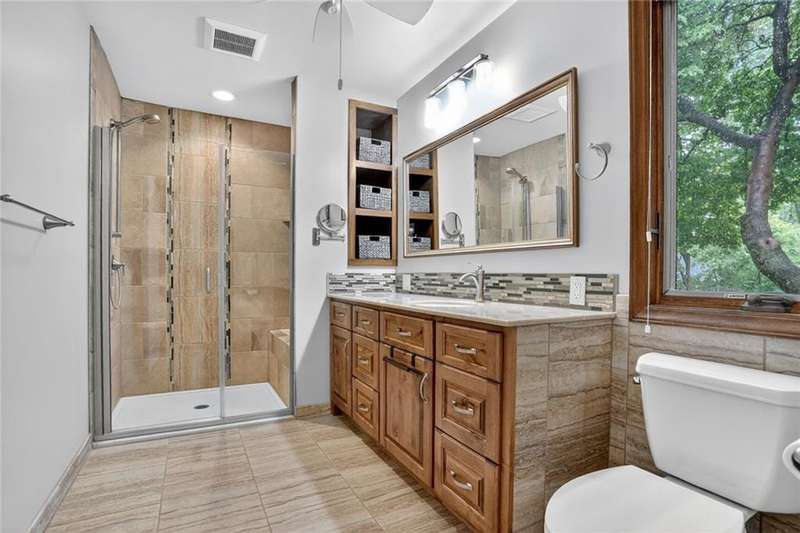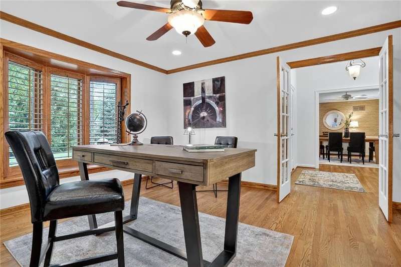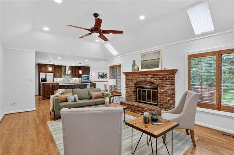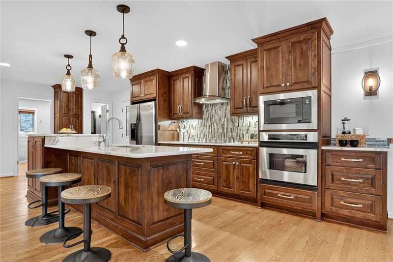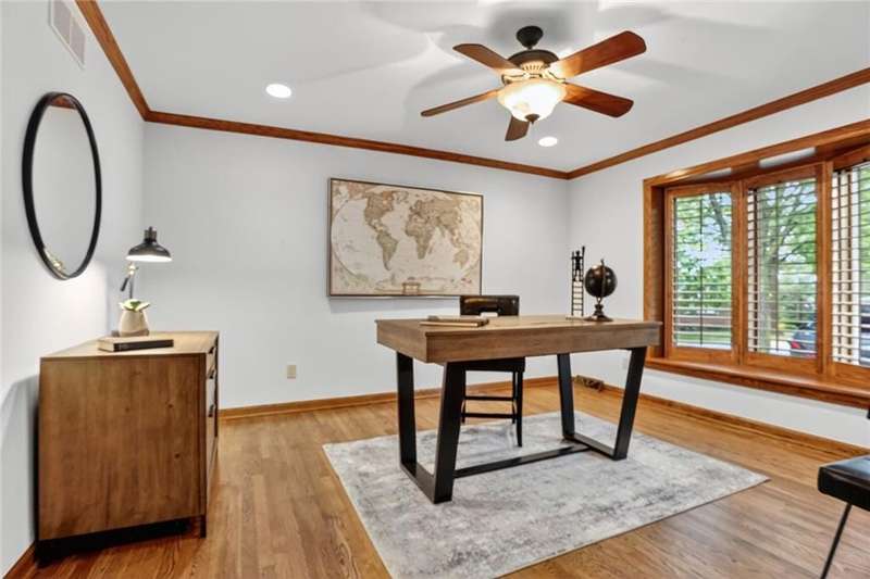 Welcome to this timeless brick ranch nestled on a beautifully landscaped half-acre in sought-after Leawood Estates. Thoughtfully updated throughout, this home balances modern comfort with classic charm, creating the perfect place to gather and grow.Inside, refinished hardwood floors, fresh paint, and designer lighting set a welcoming tone. The spacious living room features plantation shutters and a brick fireplace, opening to a brand-new stamped concrete patio with a fountain that looks out over a peaceful, private backyard. The formal dining room with wainscoting is ideal for hosting, while the updated kitchenrenovated in 2020offers Cambria Quartz countertops, stainless steel appliances, soft-close cabinetry, and abundant storage. A cozy breakfast room or den addition makes the space even more inviting.The primary suite feels like a retreat with its walk-in shower, soaking tub, and skylight. Two additional bedrooms each enjoy ensuite baths and generous closets, while a fourth bedroom off the hallway offers flexibility as an office, den, or guest room. A laundry room off the kitchen, central vac and three-car garage adds everyday convenience with a wash station and extra storage.Downstairs, the enormous dry, unfinished basement offers endless potentialwhether for a recreation room, gym, or additional bedrooms. Outside, enjoy lush landscaping, full privacy with a wraparound fence, an irrigation system, and plenty of space to relax or entertain.All this, plus an unbeatable location just minutes from highways, shopping, restaurants, and award-winning schools. This rare Leawood Estates home offers style, space, and thoughtful renovationsall in a setting designed to make you feel right at home.