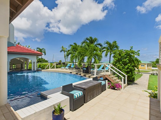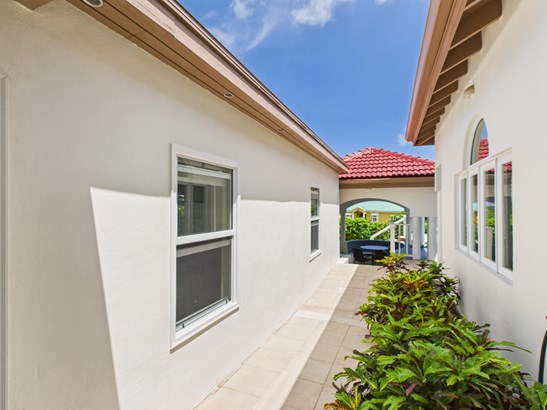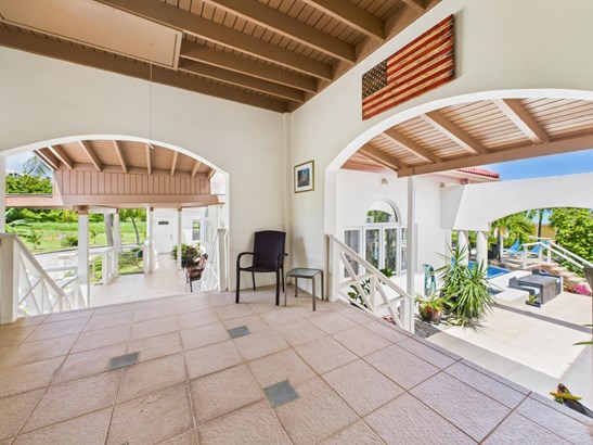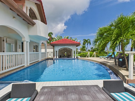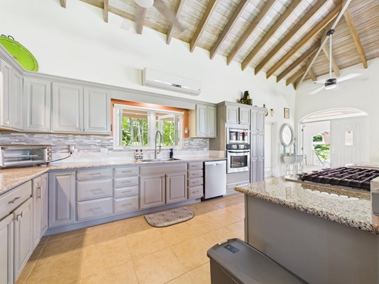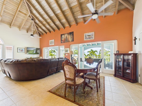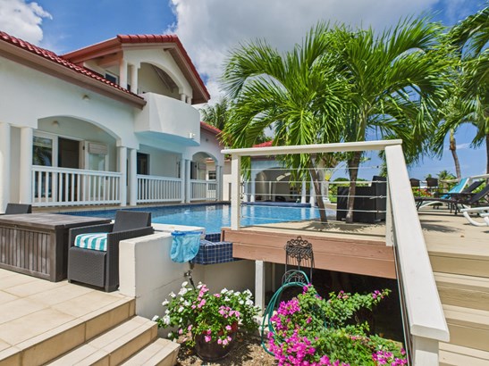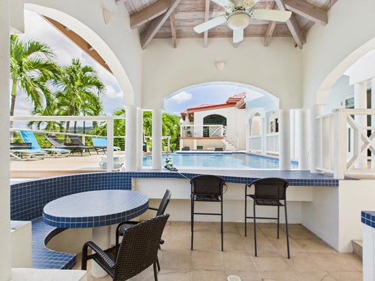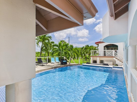 Welcome to your Island Paradise!Tucked amid lush tropical gardens, this beautiful property offers a luxurious three-bedroom, two-bath main home plus a private one-bedroom, one-bath apartment with its own laundry--excellent for guests. The heart of the home is an inviting open-concept space where the kitchen, dining, and living areas flow seamlessly onto an expansive upper gallery overlooking the pool and vibrant landscaping filled with banana, sugar apple, coconut and pineapple trees to name a few!The resort-style pool features a swim-up bar with underwater stools--perfect for entertaining or relaxing in the Caribbean sun. Just steps away, the outdoor kitchen and dining area provides an amazing spot for al-fresco meals surrounded by island breezes.On the opposite wing, two additional bedrooms, a bath, and a loft open directly to the pool terrace, while a versatile bonus room with kitchen offers endless options for a media room, gym, or studio.