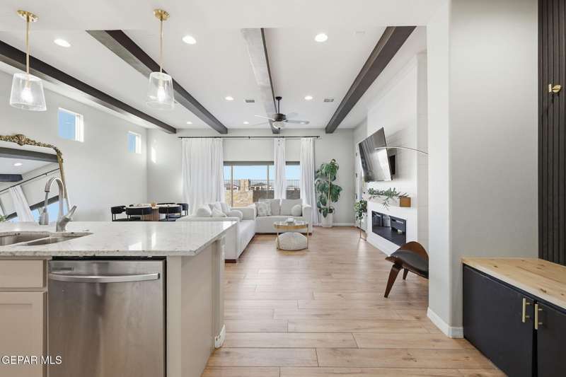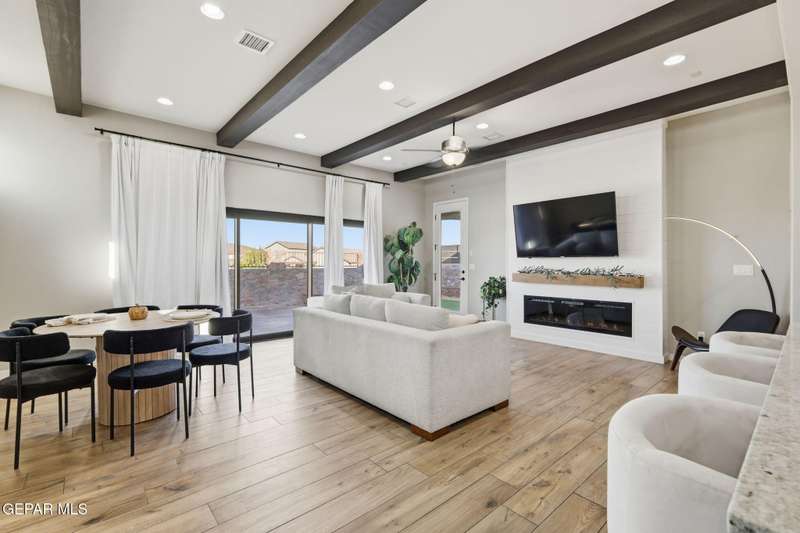 Beautiful PALO VERDE RESALE in Peyton Estates. This home features a newly installed electric fireplace, 12-foot 3 Panel sliding doors, and a custom mudroom for added functionality. Enjoy freshly painted kitchen cabinets with stainless steel appliances, tile throughout & carpeted bedrooms for comfort.The home includes washer and dryer, epoxied garage floor, and FULLY LANDSCAPED front and backyard. Conveniently located near shops, restaurants, and entertainment -beautifully maintained and ready for the perfect buyer! NO back neighbors & great views!