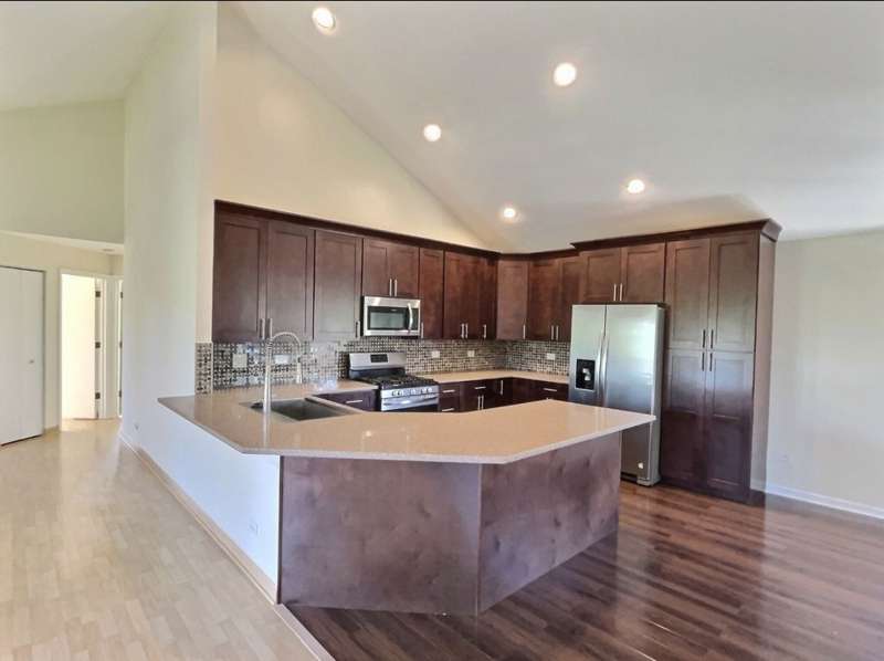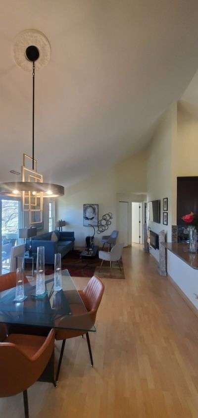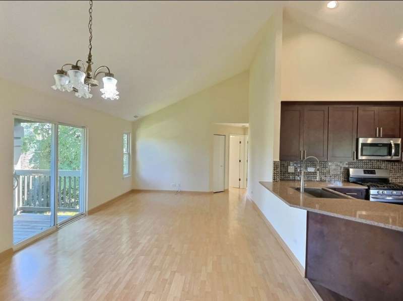 Gorgeous upper-level townhome featuring 3 bedrooms, 2 baths, and a 1-car attached garage in a premium cul-de-sac location with serene pond views from the balcony. Enjoy a brand-new, spacious eat-in kitchen, cathedral ceilings, and an open-concept living/dining area. Freshly painted with newer Pergo flooring throughout. In-unit laundry included. Prime location-walk to shopping and dining, with easy access to expressways. Excellent Buffalo Grove schools!