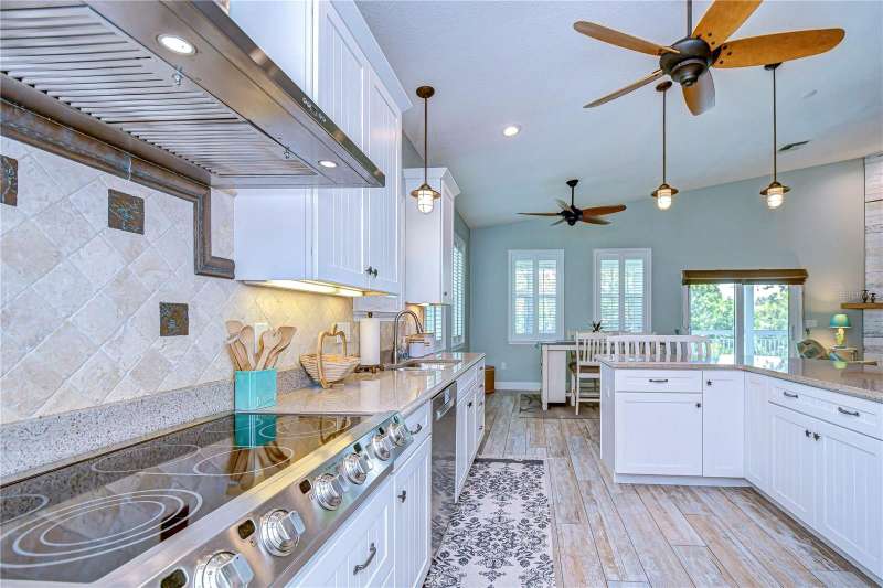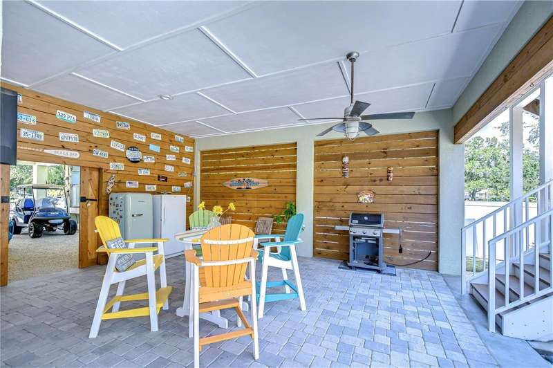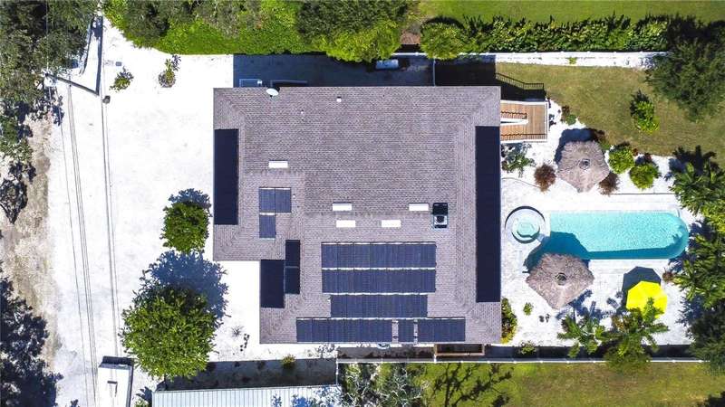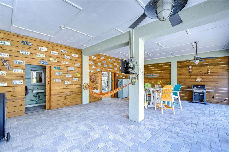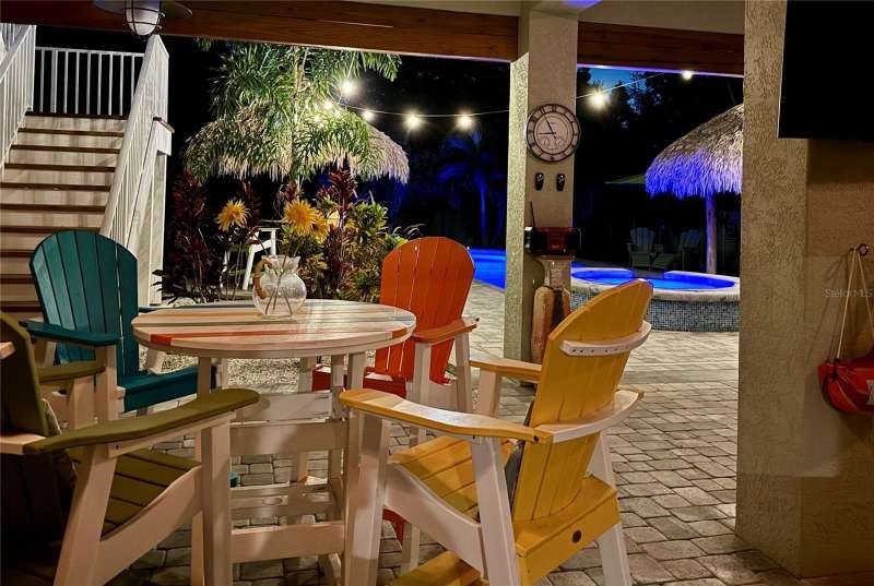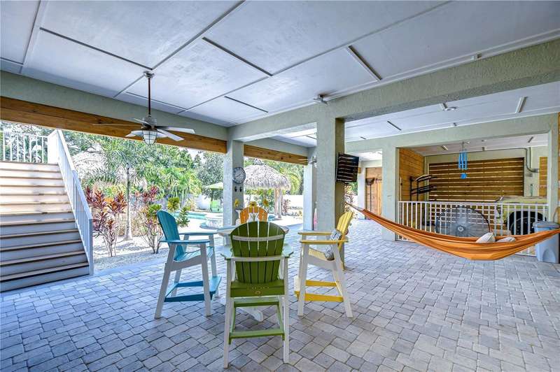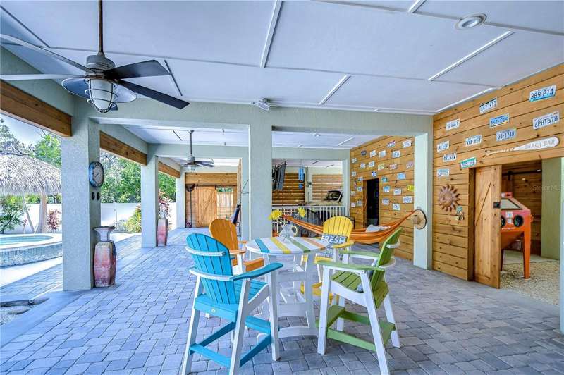 Experience upscale Coastal living in this elevated home...where meticulous construction meets comfortable luxury. Designed to embrace the Florida lifestyle inside and out, this wonderful property offers so much to enjoy. From a Breezy, light and bright interior to a tropical oasis backyard, it was Custom designed and built in 2016 with impeccable attention to detail and fortified for strength. This private stilt home offers both casually luxurious living and peace of mind. It proudly sits 17 feet above sea level on a private .32 acre lot and was constructed to rigorous FEMA standards. Crafted for resilience and eco-conscious living, the home features Hurricane-rated impact windows and doors, 55 solar panels that keep electric bills to an astonishing $30 per month, 140-gallon propane tank powering on-demand hot water, a grill, and generator connections, and all of the under home lumber is desirable "saltwater splash" dock grade, and pilings, headers, footers are concrete. Inside you will discover a space that wows with high quality and uniquely designed finishes.. custom shiplap walls, barn door accents, soaring vaulted ceilings with dimmable LED lighting and fans, and plantation shutters throughout. The floorplan is fun and functional and just right for everyday living or entertaining. Enjoy generous bedrooms, laundry utility room, and walk in pantry. Sliders from Living Room and primary bedroom open to an amazing screened in patio overlooking the backyard. 1000lb exterior elevator lift, 240 sqft of under home storage and under house/carport parking for up to 8 vehicles! And the Backyard...will truly take your breath away! It is private oasis that would make Jimmy Buffett proud! Showcasing a 2020 heated and cooled sparkling saltwater pool complete with spillover spa a shaded grotto seating, two locally designed and hand crafted tiki huts, and over 1,500 square feet of pavered patio space, and just under 2000 square feet of covered patio space for shady lounging and outdoor living, a whole house mosquito misting system and a retro fabulous custom outdoor surfboard and cypress lined shower. Your guests will never want to leave! Ozona is a unique community with coastal charm, 5 marinas, restaurants that are loved, and a waterfront with the most beautiful sunsets! Ride your bike or drive your golf cart all around town! This area is in unincorporated Pinellas -- possible short term rental and available fully furnished! Come make 262 Banana Road your Coastal Paradise! View matterport and virtual tour at https://my.matterport.com/show/?m=t4Nu3C1amJL&mls=1