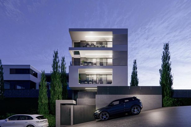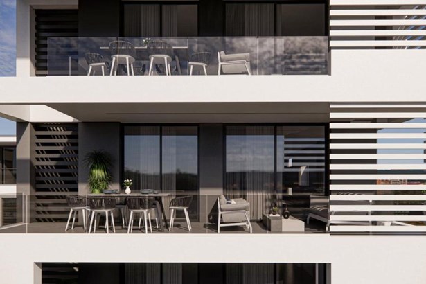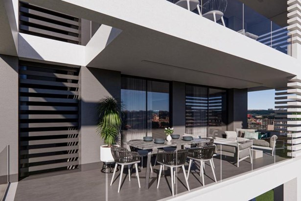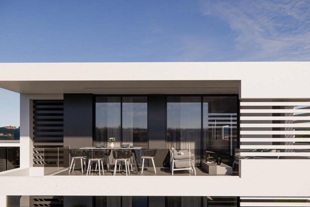 On the second floor, you will find an open-plan living area, kitchen, and dining area. The contemporary design is accentuated by the high-quality finishes and fittings, with large floor-to-ceiling windows that provide an abundance of natural light and stunning views of the sea. This floor also includes a convenient guest WC.