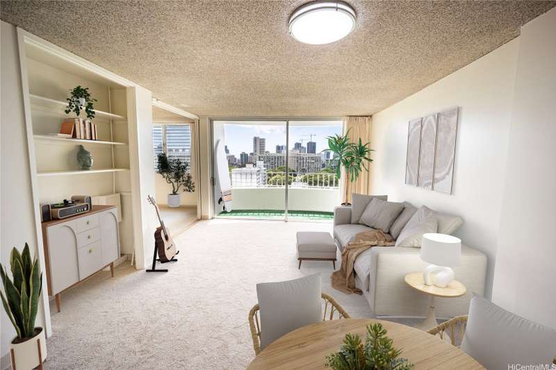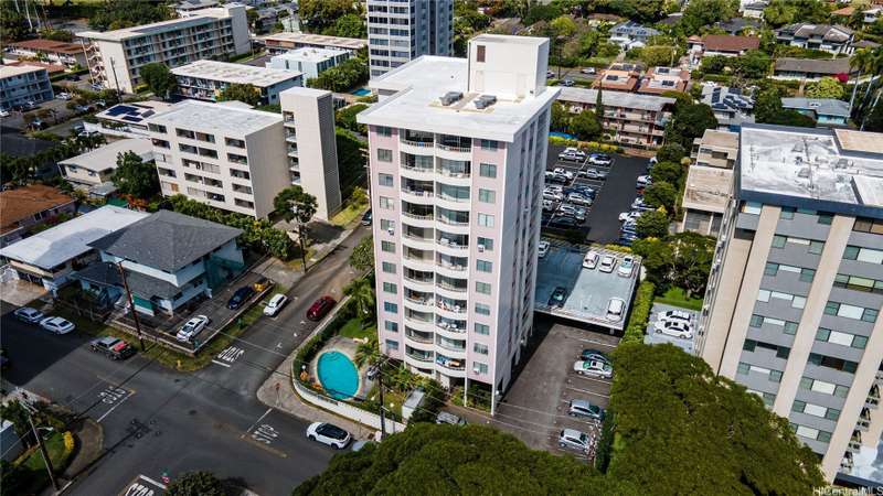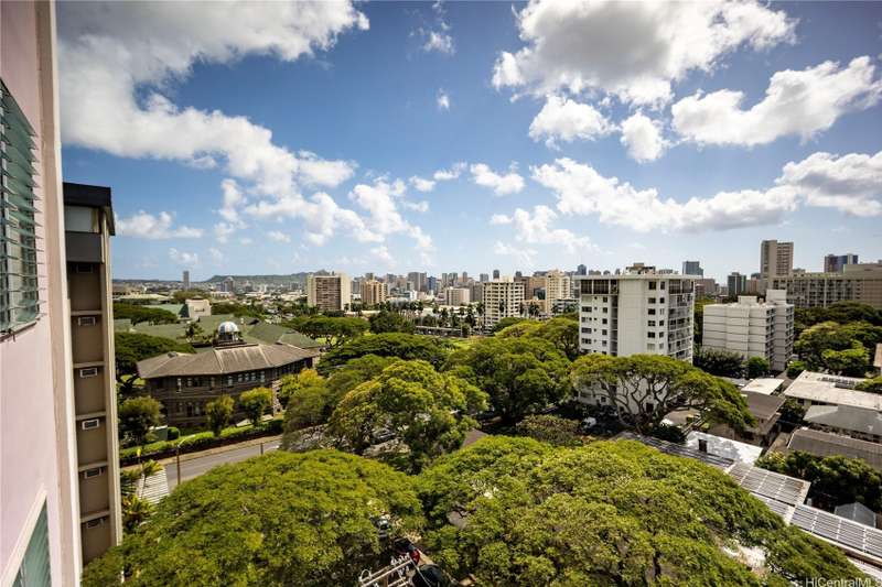 Beautiful 2 bedroom/1 bath corner unit at the "Punahou Manor" with spectacular city, mountain, Manoa Valley, ocean views and recently redone! Located in Makiki-Punahou neighborhood - close to two major hospitals, art museums, downtown Honolulu, freeway onramps, supermarket, Punahou School and Maryknoll School. Beautiful lanai with sunset views with washer and dryer in unit. 1 covered parking stall. Includes refrigerator, washer and dryer, drapes, range/oven.