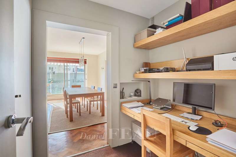 Sole Agent. Dupanloup neighbourhood. This 135 sqm dual-aspect apartment is on the 1st floor of a secure luxurious little co-ownership with a lift located in one of the prettiest streets in Boulogne North. It includes a spacious double living/reception room opening onto a wide balcony bathed in sunshine, a kitchen with dining facilities, a study, three bedrooms including a suite with a shower room and dressing room, a bathroom/wc, and a guest wc. Ample fitted storage space. Residents benefit from access to the co-ownership’s shared garden. With a cellar. A parking space may be acquired for a further 30000€.