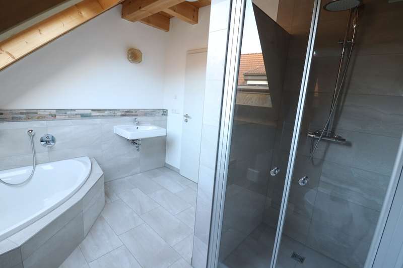 VON-POLL Immobilien presents a detached house in an absolutely quiet location in Grafrath. The house is a three-bedroom end-terrace house and is situated in an absolutely quiet location at the rear of the plot. It is on the side facing away from the road with a garden and two parking spaces. On the first floor there is a guest WC, a living/dining room with a large open kitchen and the large terrace and garden. Upstairs you will find three bedrooms and the master bathroom. In the studio there is a large bedroom and a bathroom. The house is rented and has a graduated rental agreement. Further information is available on request.