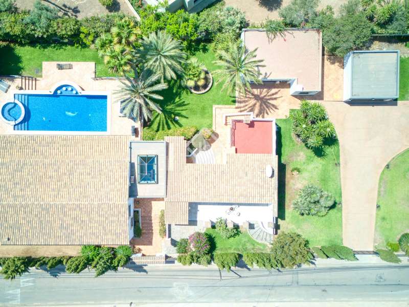 Magnificent Mediterranean villa just steps from the beaches of Palmanova Located in one of the most sought-after areas of southwest Mallorca, Villa Palmanova is an exceptional property that combines elegance, comfort, and a prime location. Just a few minutes' walk from Palmanova's sandy beaches and fine restaurants, this villa offers an idyllic setting for fully enjoying the Mediterranean lifestyle. Situated on a flat plot of 1,942 m², this 751 m² residence boasts generous volumes, high ceilings, and bright spaces. It features 5 large double bedrooms, all with en-suite bathrooms, including a separate apartment with a kitchen, living/dining room, and bedroom with bathroom. The spacious terraces, landscaped lawned garden, and 12-meter swimming pool with jacuzzi create a truly peaceful haven, ideal for relaxing in complete privacy. The villa also includes a fully equipped main kitchen, a spacious living/dining room open to the exterior, a double garage, and ample parking. Fully air-conditioned, possibility of extending by an additional 80 m², bathroom and toilet by the pool: everything is combined for absolute comfort. Close to top international schools and year-round amenities, this villa is a rare find that will appeal to families and lovers of understated luxury. Come and experience a peaceful life, hidden from view, while being 15 minutes from Palma.