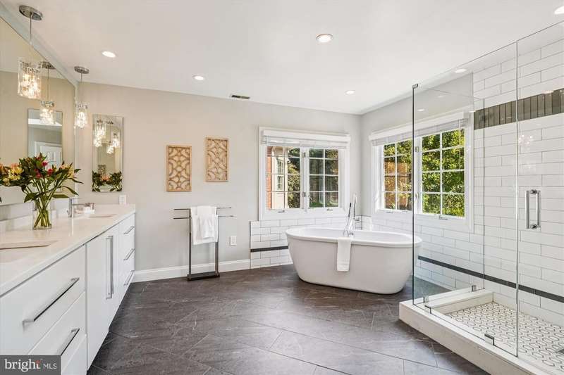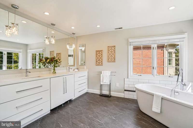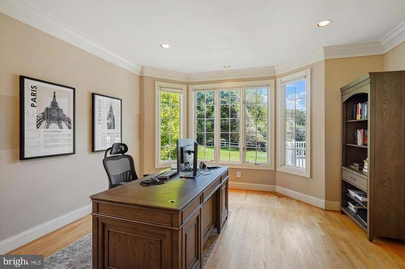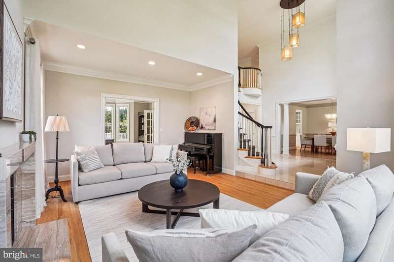 CUL-DE-SAC GEM IN AVENEL Step into a showstopper that feels straight from the pages of a luxury design magazine! Nestled on a quiet cul-de-sac in Potomac's prestigious Avenel community, this stunning residence blends tasteful finishes, smart architectural details, and effortless style to create a home that's as functional as it is breathtaking. Designed with both comfort and sophistication in mind, this stately all-brick Colonial boasts over 6,000 square feet of elegantly appointed living space, including 7 bedrooms, 4.5 baths, and thoughtfully curated updates throughout. Set on a secluded lot with no rear neighbors, it offers rare privacy and a serene atmosphere. With an all above-ground lower level with abundant natural day light, and a peaceful, private setting, this impeccable property is a true standout! The beautifully landscaped front yard, anchored by a striking Japanese maple and mature plantings, creates a warm and welcoming approach. Recent improvements include brand-new LVP flooring in the walk-out basement, and fresh paint throughout, including the garage, and HVAC replaced in 2017. A grand two-story marble foyer with a sweeping circular staircase, a contemporary designer chandelier and stylish balcony hallway makes a stunning first impression. This spectacular space is flanked by formal living and dining rooms. The living room is a brilliant architectural showcase, with a soaring ceiling, a marble-surround fireplace, and a striking two-story Palladian window that fills the space with natural light. The formal dining room features wainscoting, crown molding, and a bay window, creating a timeless atmosphere for entertaining. A private office with hardwood floors and a large bay window overlooks the backyard and flows into the sun-drenched family room, where a stone fireplace and a dramatic wall of glass doors open to an expansive Trex deck-perfect for effortless indoor-outdoor living. The open-concept kitchen is a chef's dream, showcasing quartz countertops, a large center island with gas cooktop, Sub-Zero paneled refrigerator, double ovens, farmhouse sink, custom cabinetry, a built-in desk area, and direct access to the deck. A wet bar conveniently links the kitchen to the dining room for seamless entertaining. A chic powder room, a mudroom, a large laundry room with a 2023 Samsung washer, and access to an oversized two-car garage with high ceilings and built-in storage complete the main level. Upstairs, the luxurious primary suite boasts vaulted ceilings, a bay window, a custom walk-in closet, and a spa-like bath with skylights, dual vanities, a soaking tub, and a private water closet. Four additional bedrooms offer flexible space, including two Jack-and-Jill layouts and one unique room that connects to the primary suite-ideal as a nursery or sitting room. The above-ground walk-out lower level is designed for recreation and relaxation, featuring a home theater (projector and speakers convey), a large daylight rec room with patio access, a gym or sixth bedroom, a seventh bedroom, full bath, and ample storage. Walls of windows and multiple glass doors fill the lower level with light, making it feel open and inviting. Enjoy the best of Avenel living with access to premier neighborhood amenities, top-rated schools, and easy commutes to Bethesda, Tysons, and Washington, D.C. This exceptional home combines timeless architecture with contemporary elegance-offering the perfect blend of privacy, luxury, and everyday convenience.