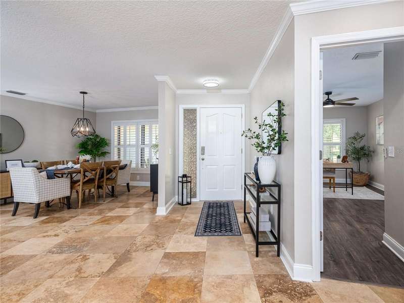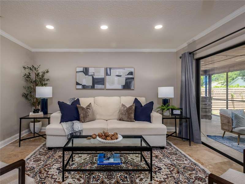 Under contract-accepting backup offers. HOMES LIKE THIS ONE RARELY BECOME AVAILABLE IN THIS NEIGHBORHOOD ! IMAGINE YOUR NEXT DREAM HOME IS IN WALKING DISTANCE TO THE NEWLY RENOVATED COMPTON PARK AMENITY CENTER ! IT'S LIKE HAVING THESE LUXURIES IN YOUR BACKYARD WITHOUT HAVING TO MAINTAIN THEM YOURSELF. IMAGINE WALKING YOUR KIDS TO SCHOOL AND WALKING THEM HOME EVERY DAY ! OR HAVING THE ASSURANCE AND SECURITY OF LIVING IN A COMMUNITY WHERE YOUR KIDS CAN BE SAFE WALKING HOME FROM SCHOOL ! MEMORIES WILL BE MADE OF THEIR DAYS OF ATTENDING THE HIGHLY SOUGHT-AFTER TAMPA PALMS ELEMENTARY SCHOOL ! ** IMAGINE THE POSSIBILITIES !! ** WELCOME HOME to the Cambridge II Village, located in the Prestigious Tampa Palms Community ! This Beautifully Updated 4 Bedroom, 2 Bath Residence offers Modern Upgrades, Quality Features, and the Best of Florida's Outdoor Living with a Huge 40 ft Wrap-around Screened-in Lanai. In 2025, the Seller Replaced the Roof for added Peace of Mind, Plus Re-sodded and Landscaped Both the Front and Back yard to add Beauty and Curb Appeal. Step Inside to find Elegant Travertine Flooring and Crown Molding throughout the Main Living areas and Luxury Vinyl Tile Planks in all Bedrooms and the Spacious Great Room, with NO Carpet Anywhere. This Sizeable Split Floor Plan offers Privacy and Flexibility, with the Primary Suite and an Adjacent Bedroom (Perfect for a Nursery, Office, or Library) on One Side, and 2 Additional Oversized Bedrooms with a Shared Updated Bath on the Opposite Wing. ** IMAGINE THE POSSIBILITIES !! ** The Newly Renovated Primary Bath is ADA-compliant, Complete with a Wheelchair Accessible Toilet, a Freestanding Soaking Tub, and a Luxurious Zero-entry Shower with 2 Handheld Devices and a Free-Falling Rainfall Fixture. The HEART of this HOME is the Stunning GREAT ROOM, Featuring Cathedral Ceilings with Decorative Wooden Beams, a Cozy Electric Fireplace with Multiple Color Ambiance, and a 70" LG FLAT SCREEN TV (INCLUDED). Floor-to-Ceiling Windows fill the Room with Natural Light, while a Large Slider and French Doors from the Nook Lead to the Stunning, Oversized 40x12 Screened-in Lanai, Ideal for Entertaining and Year-Round Outdoor Living. The Living Room and Dining Room are Constructed with Elegance and Formality, with Crown Molding, Plantation Shutters, High Baseboards, a Large Slider Leading to the Lanai, and a Pocket Door Closing Off and Separating the Formal from the Casual, Perfect for Privacy, When Entertaining, or for the Holidays ! The Entire Front of the Home Shows Off the Luxurious Plantation Shutters in Every Window (including the garage) and Crown Molding in almost Every Room (not including the garage LOL). The Backyard Offers Plenty of Space to Add a Pool and Extend Your Outdoor Living across the Length of the Home. Enjoy the Convenience of a Side-entry 2 Plus Car Garage with a Workshop, Separate Side Door Entry, and Ample Parking in the Side Driveway. As a Tampa Palms Resident, You will have Access to Five Amenity Centers and Parks. Just a Short Walk from this Home is the Compton Park Amenity Center with an Olympic-sized Pool, Tennis Courts, Pickleball Courts, Activity Rooms, Kids' Play Areas, Dog Parks, and an Expansive Green Space for Sports and Recreation. Homes in Cambridge II Rarely Come Available **IMAGINE THE POSSIBILITIES FOR YOU AND YOUR FAMILY !! ** Don’t Miss This Opportunity to Own a Move-in-Ready Gem in One of Tampa’s Most Desirable Neighborhoods ! ** WELCOME HOME TO TAMPA PALMS !! ** Set an Appt TODAY !!