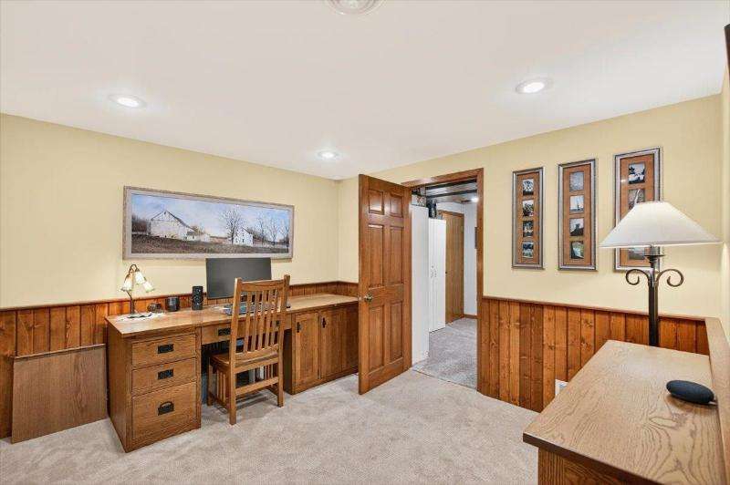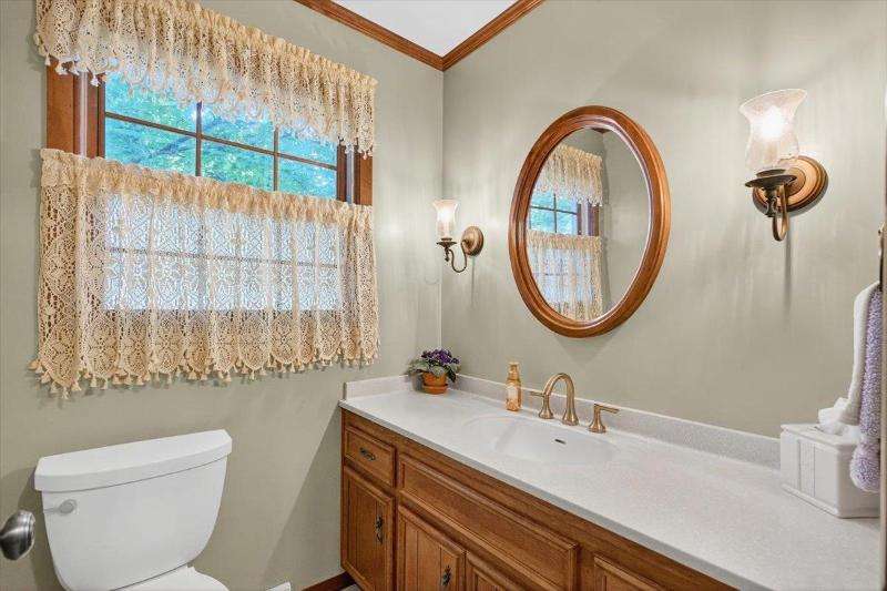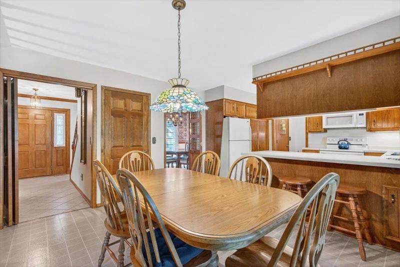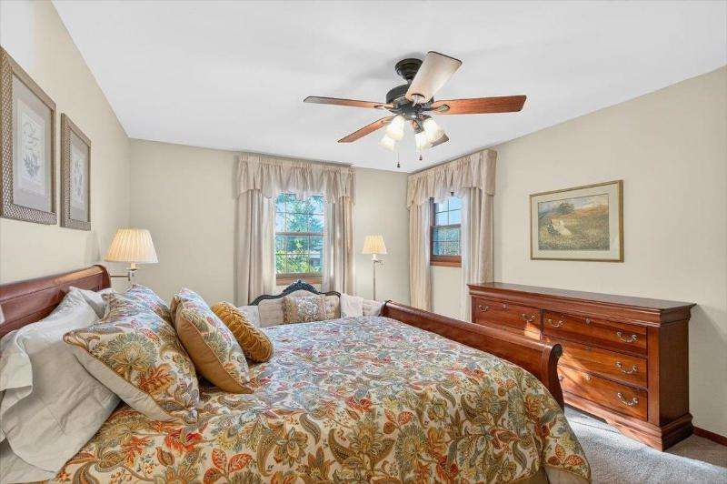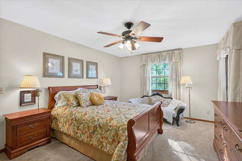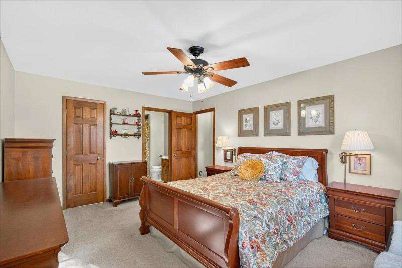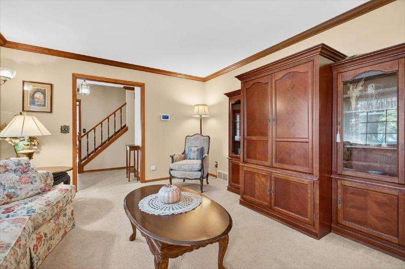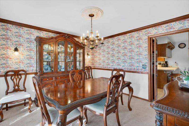 Beautiful colonial home tucked away on a quiet cul-de-sac, set on over half an acre with a stunning backyard featuring a huge deck, a partially fenced yard, and a storage shed--perfect for relaxing, entertaining, and outdoor projects. The main level offers multiple living spaces including a family room, living room, separate dining room, and an eat-in kitchen, along with a bright four-season sunroom. Upstairs, the spacious primary suite includes a large walk-in closet and ensuite bath, plus three additional generously sized bedrooms. The finished basement offers a large rec room, office/hobby room, half bath, and endless storage space. An oversized two-car garage with epoxy floors and additional storage adds convenience and functionality to this spacious, meticulously maintained home.