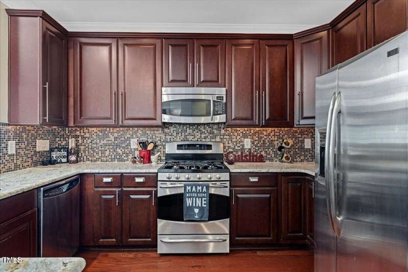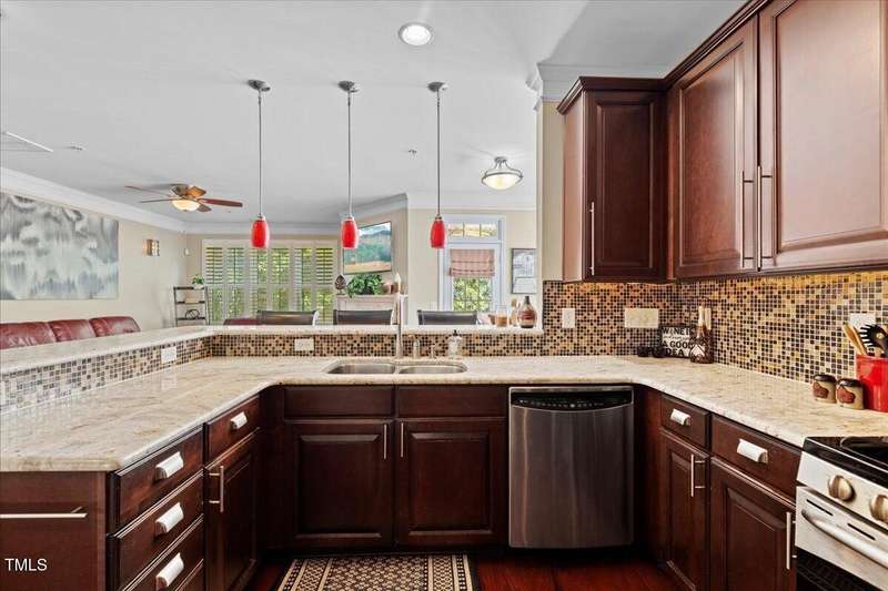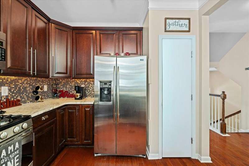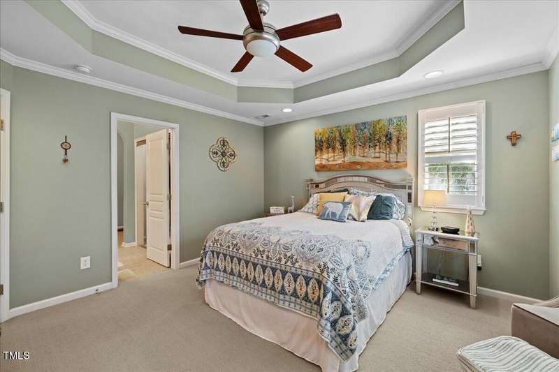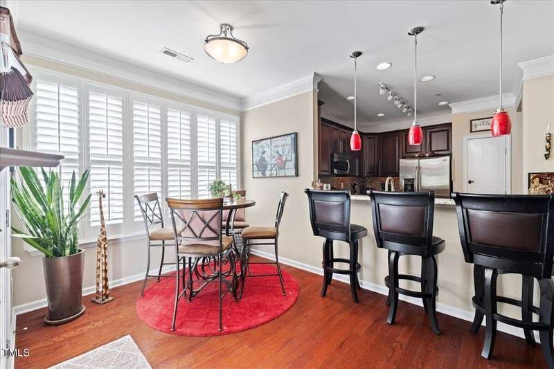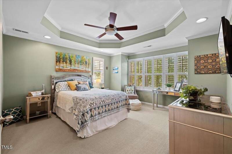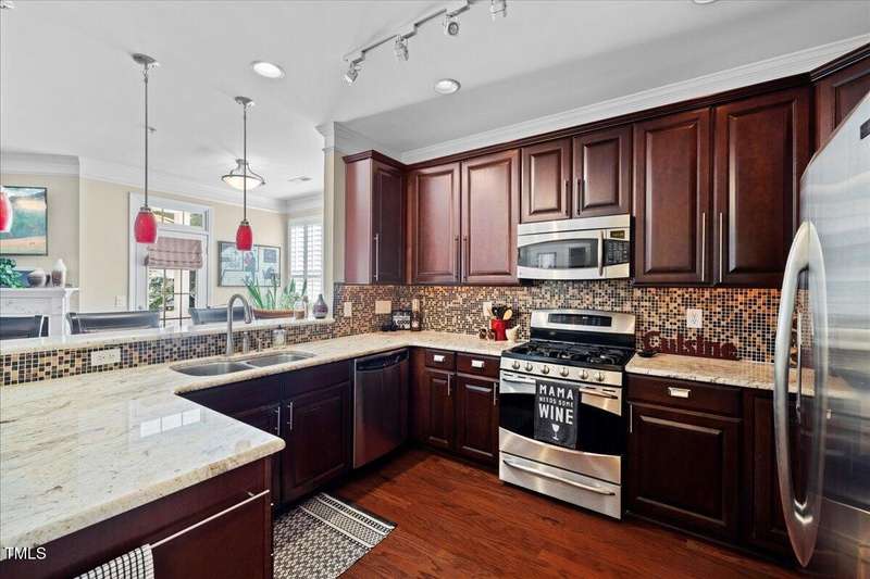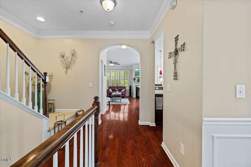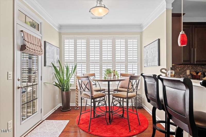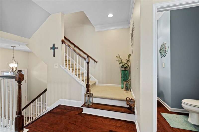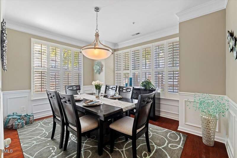 Gorgeous End Unit, 4 bed/3.5ba townhome in fabulous N Ral location close to RTP, Brier Creek, and Umstead Park. Home shows like a model w/all the upgrades you can think of. Gleaming hardwds, plantation shutters thruout, extensive millwork, granite counters, tile backsplash, stainless appliances, custom designed primary closet, whole house HEPA air filtration, water purification system, covered porch and patio. This home has it all and wonderful community amenities, large pool, clubhouse and fitness center. This one you need to see!
