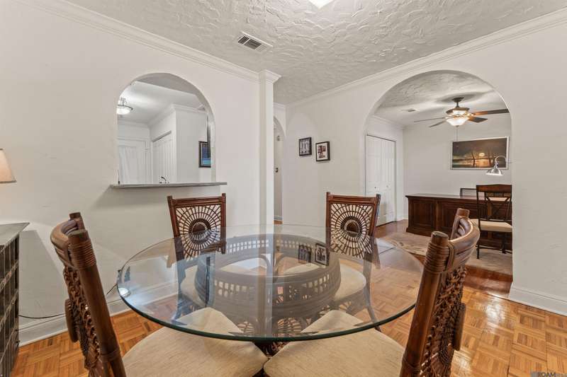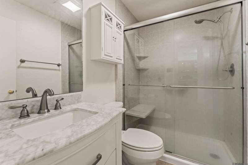 This well-maintained condo features 2 bedrooms each with its own bathroom, and a separate office. Highlights include wood parquet floors, a soaring two-story living room with a brick fireplace, and a bold kitchen with black cabinetry and updated counters. Enjoy a peaceful, fully fenced backyard, deck, and covered gazebo, plus covered parking for two cars and a brand new roof for added peace of mind. Perfectly situated right off of Jefferson Highway, this property is ideal as a personal home or investment opportunity.