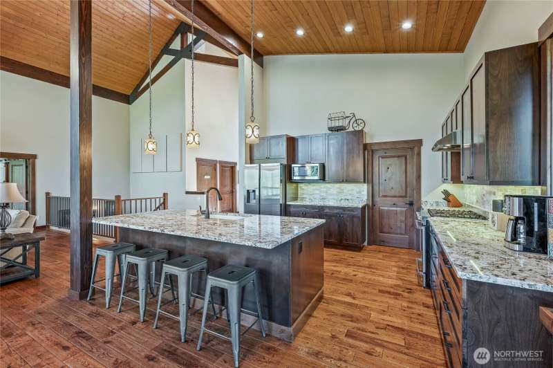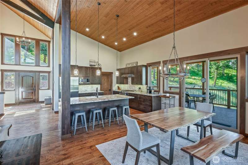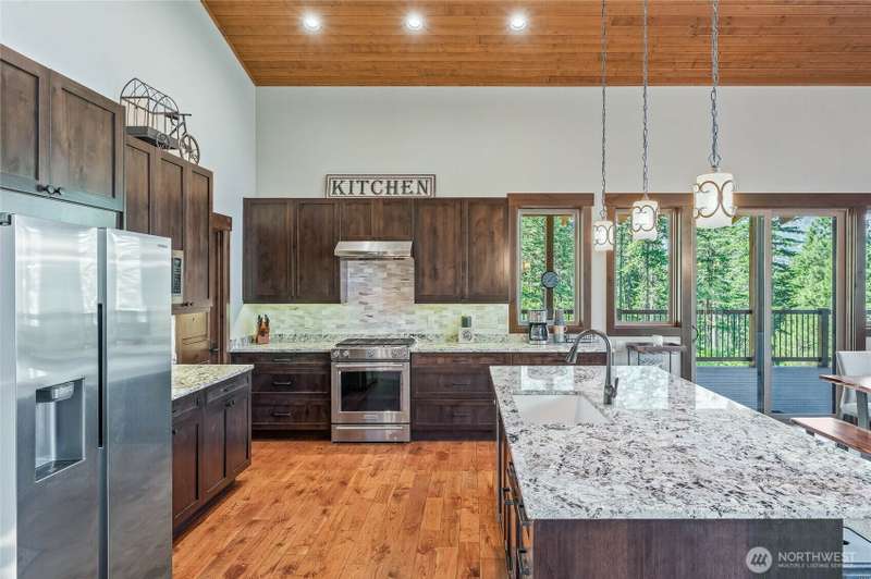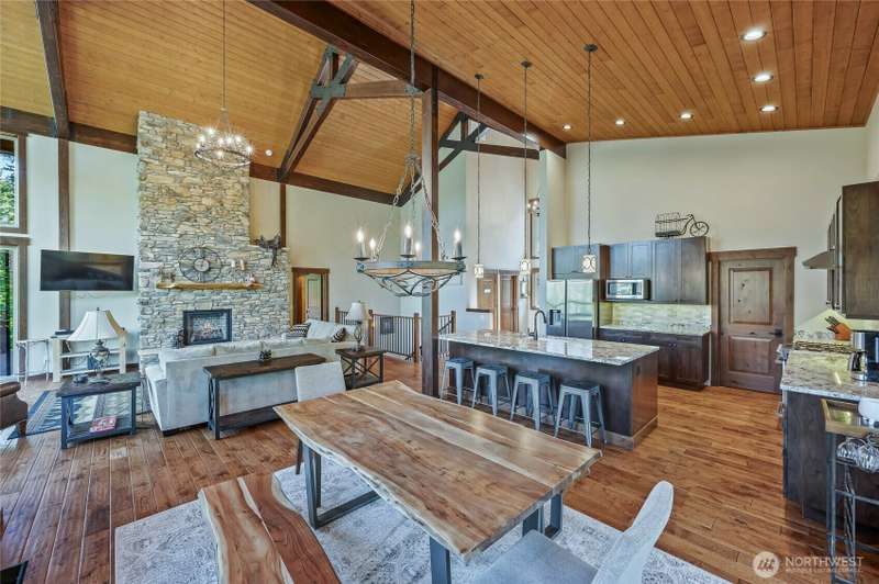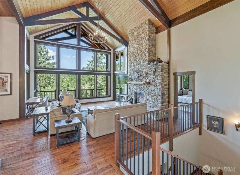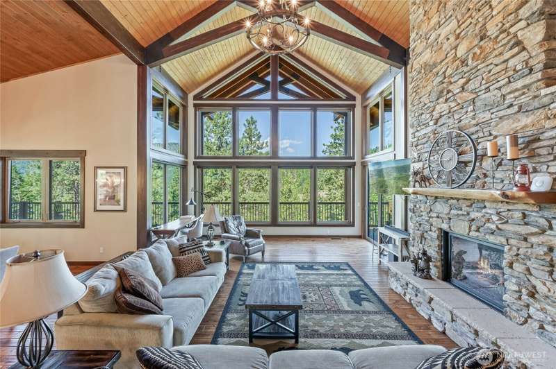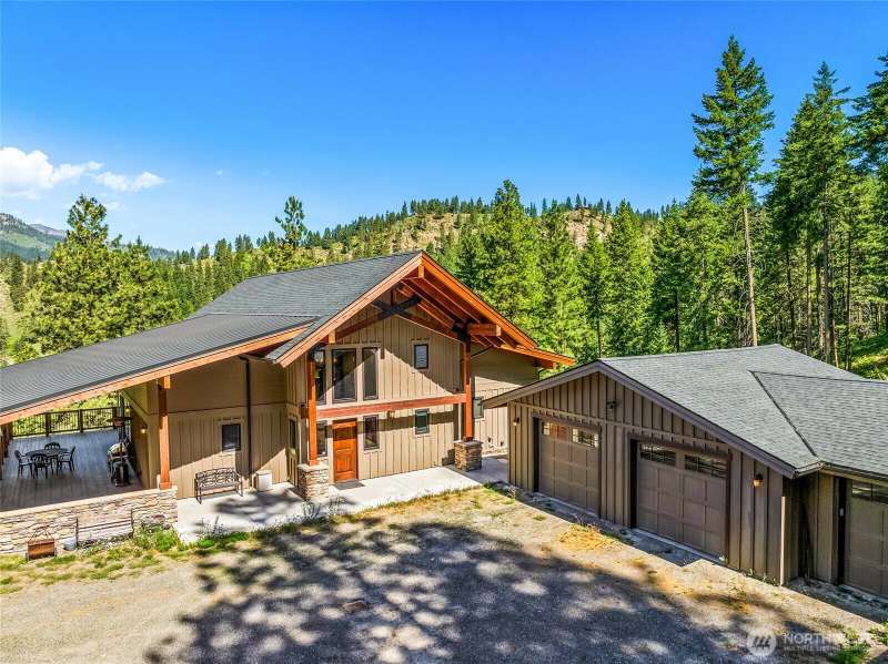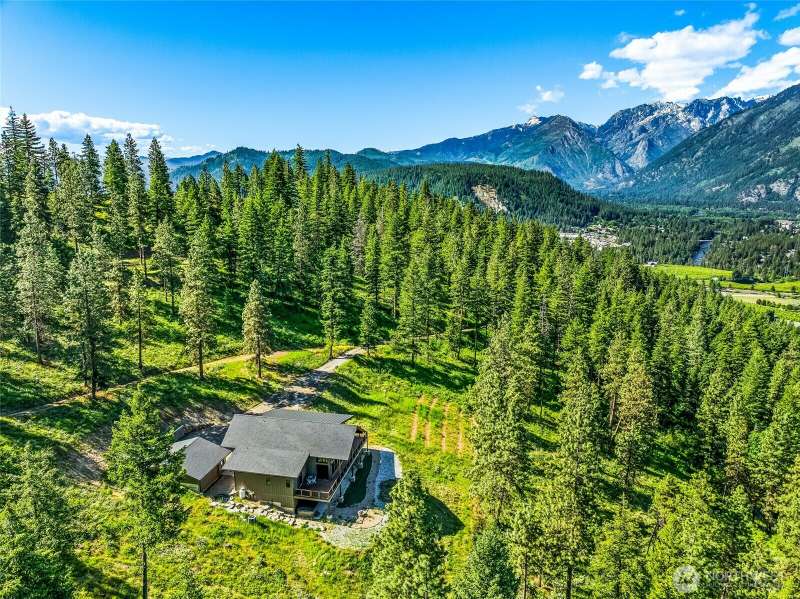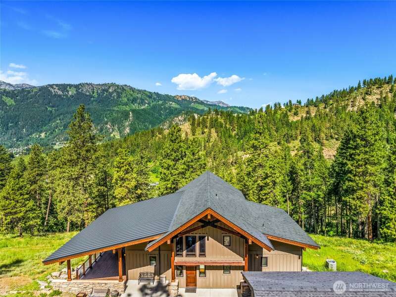 Stunning Mountain Retreat on 10 Private Acres. Experience the perfect blend of rustic charm and modern luxury in this beautifully crafted mountain-style home, nestled in the heart of nature yet only minutes from downtown Leavenworth, WA. This home offers peace, privacy, panoramic views and potential for subdivide. Dramatic 22-foot wall of windows that floods the main living area with natural light and frames breathtaking views of the surrounding forested landscape. The open-concept floor plan features top-tier finishes, including solid oak flooring, plus rich Knotty Alder doors and trim. The main floor master suite is a spa-like sanctuary. A huge three-car garage provides space for all your toys and projects. Turnkey: Furnishings included.