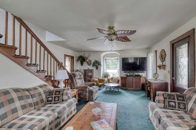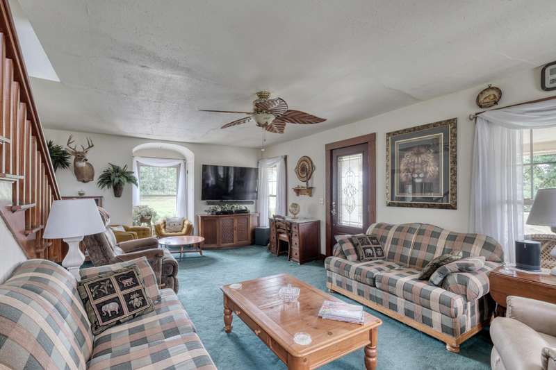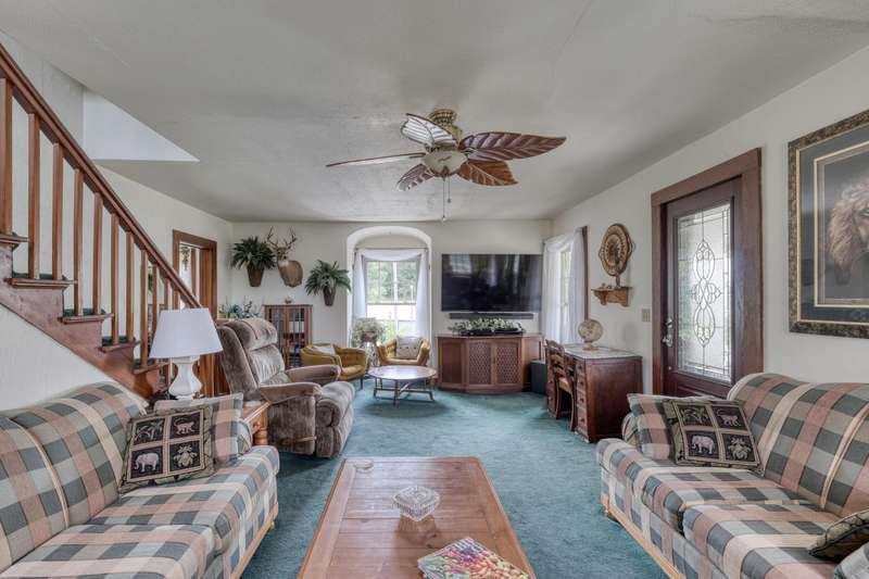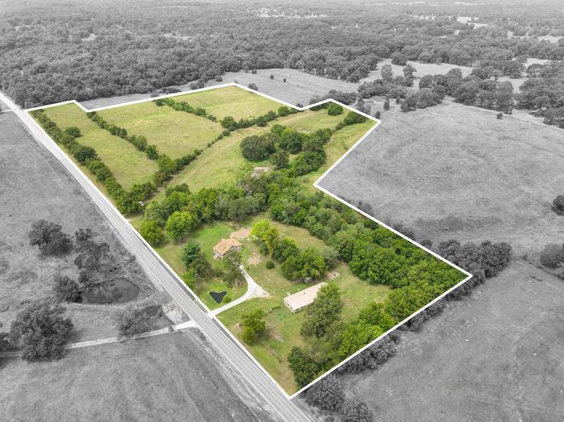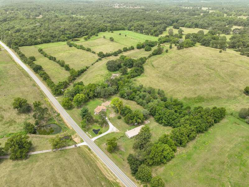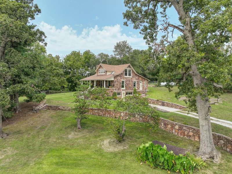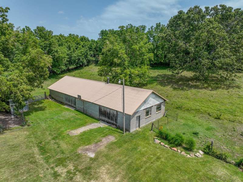 SELF-SUFFICIENT, 21.65 +/- ACRE, CROSS FENCED, HOBBY FARM WITH TWO WORKING WELLS, LIVE SPRING FED POND PLUS MANMADE POND! It's a perfect retreat for a quiet, self-sustained lifestyle! Enjoy life on your own Hobby Farm featuring Charming Rock House with peaceful front porch and great valley views of sunrises & sunsets! This Southwest Missouri Acreage is perfect for cattle, horses or other livestock. The second well is located in the west pasture and handy for watering the animals. The two story home is 1433 sqft on first and second floors; features main floor primary bedroom and two second floor bedrooms. The large living room is the perfect location to visit and relax. Dining room is highlighted by refinished hardwood floors and large picture window. Barn/shop to east of house is 2400sf total (30' x 80') with full electric power access; 900sf features concrete floor, wood heat, and electricity; remainder of barn has dirt floor and open access for livestock.Back inside the lovely stone home: Seller loves that all the windows are large, and home has plenty of natural light. Walk-out basement adds another 1043 sf of space (708.54 sf of bsmt is heated & cooled), perfect for family room, extra guests, or craft/hobby room. Basement Utility room doubles as storm room with concrete ceiling overhead and a 2nd bathroom. This Farmhouse has been lovingly preserved by the current owners and is very livable with updated, double hung & double paned windows, whole house water filtration reverse osmosis system, 6-year-old roofs on house and barn/shop Life out on the land is great too: Seller has seen lots of deer and other wildlife and especially enjoys the established garden, lovely flower beds, and mature trees. The chicken coop is a bonus for fresh eggs, etc. They say, 'having the natural spring water that never runs dry gives them peace of mind.' North and East side of house with barn is fenced for livestock. West side of house has chain link fenced yard. They also love the location, neighbors, and being close to I-49. Property has easy access to jobs, schools, and nearby cities or towns. It's a perfect place that will make your heart leap with joy as you imagine the quiet life you will live here.(Alternate option: House, Barn/Shop, Live Spring, Chicken Coop and 3 acres available see listing #60280542)