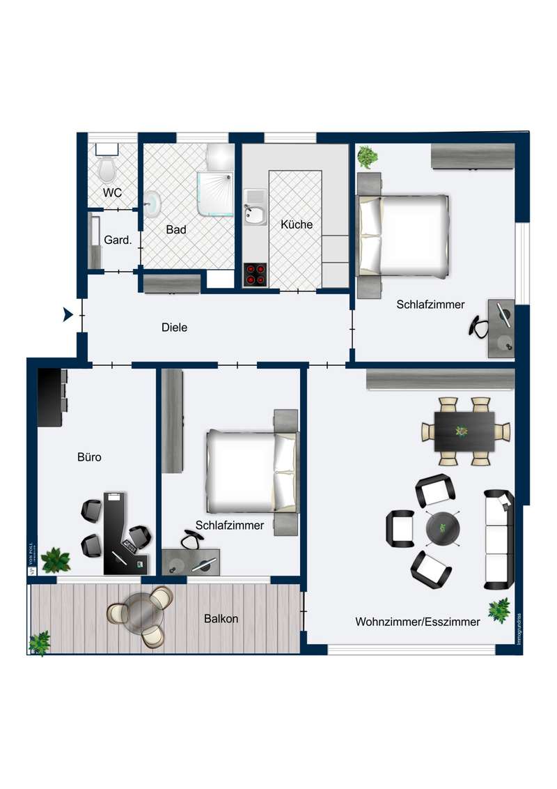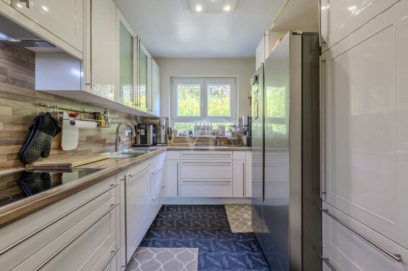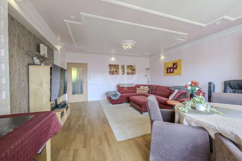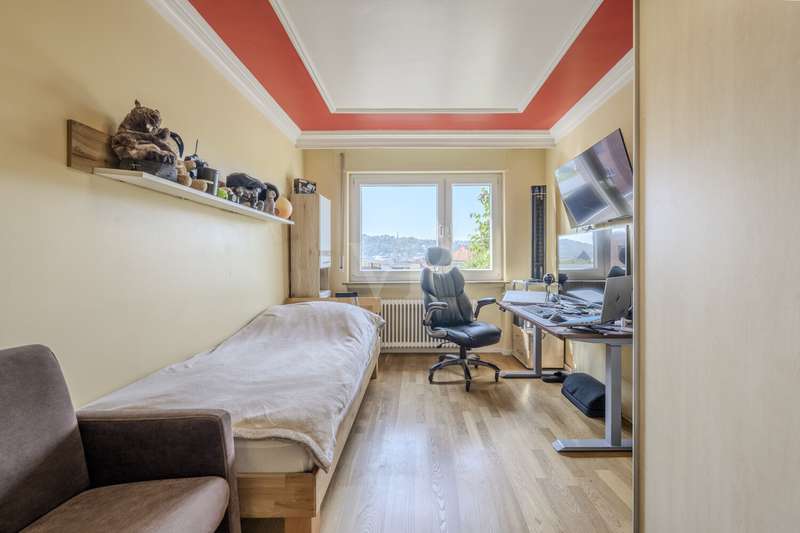 In a central location, just a few minutes from the city centre, the train station and the popular "Dick" and "ES" districts, this modernized 4-room apartment on the 2nd floor was built in 1960. The living space of approx. 107 m² is cleverly distributed over a well thought-out room concept that opens up a wide range of possible uses and provides ample space for both couples and families. As you enter the apartment, you are greeted by a spacious hallway that leads to all the living areas. To the right is the generously proportioned living/dining room with access to the attractive south-facing balcony - ideal for enjoying lunchtime and afternoon hours outdoors. Adjacent is the separate, modern kitchen, which was completely renovated as part of the extensive refurbishment in 2006. High-quality work surfaces, timeless fronts and adequate electrical appliances provide excellent conditions for preparing culinary delights. Three well-designed bedrooms, which can be used individually as bedrooms, children's rooms, guest rooms or studies, round off the space on offer. The bathroom impresses with timeless sanitaryware, a washing machine connection for short distances and - like the separate WC - was modernized in 2006 as part of the comprehensive renovation. New water and electricity pipes, contemporary wall and floor coverings and renewed plastic windows ensure a pleasant living ambience and efficient energy use. In 2014, parquet floors were also partially renewed and the front door replaced. The apartment door itself was replaced in 2019, meaning that the entire property is in a well-kept, largely modernized condition. The sewage pipes in the entire building were last replaced in 2025. The house is heated by a reliable oil-fired central heating system from 1991. For added convenience, there is a private cellar storage room in the basement. A garage parking space is already included in the offer and makes parking on site considerably easier. Various energy modernization measures are planned for the building; corresponding offers are currently being obtained. The current house rent has therefore been increased in order to build up the necessary reserves. The excellent location with short distances to public transport, shopping facilities, doctors' surgeries, schools and kindergartens allows for a comfortable everyday life without long distances. Leisure facilities and local recreational areas are also within easy reach. Whether for couples who want to live centrally or for families with a need for several bedrooms - this residential property impresses with its successful room layout, solid modernization record and proximity to the city centre. See for yourself and arrange a viewing appointment - we will be happy to provide you with further information.