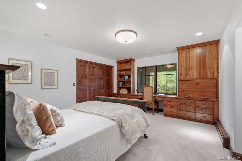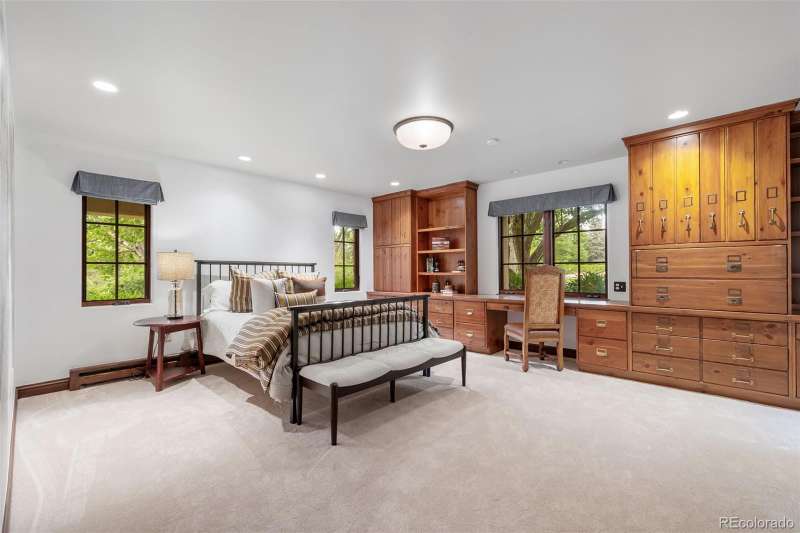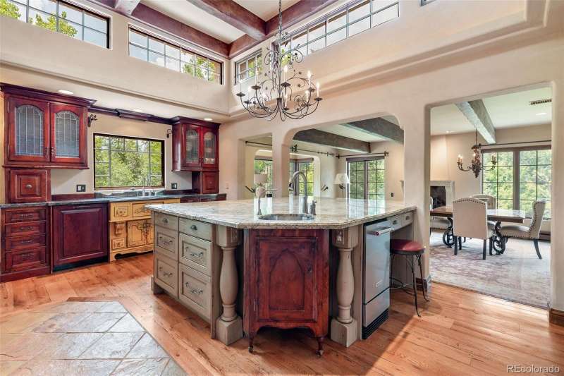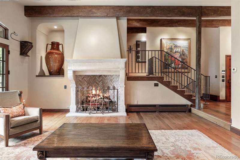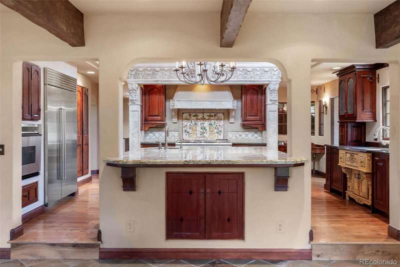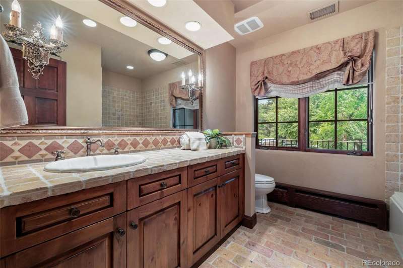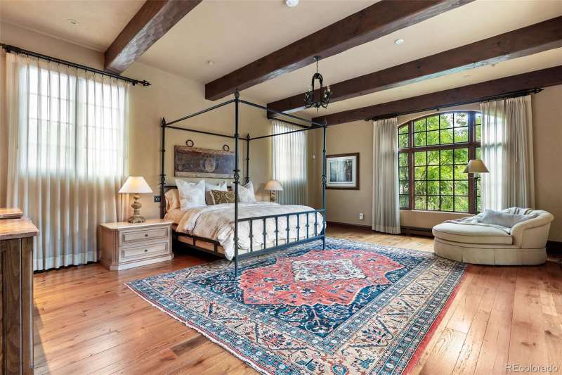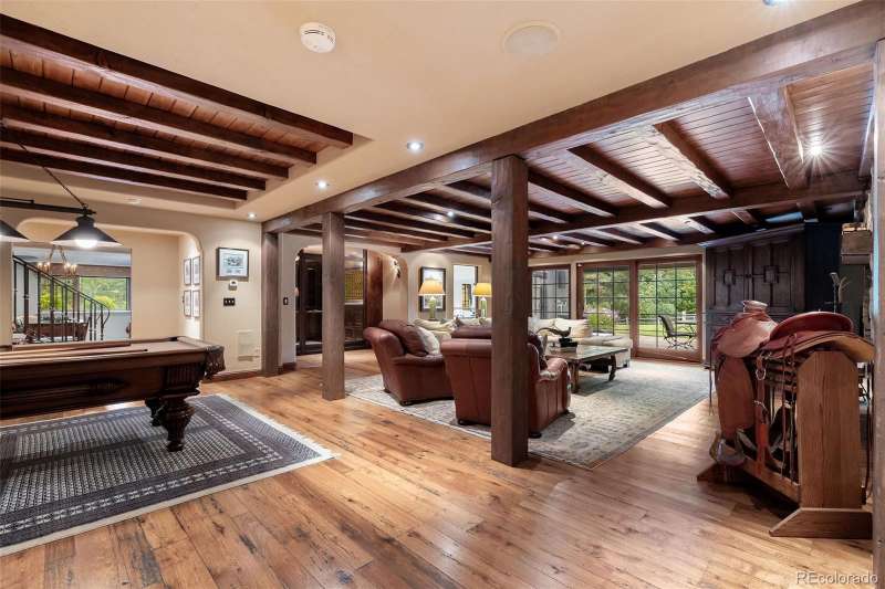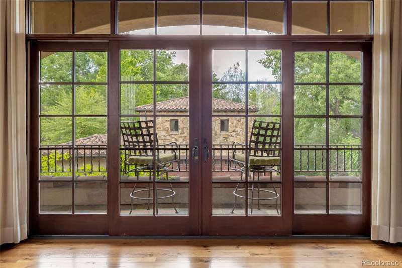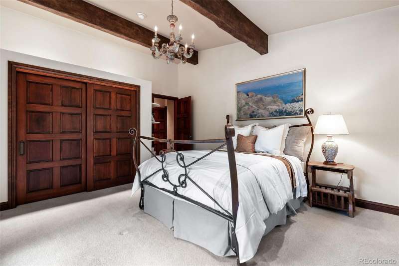 Residing at the end of a private lane and backing to Little Dry Creek, this magnificent property spans nearly 2 acres. Gated circular drive & porte-cochre invite you to this European style residence, incorporating uncompromising architecture, outstanding craftsmanship, customized details + stunning natural surroundings. Remarkable park-like grounds are comprised of multiple patios including an incredible space featuring outdoor fireplace & expansive vine-covered arbor, perfect for al fresco dining. Garages accommodating 4 cars feature epoxy floor coating + snow melt at the car court, courtyard & north walkway. Amazing flex space in the 650sf garage attic + a Martha Stewart potting shed. Enjoy gathering with friends at the bocce ball court, and watching sunsets over the exquisite pond, the epitome of outdoor activity & relaxation. Dramatic entry brings you into the thoughtfully designed dining & living rooms overlooking the impressive backyard with doors leading to the balcony. Well-equipped kitchen features attractive hand-painted tile, an original Scott Yablonski, signed by the artist; and accented by a colorful butlers serving area. Sumptuous primary boasts illuminating sunlight with patio, 6pc bath & walk-in closets + adjacent guest en suite. Vast lower level includes 2 en suites, family/game room, wine room, study, gym, laundry + storage. Richly accented with reclaimed hardwood floor, plastered walls, artistic wrought iron, custom carved European stone fireplaces & exquisite lighting fixtures. Handsome stone staircase leads you to a private suite with 4pc bath, coffee bar & patio elevated above the courtyard. A landmark property - a perfect private sanctuary or wonderful place to entertain on a small or grand scale. High ceilings + expansive doors & windows invite lively interplays of light & color. One of the most revered locations in Old Cherry Hills, this exceptional property offers an unmatched combination of privacy & proximity to so many amenities.