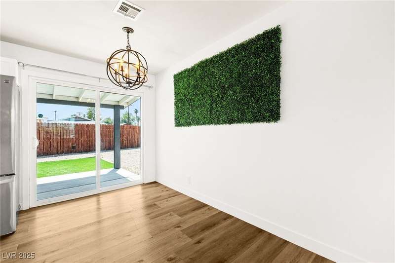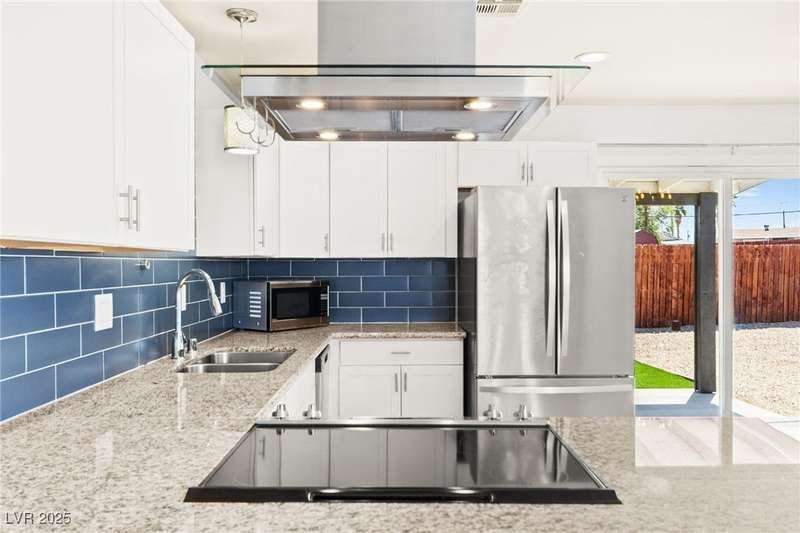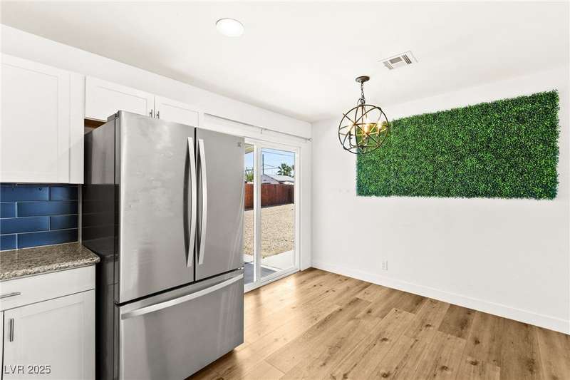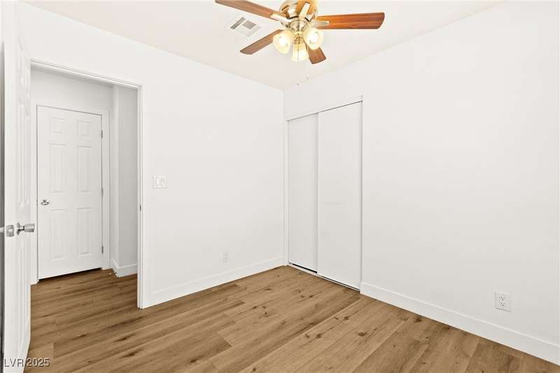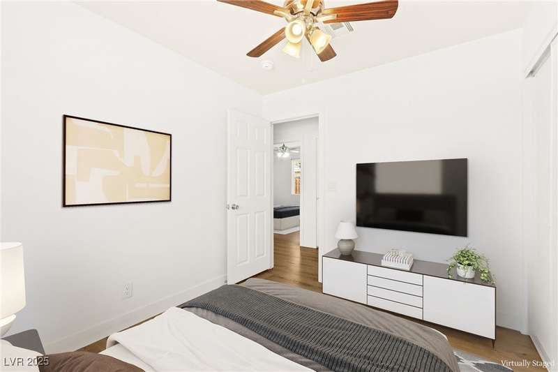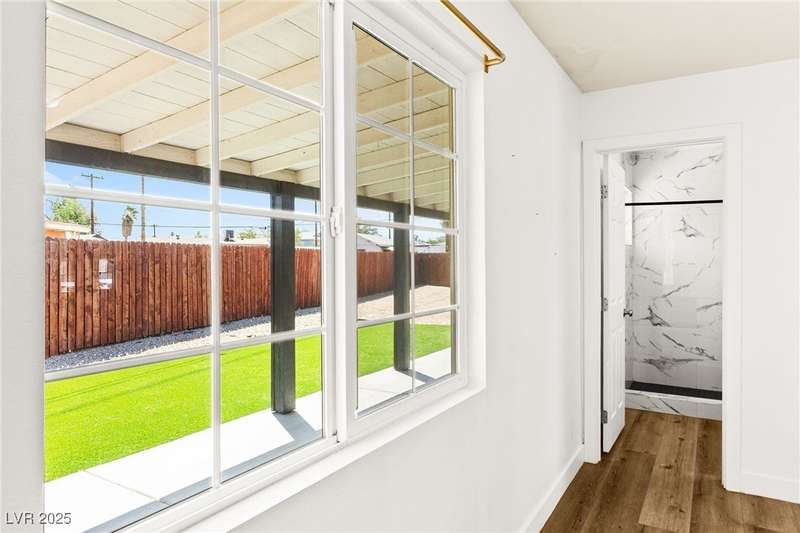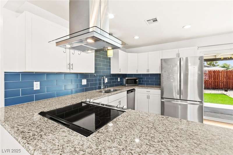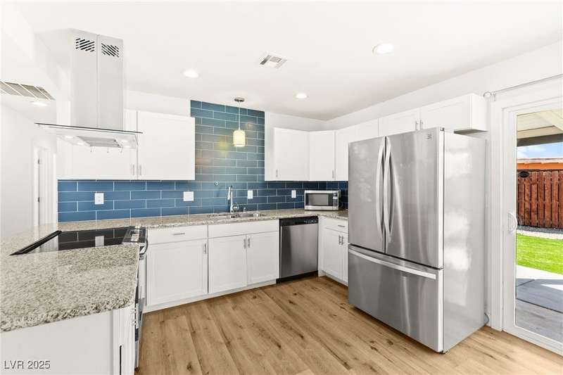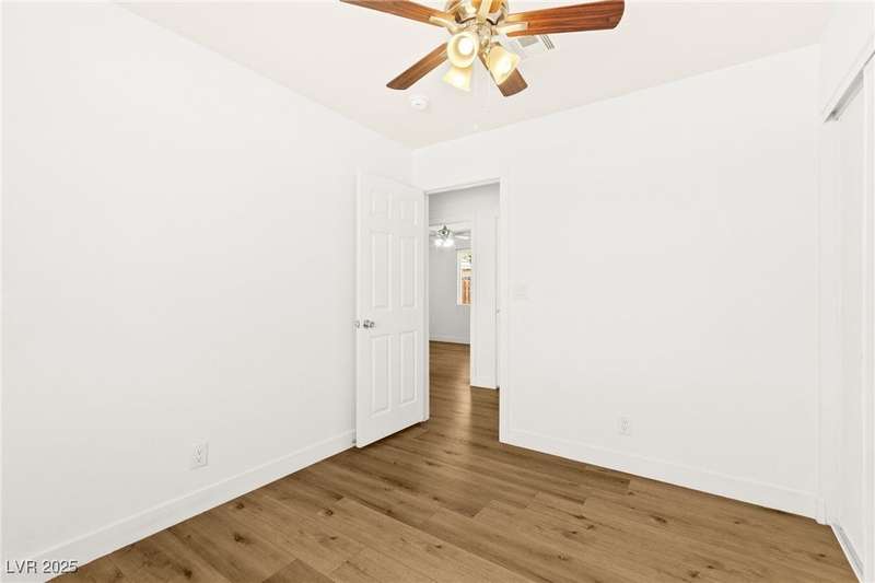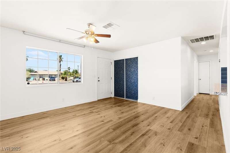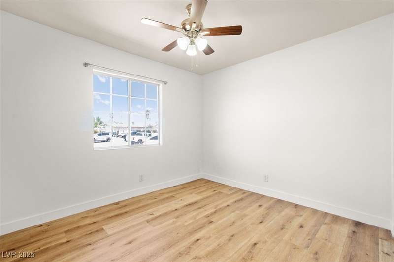 Tucked away on a peaceful cul-de-sac, this fully renovated home with a 3% VA assumable loan sits on a spacious pie-shaped lot offering ample parking and convenient RV gate access to the backyard. The outdoor space is perfect for entertaining, with a covered patio and plenty of room for a pool. Inside, the open-concept kitchen, dining, and living area flows effortlessly, highlighted by luxury vinyl plank flooring and modern finishes. The kitchen features granite counters, stainless steel appliances, white cabinetry, and a stylish backsplash. Three well-appointed bedrooms and upgraded bathrooms provide comfort, while ceiling fans throughout add convenience and style. The renovation also included a new roof, AC, electrical, and plumbing. Ideally located within walking distance to shopping and with easy freeway access for a short commute to Downtown and Summerlin, this turnkey home offers both comfort and convenience.