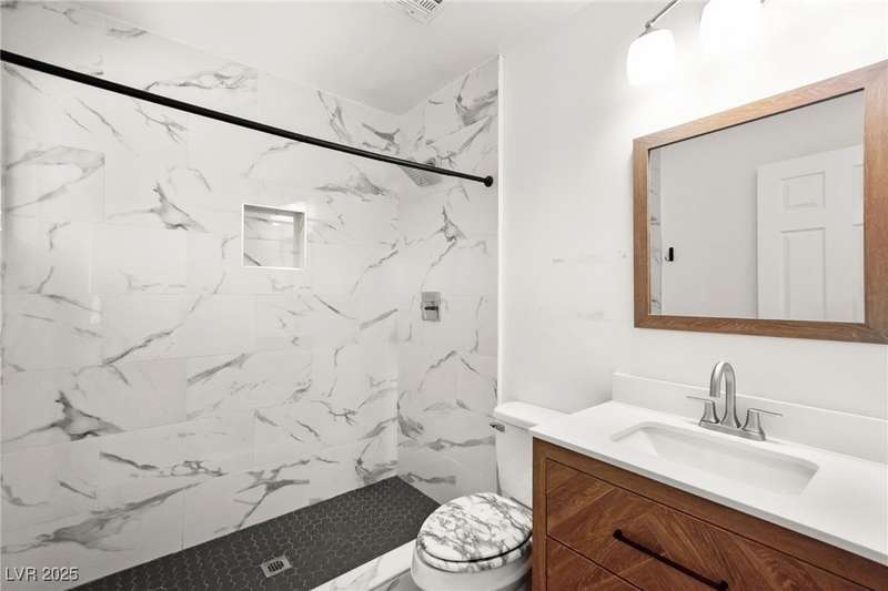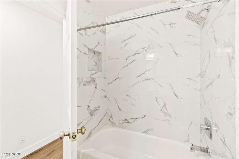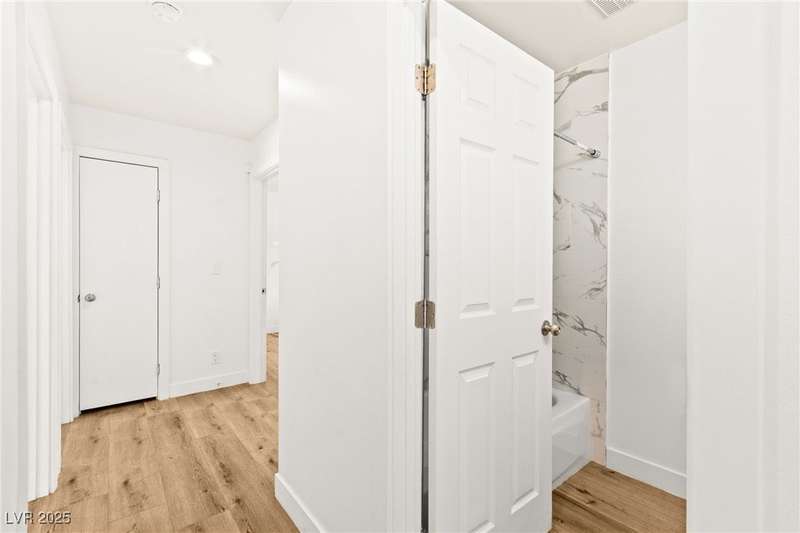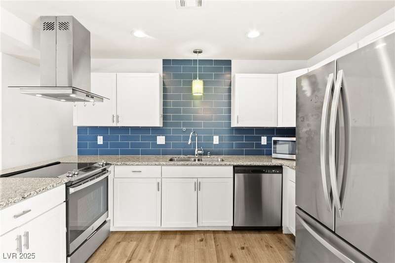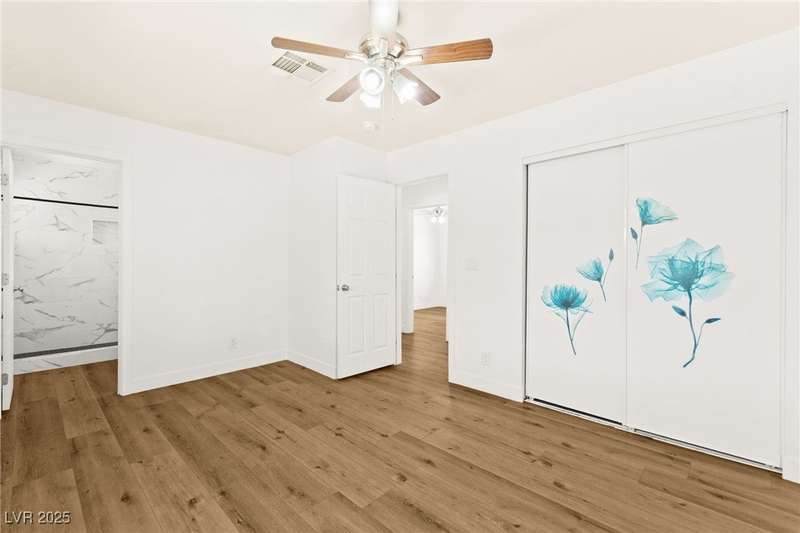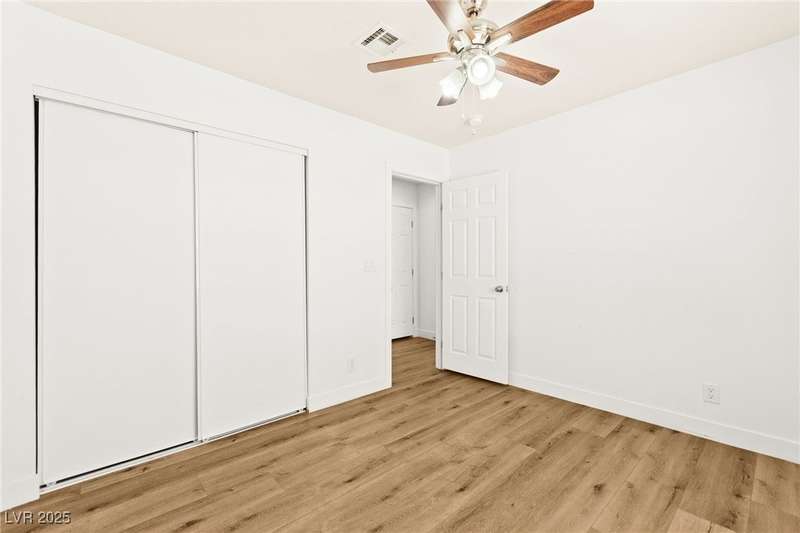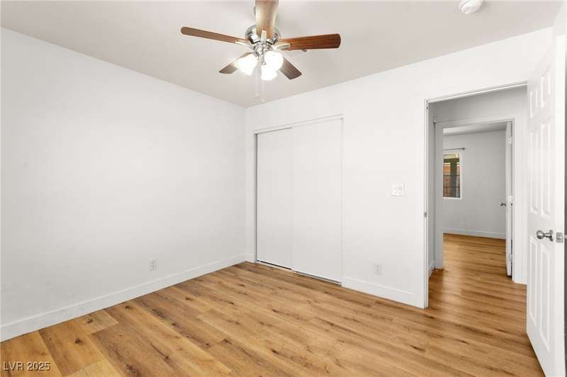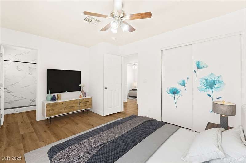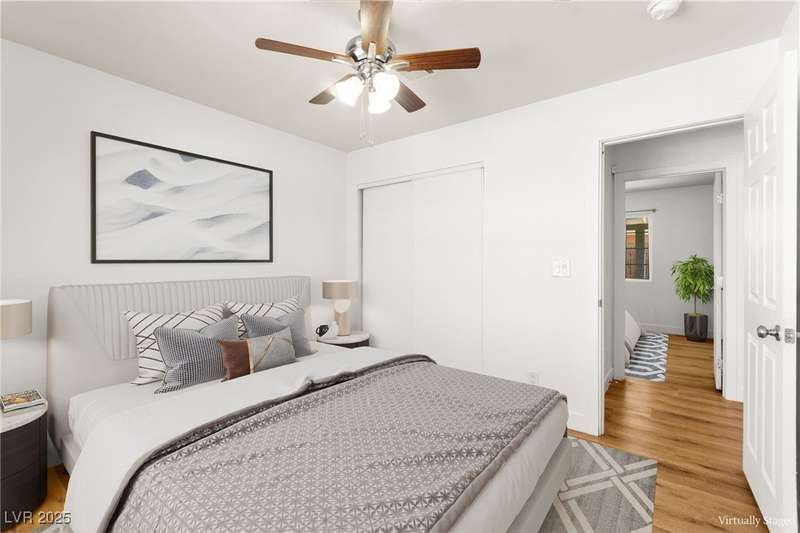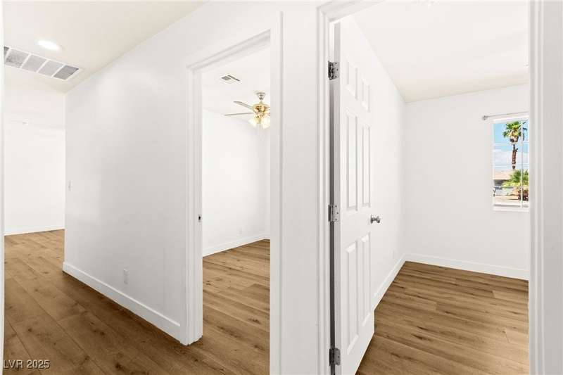 Tucked away on a peaceful cul-de-sac, this fully renovated home with a 3% VA assumable loan sits on a spacious pie-shaped lot offering ample parking and convenient RV gate access to the backyard. The outdoor space is perfect for entertaining, with a covered patio and plenty of room for a pool. Inside, the open-concept kitchen, dining, and living area flows effortlessly, highlighted by luxury vinyl plank flooring and modern finishes. The kitchen features granite counters, stainless steel appliances, white cabinetry, and a stylish backsplash. Three well-appointed bedrooms and upgraded bathrooms provide comfort, while ceiling fans throughout add convenience and style. The renovation also included a new roof, AC, electrical, and plumbing. Ideally located within walking distance to shopping and with easy freeway access for a short commute to Downtown and Summerlin, this turnkey home offers both comfort and convenience.