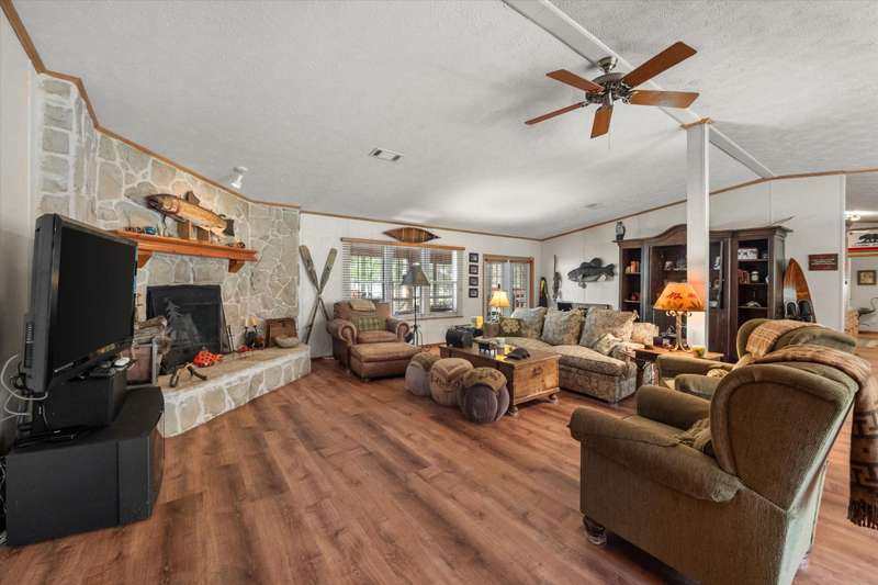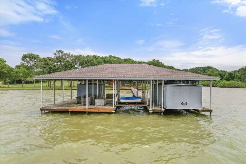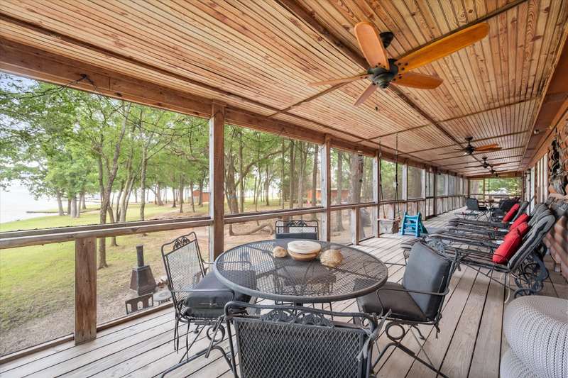 Escape to your lakeside retreat where beautiful pines trees line the entrance and drive. Located in a gated community this property features a large cleared area with incredible open water lake views that would be the perfect spot to build your dream lake home. Not quite ready to build? This property features a charming 4-bedroom, 3-bath home that offers 2,432 square feet of comfortable living space, perfect for family and friends. Reminiscent of summer camp dreams, the property features an 75-foot long screened-in porch, ideal for relaxing and taking in the lake views. With over 11 acres to roam, you will surely find your perfect place. This property would make a wonderful family compound or maybe a corporate retreat. Family fun and activities are right at your door step. The half-size basket ball court is the perfect size to play your new favorite sport...pickleball! There is also a large cleared area that was previously used for a soccer field. We haven't forgotten about the main attraction... over 750' of open waterfrontage with a steel retaining wall already in place. The oversized boat dock with touchless boat covers makes water adventures a breeze. You have room for 2 boats, personal watercraft and a large deck to enjoy majestic sunsets over Richland Chambers Lake. Plus, with two auxiliary buildings, there's plenty of space for storing all your water toys or a workshop for the hobby enthusiasts. Dont miss out on this unique opportunity to own a piece of paradise!