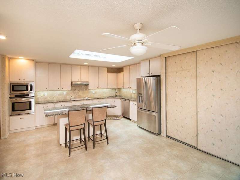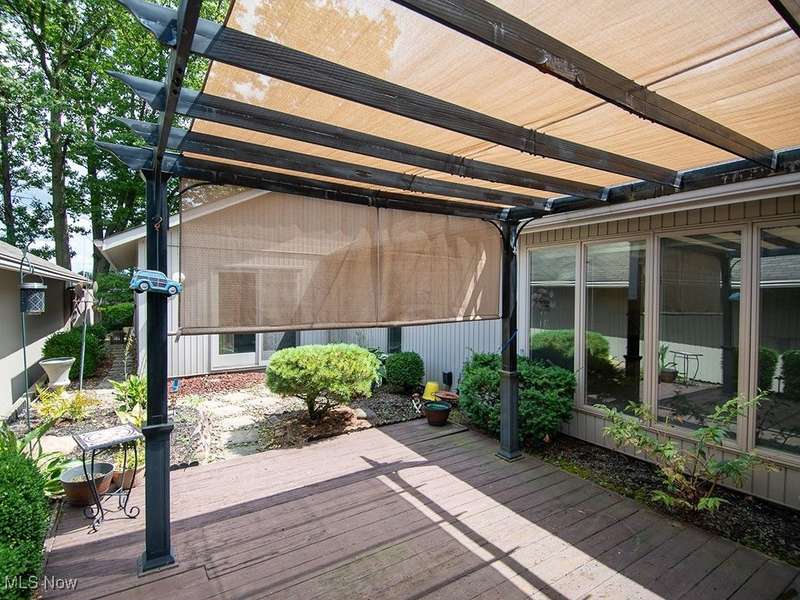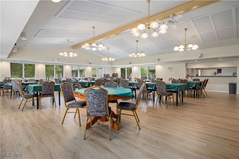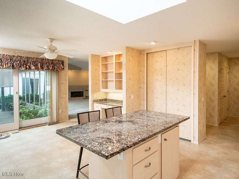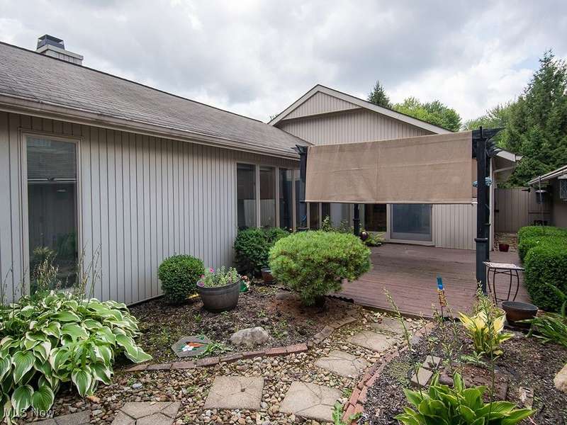 Welcome to the desirable Olympia community! This two-bedroom 2 ? bath ranch home with a den is looking for a new owner. As you enter the home, you are greeted with a large foyer with a guest coat closet. The dining room is open to the living room, which features a wood-burning fireplace that an electric insert has been installed and large windows that let in natural light. The large kitchen features a skylight, convenient sliiding doors to the private courtyard and an abundance of storage. The primary suite features ample storage space, including a linen closet, storage shelves, and a walk-in closet. The bathroom boasts double sinks and a shower. Rounding out the suite with sliding doors to the back patio with a Sunsetter retractable awning. The second bedroom has a large closet with built in drawers and a sliding door that leads to the courtyard. The den is in the front of the home with high windows allowing natural light in. It is currently being used as a TV room and office. Would make a great hobby room or convert to a bedroom as it has a door. Olympia is an "over age 55" adult community near the center of Strongsville, Ohio. Olympia is only minutes away from shopping, fine dining, award-winning golf courses, and the Cleveland Metroparks. A 15,000 square foot clubhouse is the focal point of the development. Clubhouse amenities include a heated indoor pool and sauna, a well-equipped fitness center, locker rooms, a library, a multi-purpose room, a kitchen, a dining room, and a card/game room. Outdoor amenities include a tree-lined, asphalt-paved walking path and a bocce ball court.