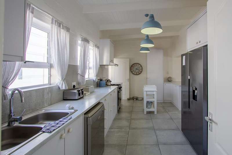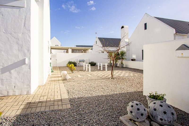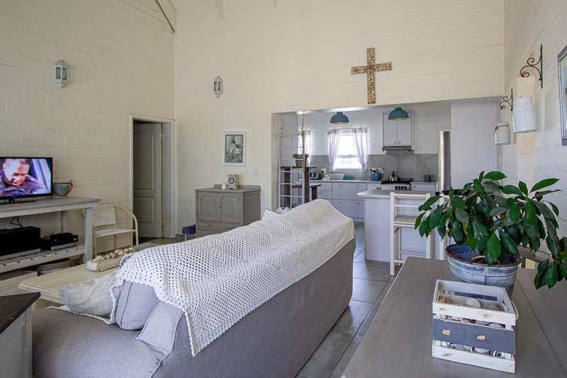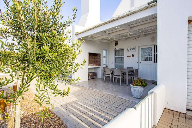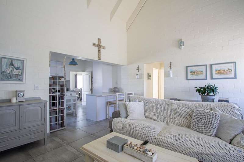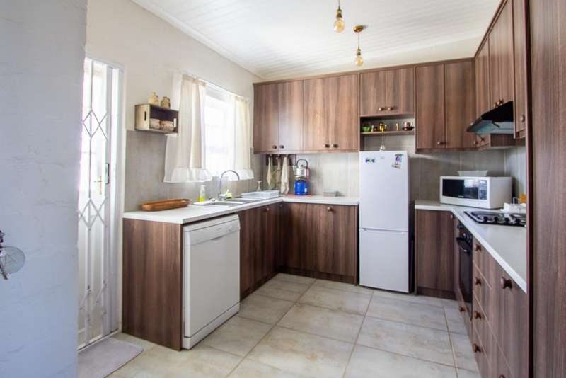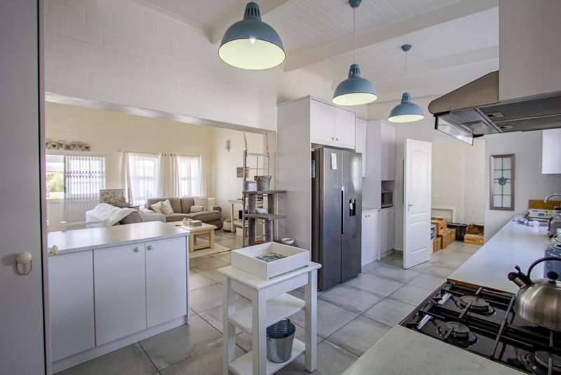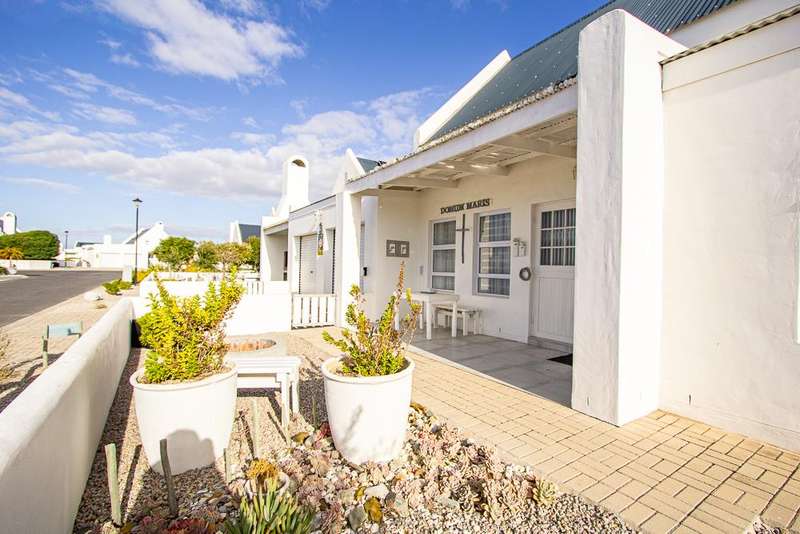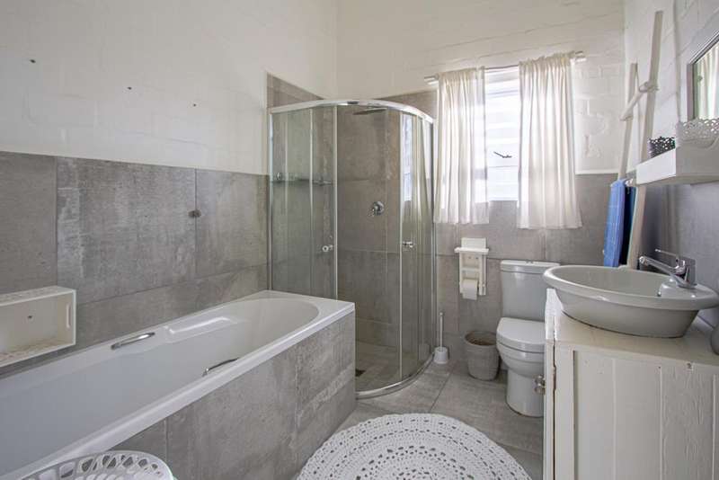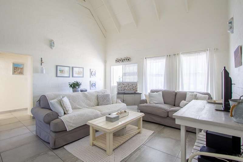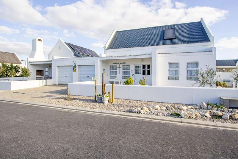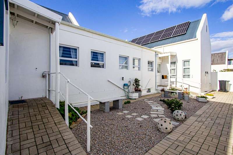 This Property has a lot to offer, and only 3 Rows from the beach in Dwarskersbos. 2X Two-bedroom units, each with living area, open plan kitchen, 2 bathrooms and own parking. The double garage has access to both units, each with own geyser and laundry fittings. The first house has a small stoep at the front door. When you enter, you will find the open plan living area with high trusses. The kitchen has a gas stove, space for a double door fridge, and a separate laundry. It is also connected to the braai room at the back, which open on a private patio. The main bedroom has an ensuite shower bathroom, build in cupboards. The second bathroom has a shower and bath. There is a linen cupboard in the passage plus a double guest bedroom. The second house is connected via the garage, but it will also be possible to make it all one house if you use the connection (currently sealed off, between the laundry and 2nd kitchen) The open plan living area also opens up to a lovely covered stoep with braai. The kitchen is well equipped and there is direct access to the garage. The guest room can easily fit two single beds. There is a full bathroom with bath and shower. The main bedroom has its own half a bathroom, build in cupboards and is facing north. Both houses are fully tiled. Ceiling fans for the summer. Each unit has its own geyser. There is an alarm system, Trellidor security gates and burglar bars to enhance safety. An inverter and solar panels help to ease load-shedding and saves electricity usage. The property is fully walled, and there is still a lot of space around the house for parking or to extend. Having a holiday home and getting a regular income from the 2nd house, or buying together as friends or family and share the costs, whet ever you dream of - this house might just be the answer. Give me a call or WhatsApp for more information, or an appointment to view.